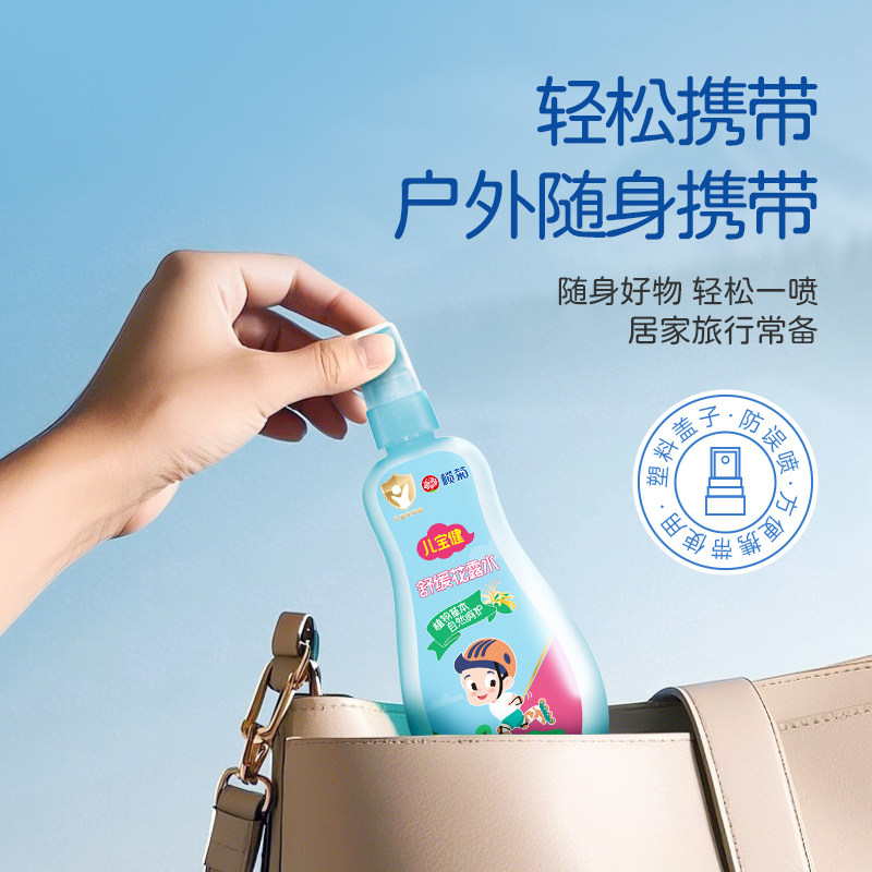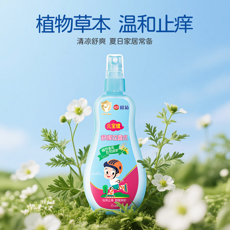 榄菊儿宝健舒缓止痒花露水,植物草本配方,温和不刺激,清凉舒爽,有效缓解宝宝蚊虫叮咬瘙痒,室内外均可使用