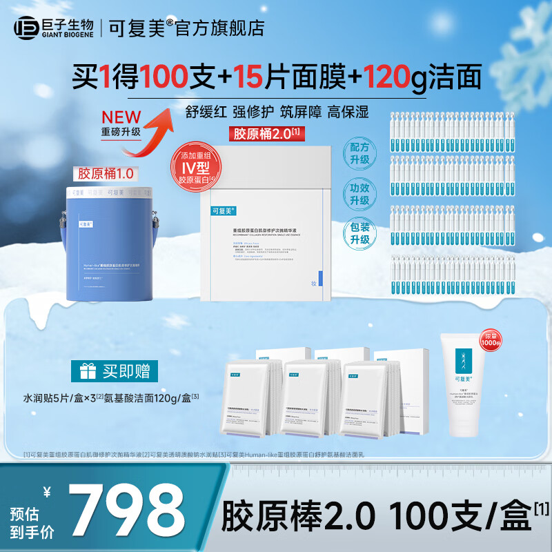 可复美胶原桶重组胶原蛋白肌御修护次抛精华2.0版胶原棒高保湿100支 胶原桶【100支/桶】2.0版