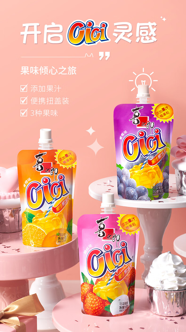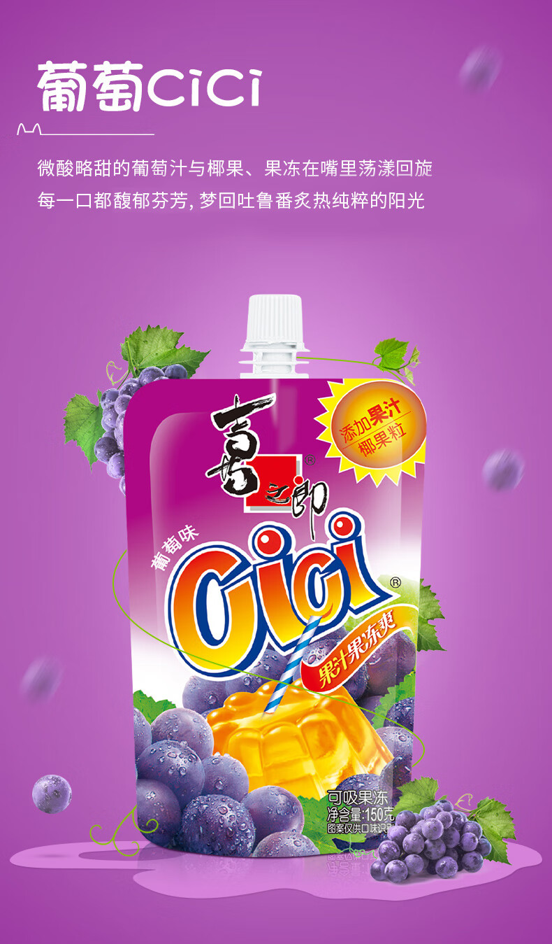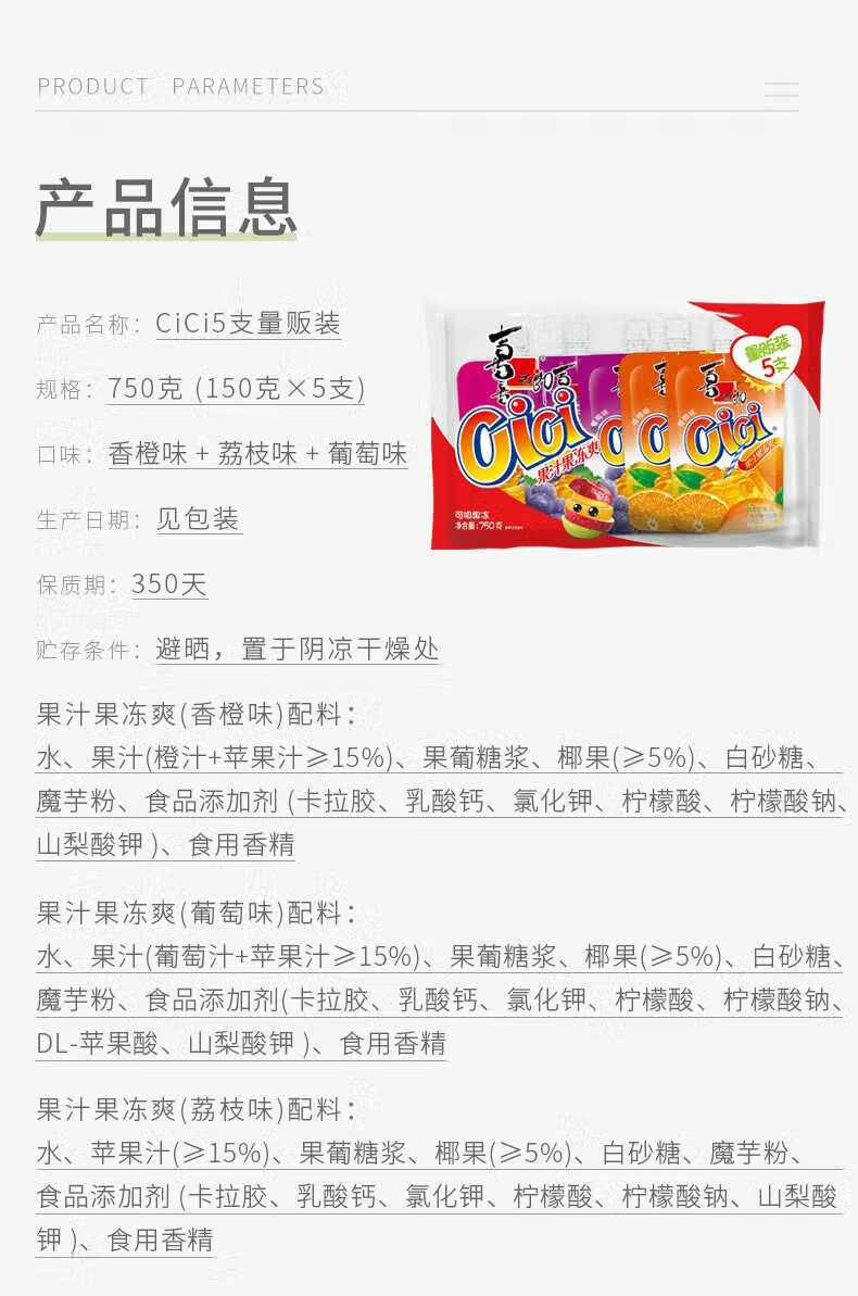 喜之郎cici果汁果冻爽150g5支1.5斤吸的可吸果冻儿童休闲年货解馋小零食