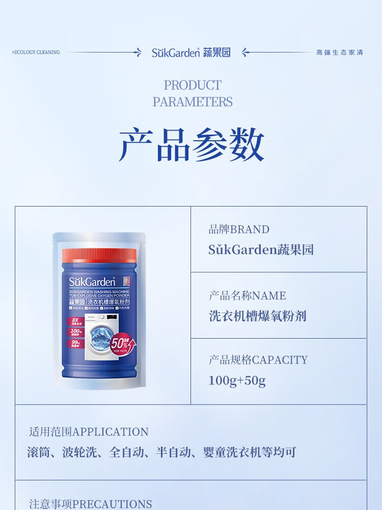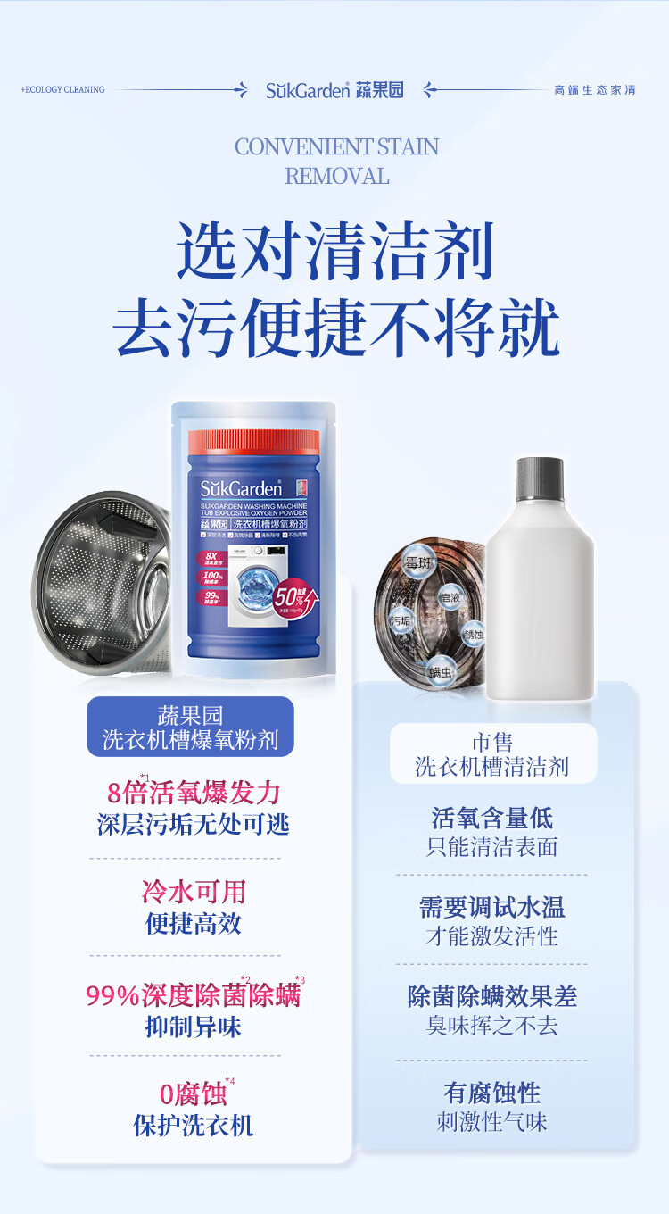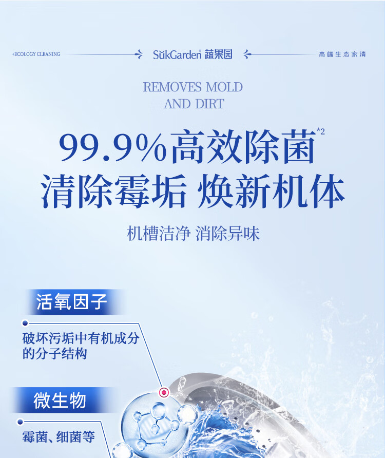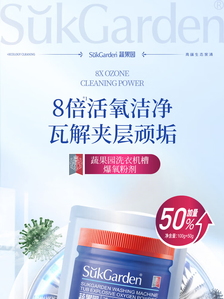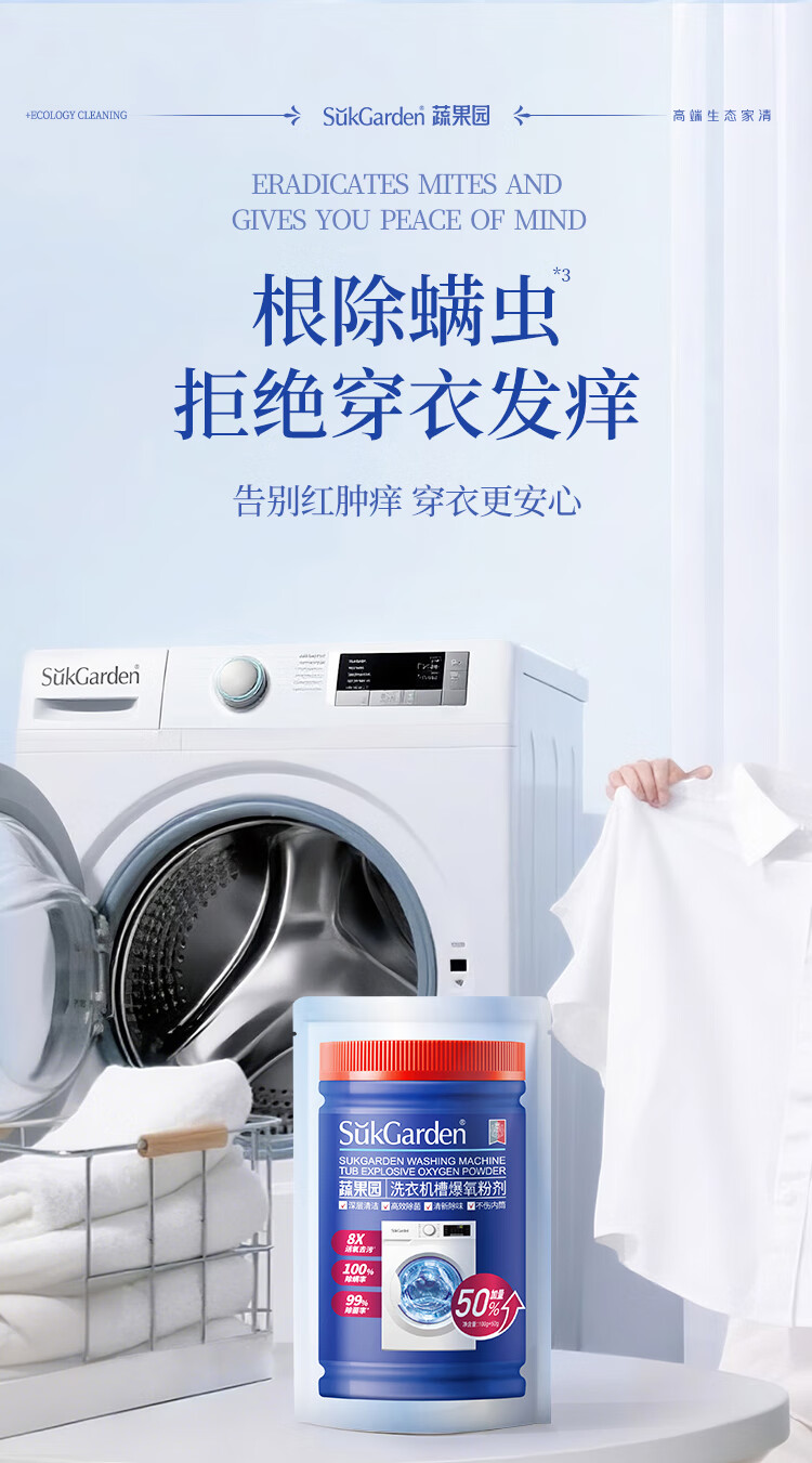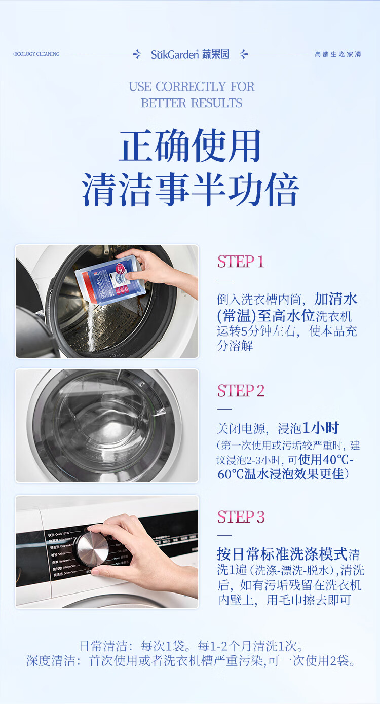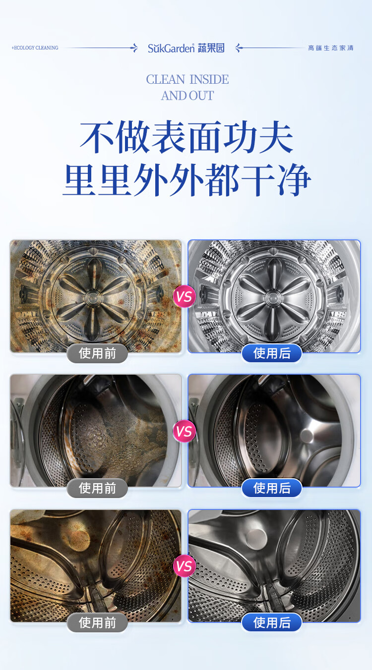 蔬果园洗衣机爆氧粉 洗衣机槽清洁剂除垢杀菌波轮滚筒洗衣机深度清洁剂 【免拆洗】洗衣机槽清洗剂150g*3