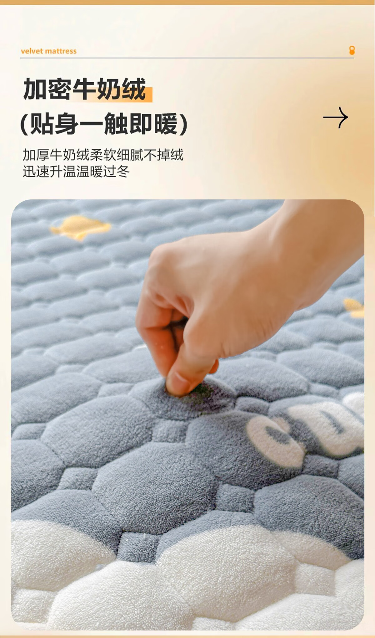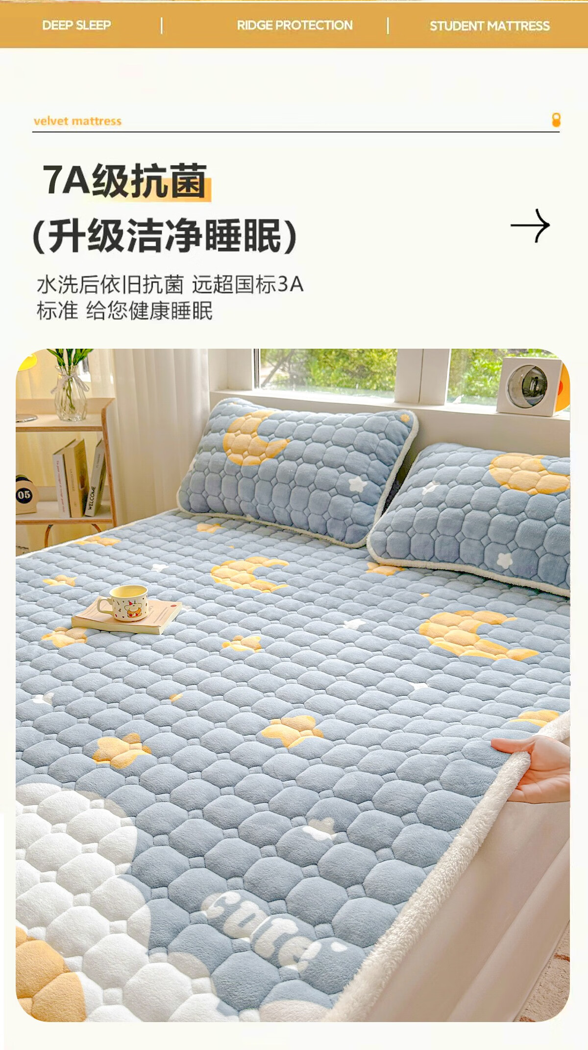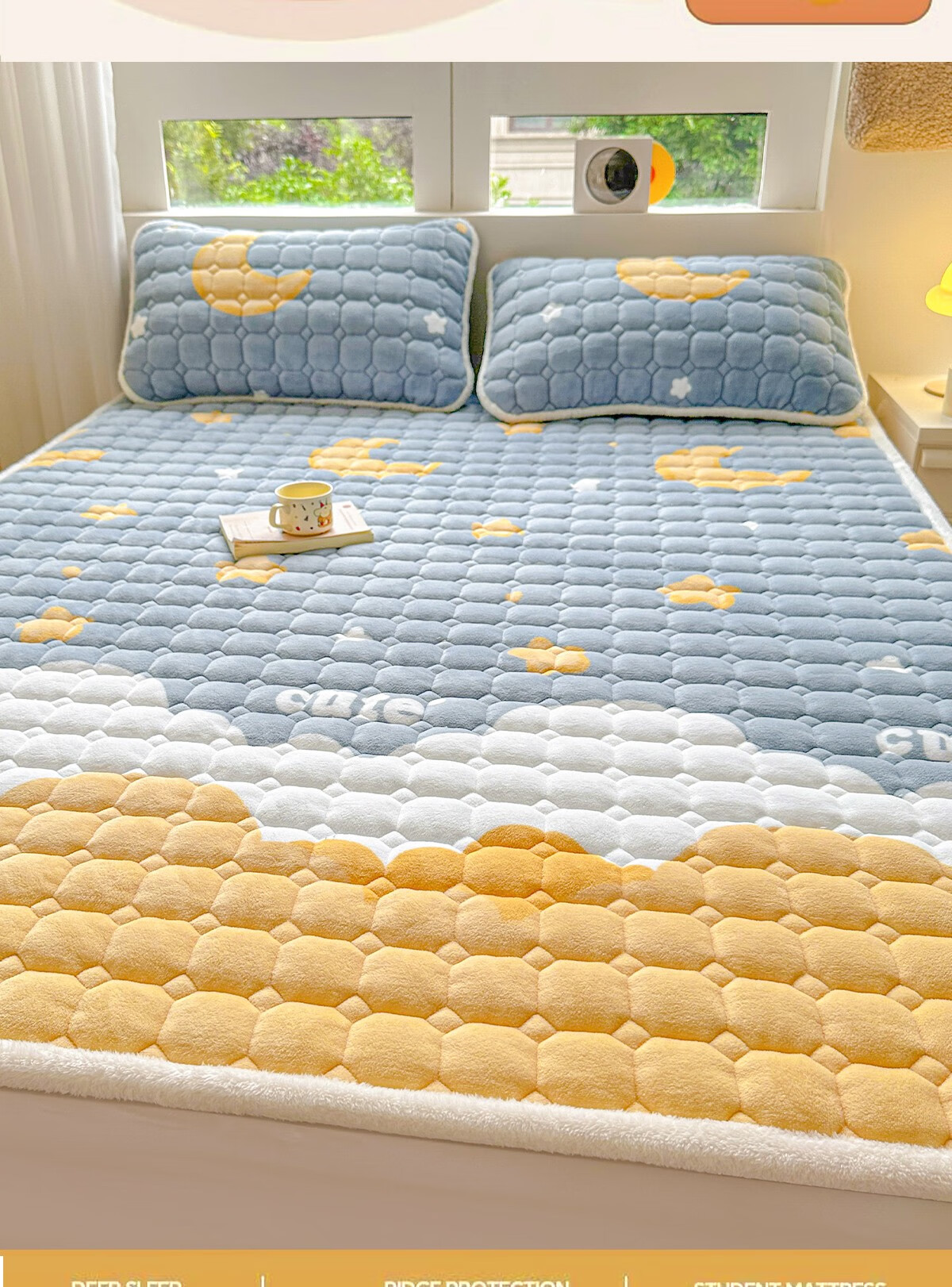 红蜻蜓(RED DRAGONFLY)冬季加绒床垫1.8米x2米加厚床褥垫家用单双人保暖铺底被褥软垫子 牛奶绒床褥-筑梦星空【加厚款】 180x200cm【单床褥】