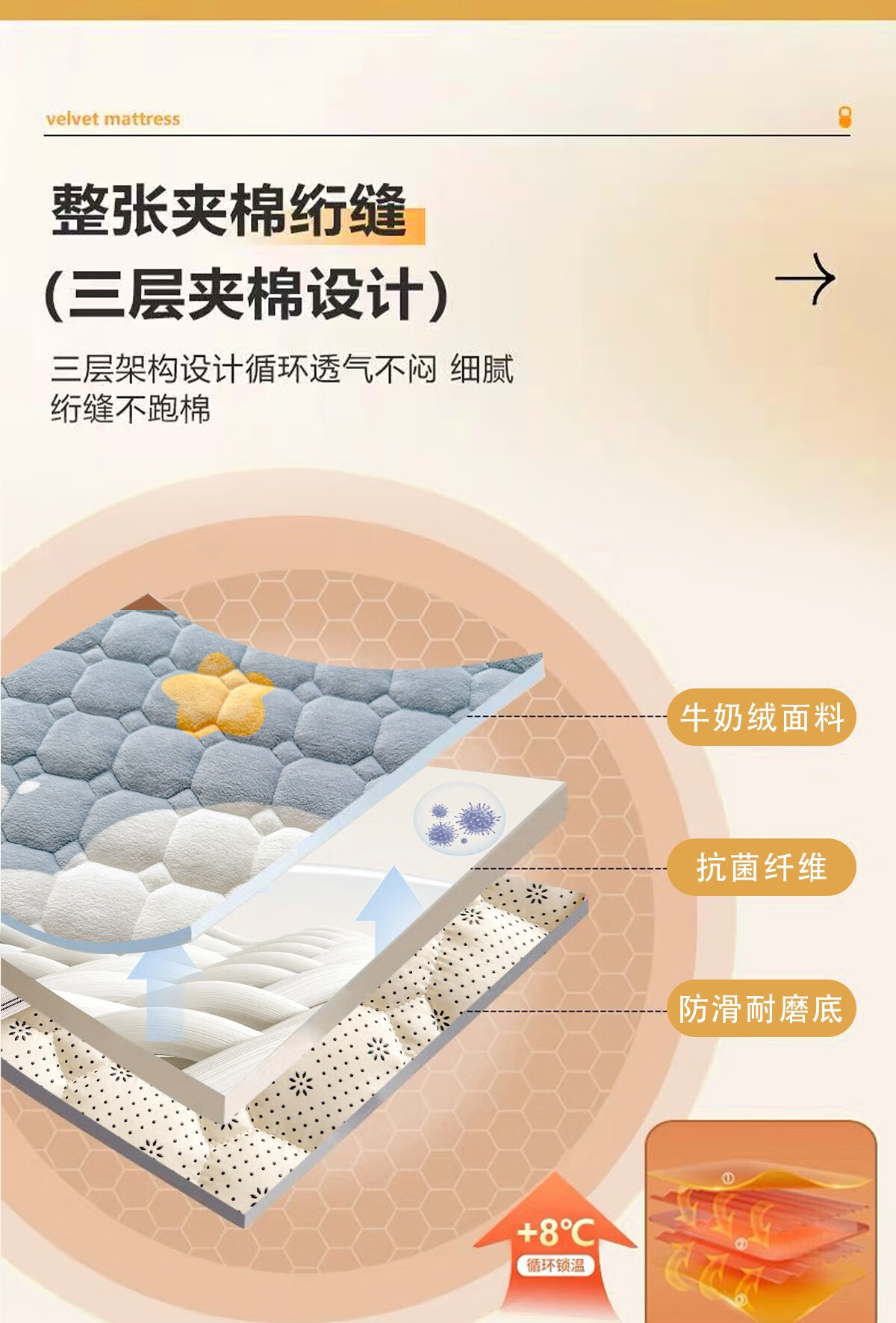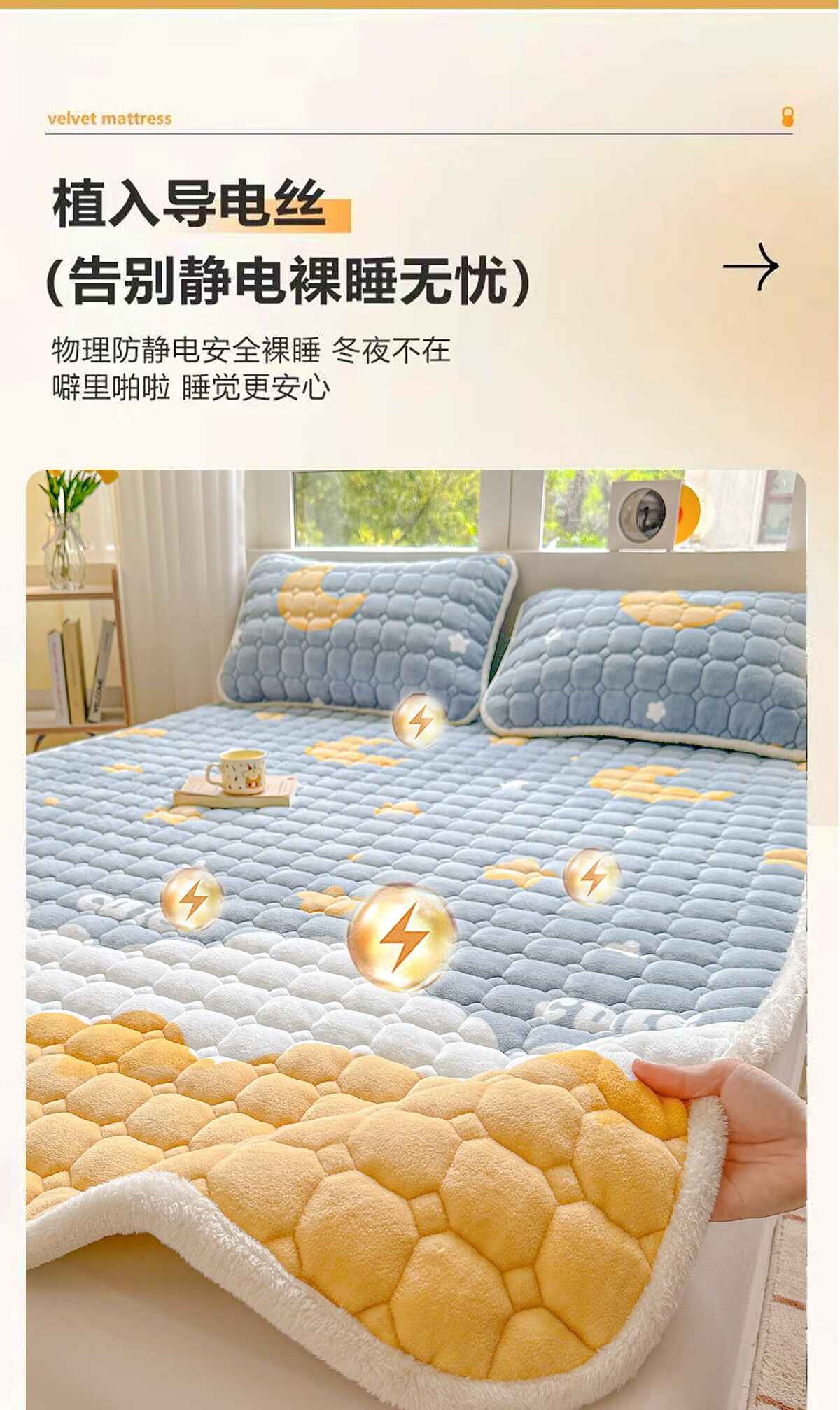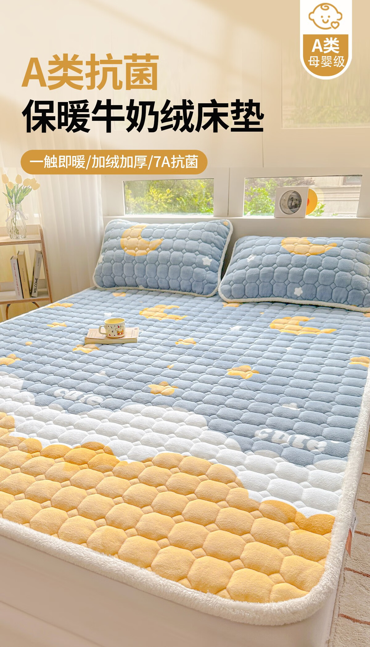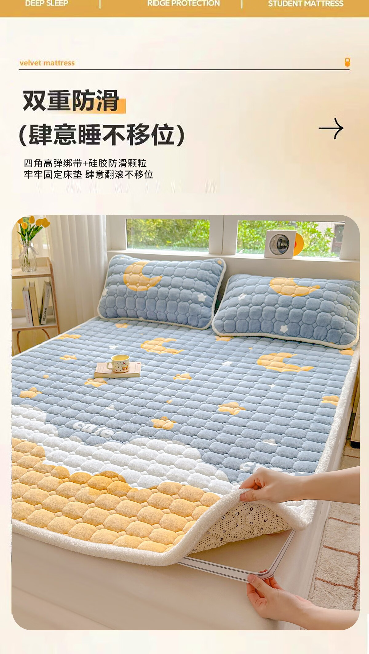 红蜻蜓(RED DRAGONFLY)冬季加绒床垫1.8米x2米加厚床褥垫家用单双人保暖铺底被褥软垫子 牛奶绒床褥-筑梦星空【加厚款】 180x200cm【单床褥】