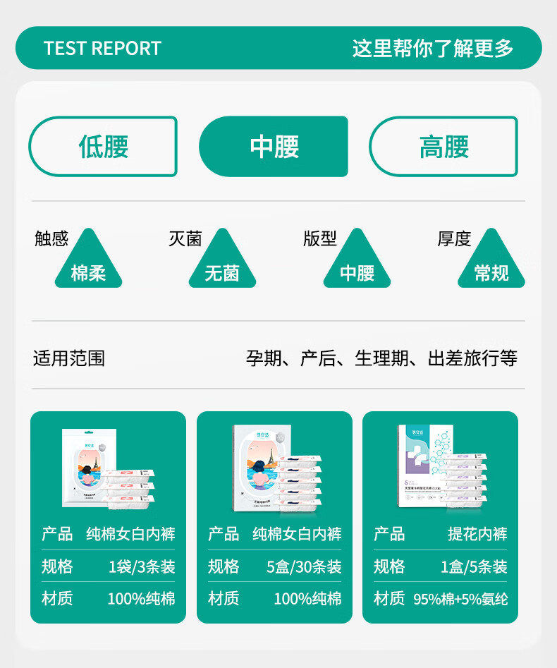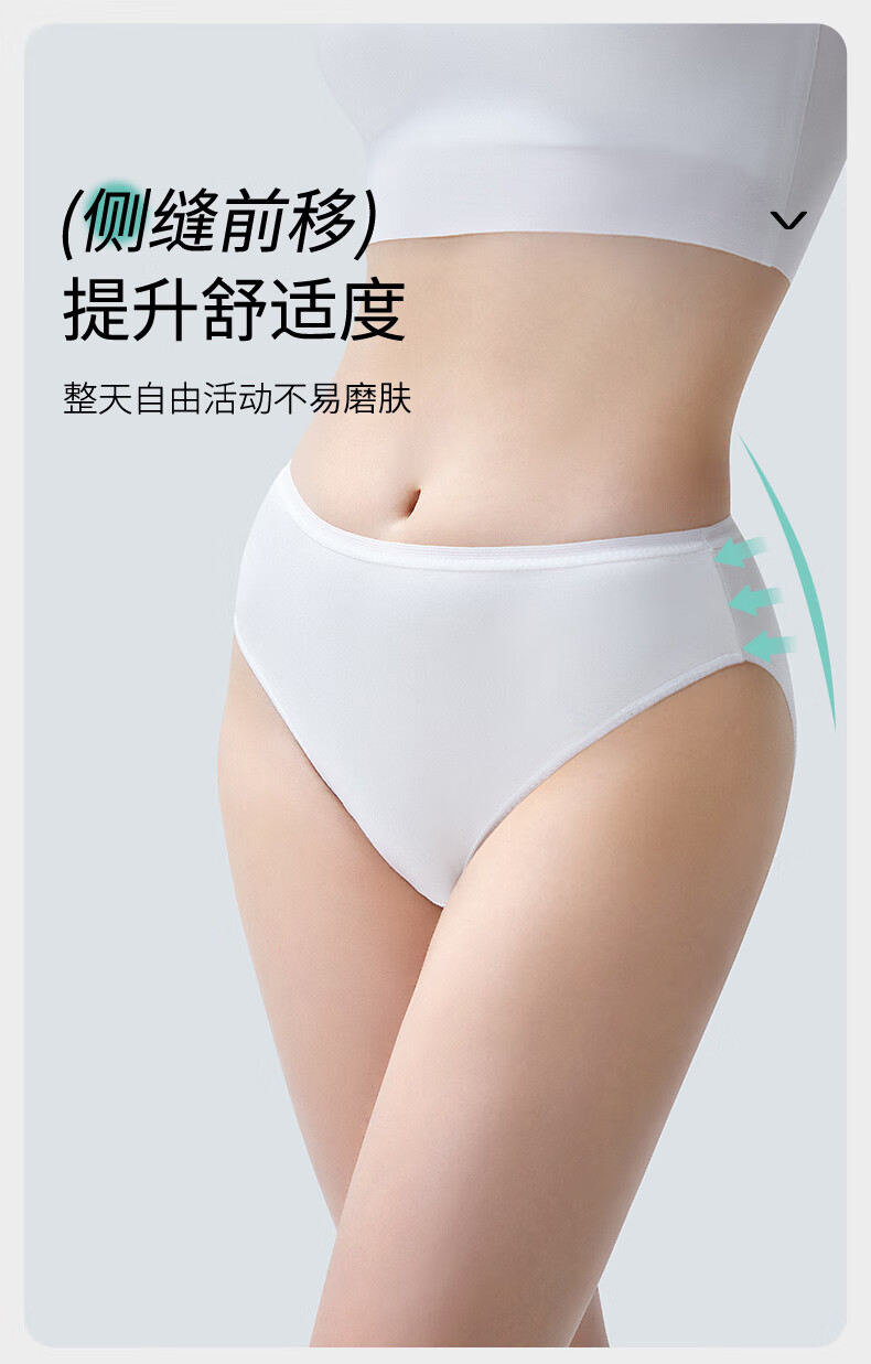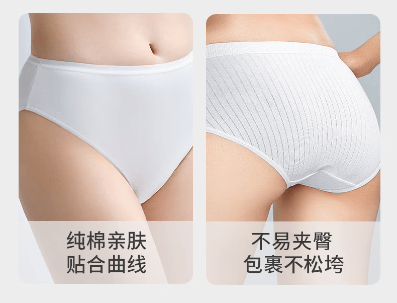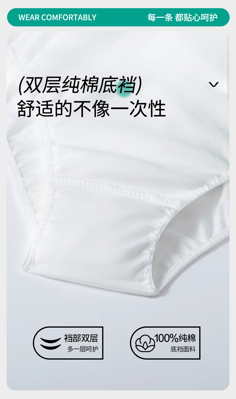 蓓安适一次性内裤女士纯棉免洗便携 独立包装 女士白色提花五条装 XL码