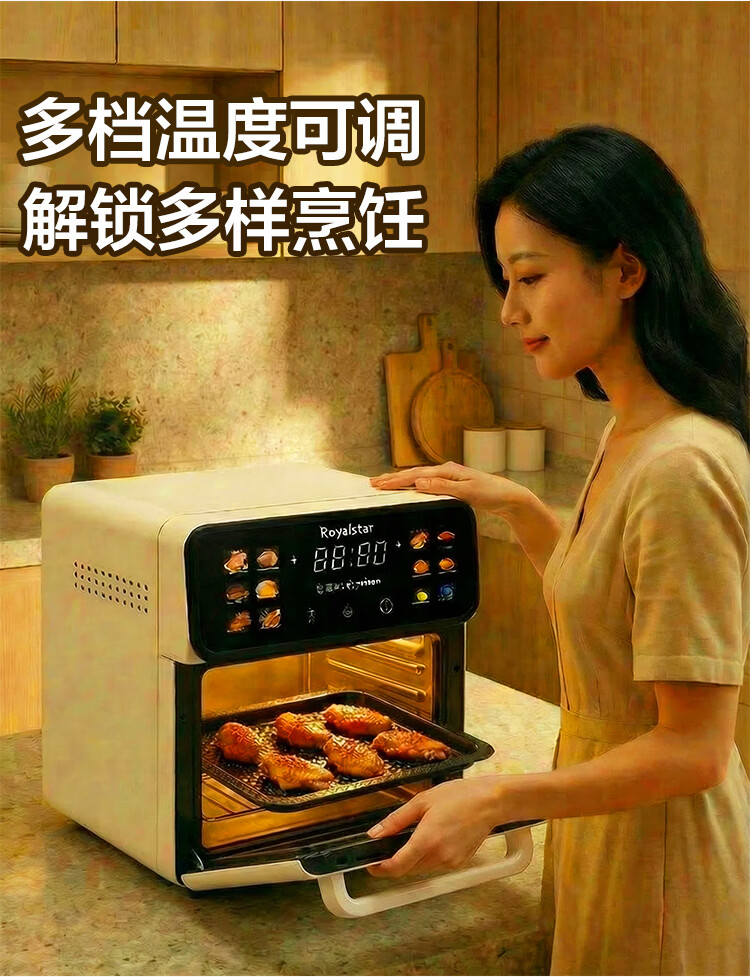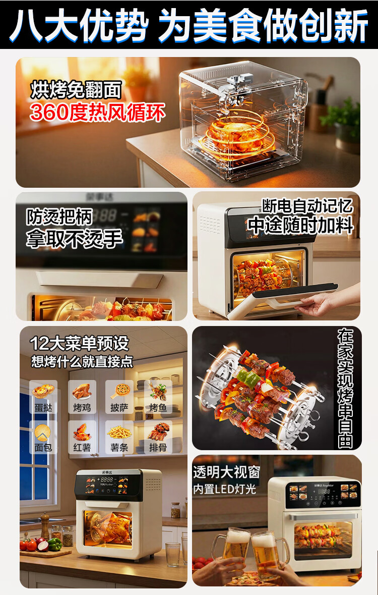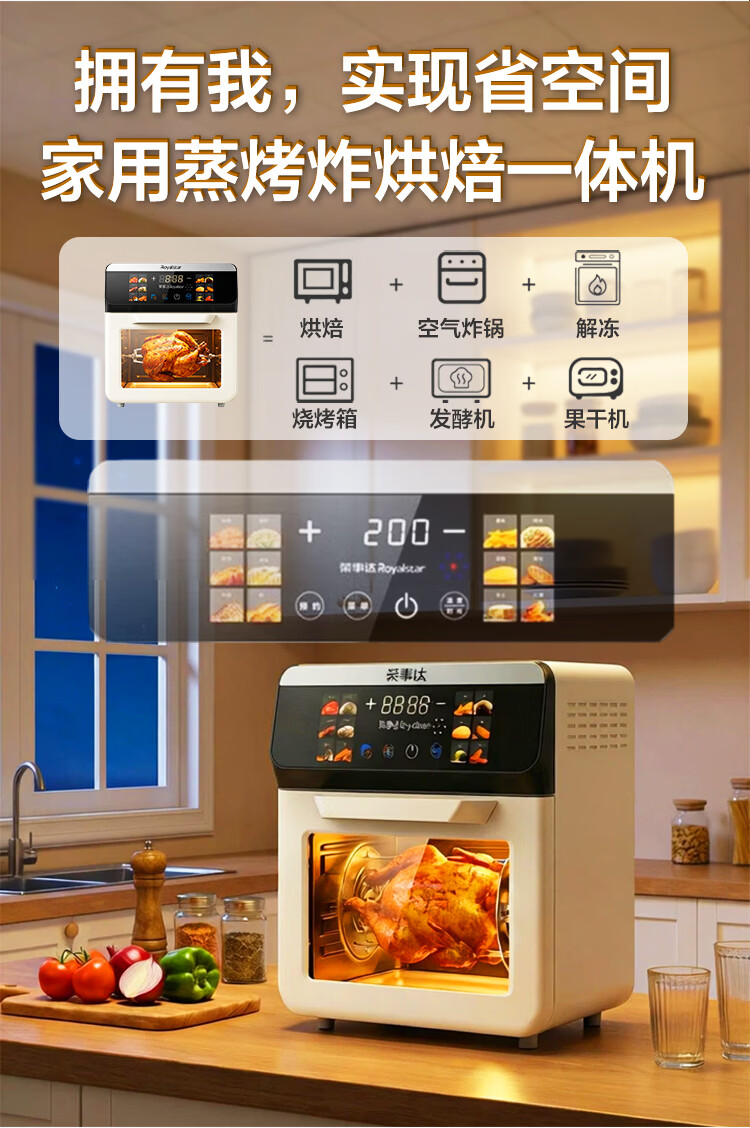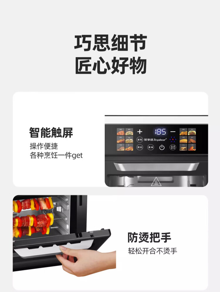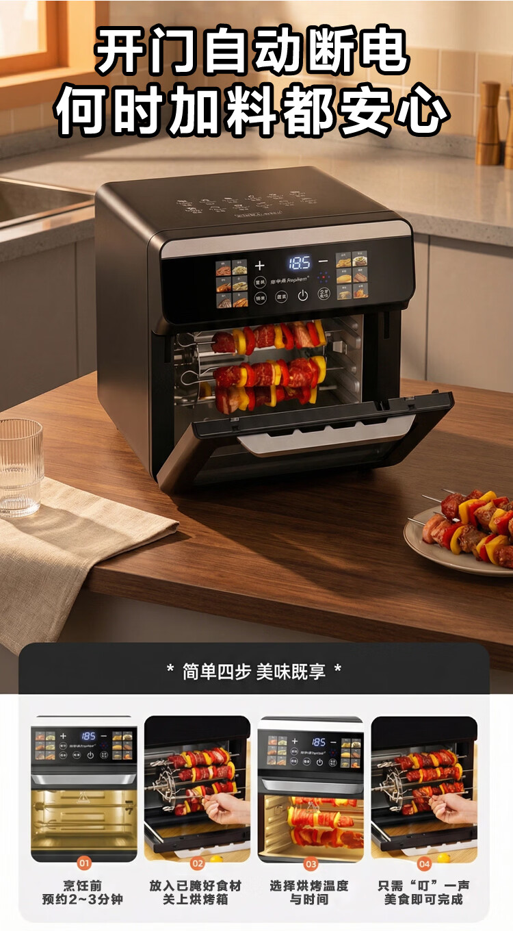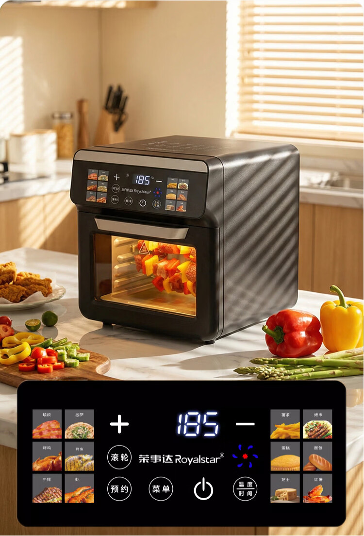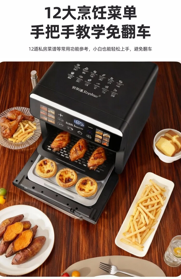 荣事达免翻面空气炸锅蒸烤一体2025年新款大容量可视化多功能烤箱三合一家用36升空气炸烤箱一体机 深黑色 36L 【标配款】空气炸烤箱 | 整机
