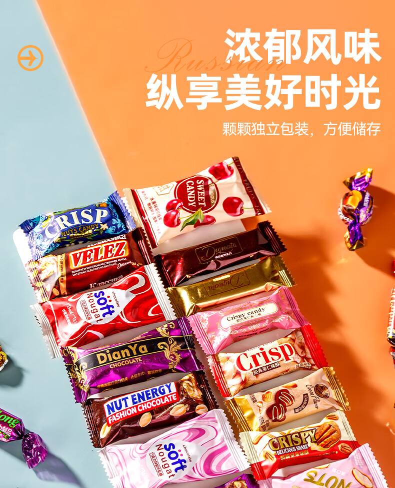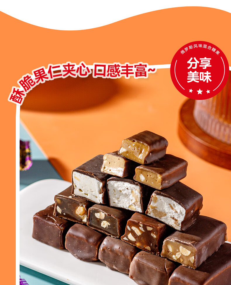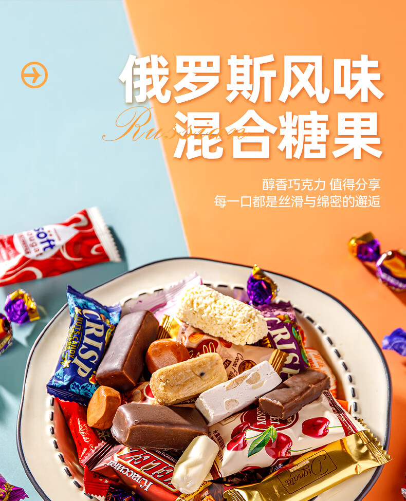 俄罗斯风味混合糖巧克力夹心混合糖果酥糖休闲零食喜糖散装年货 俄罗斯混合糖250g 1袋