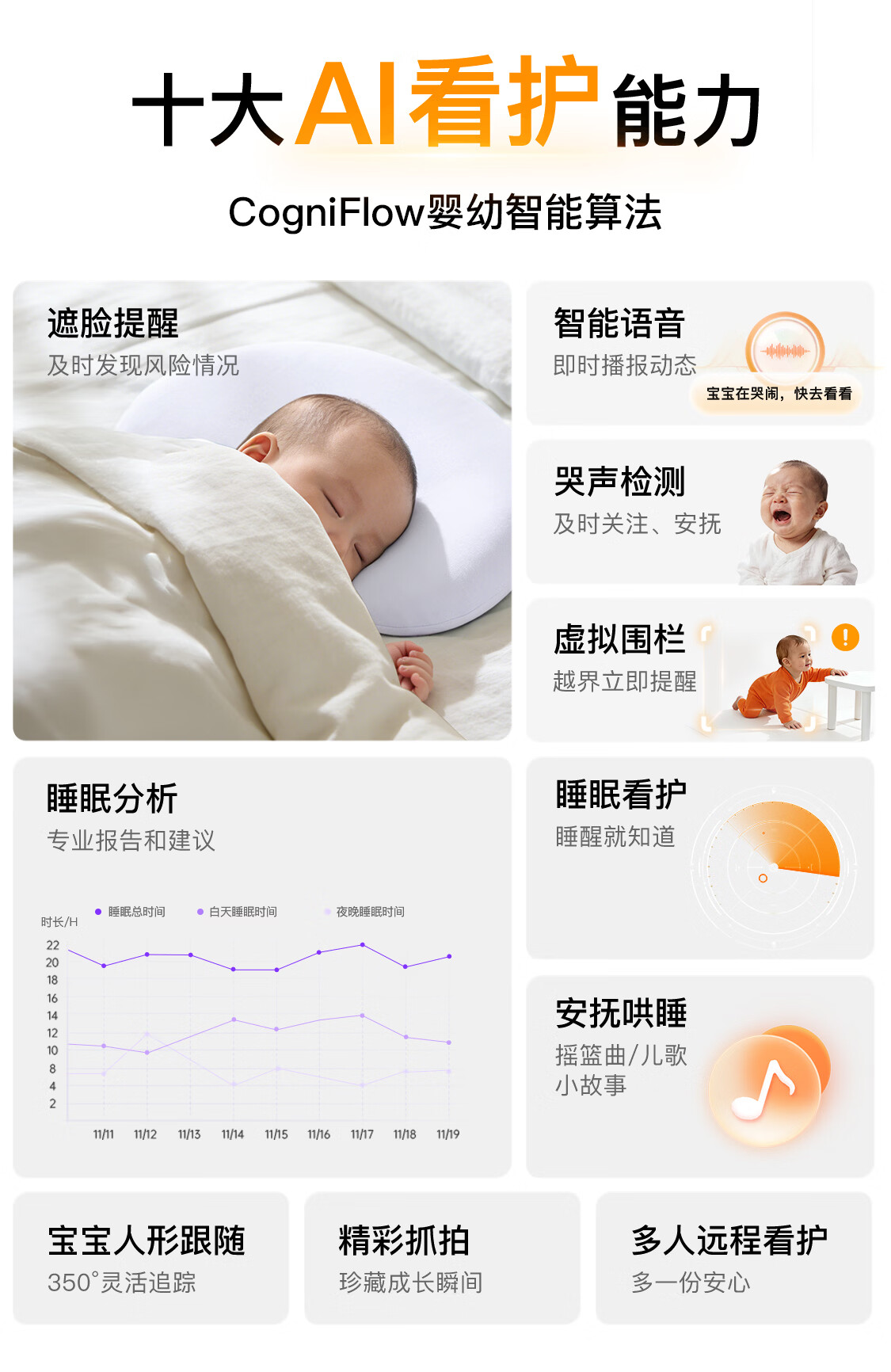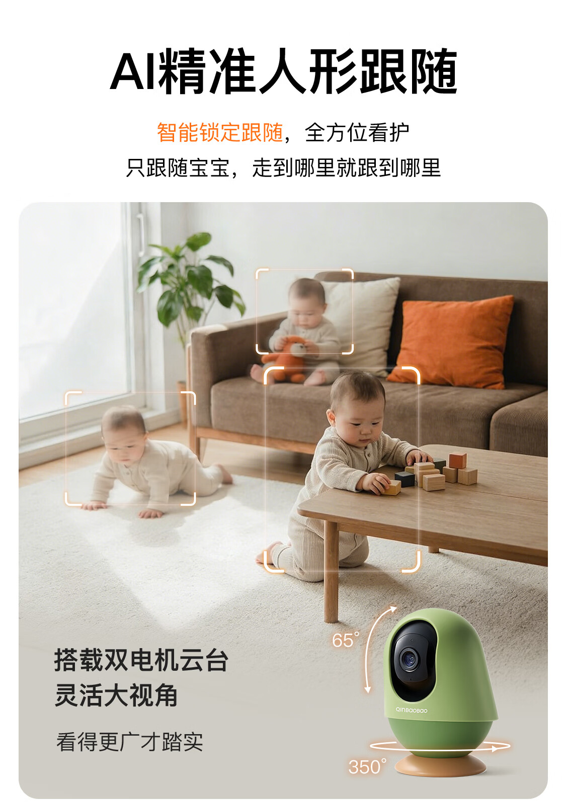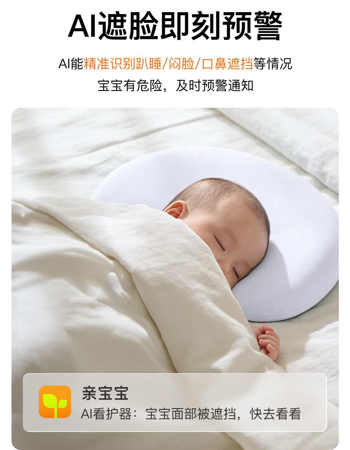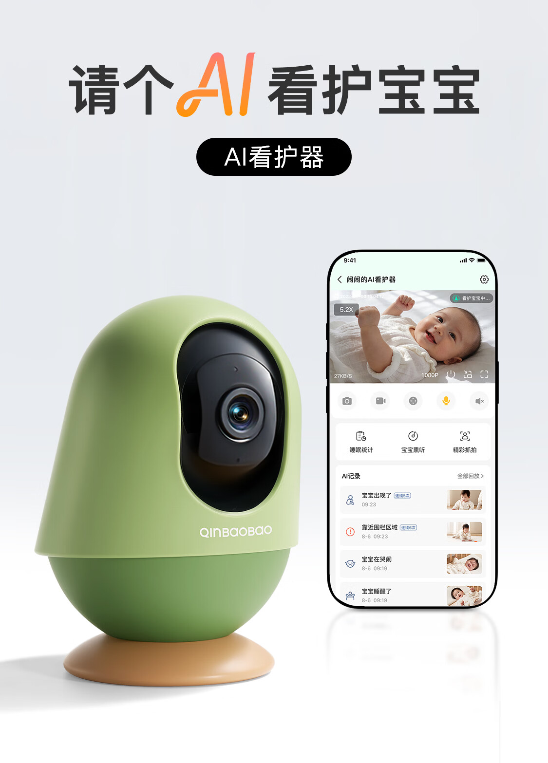 亲宝宝AI智能看护器婴儿监护器家用监控哭声宝宝床摄像头看娃神器32G