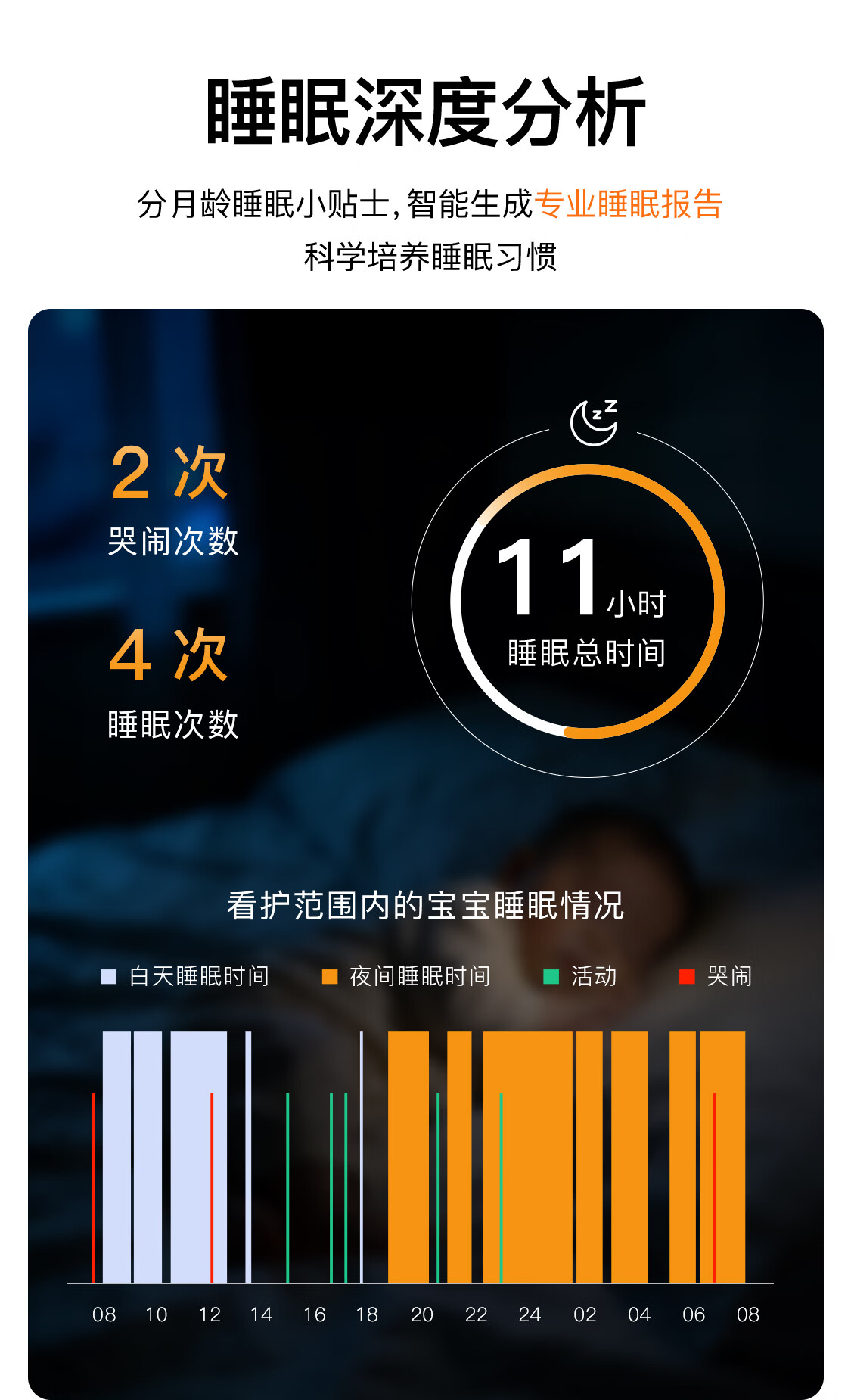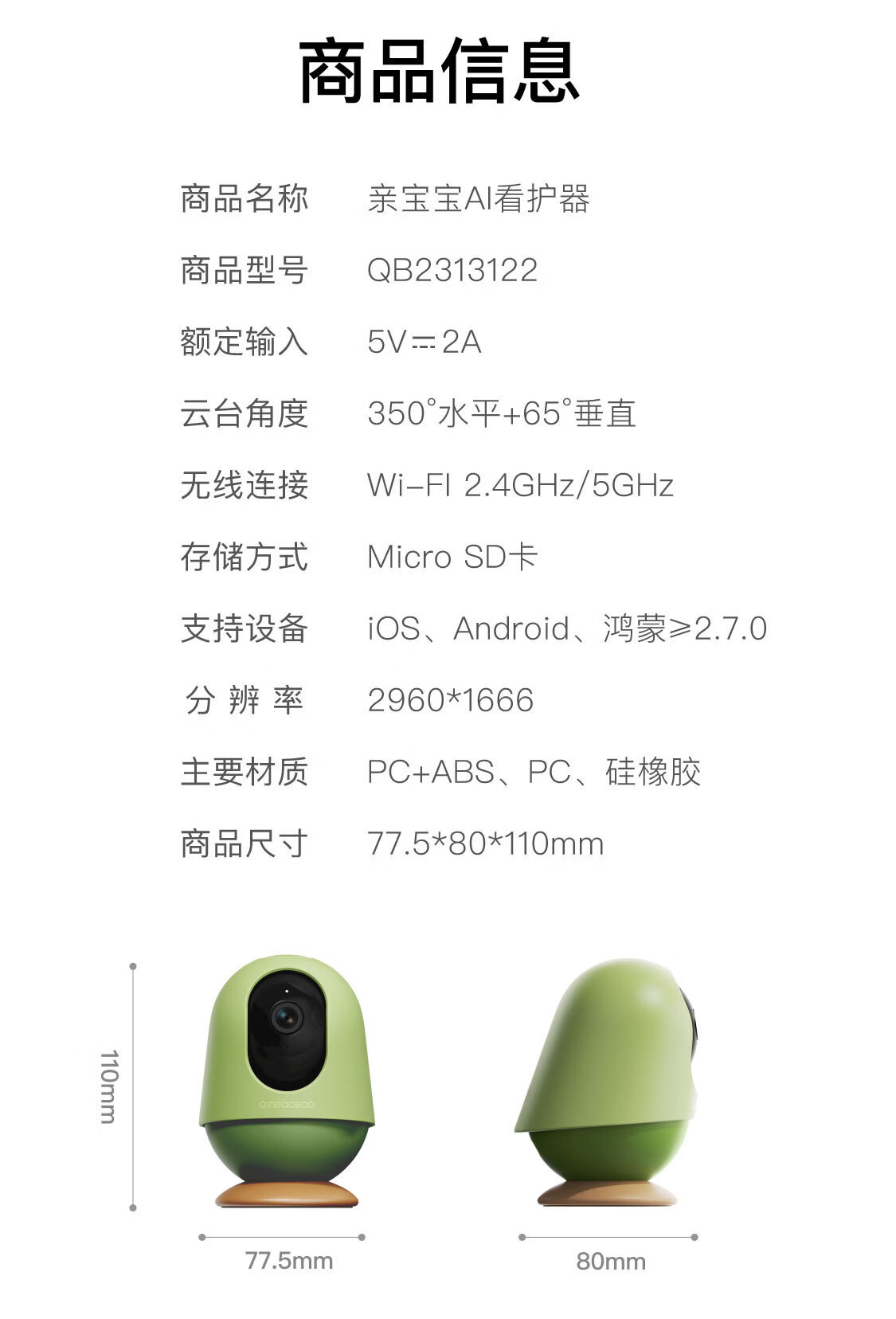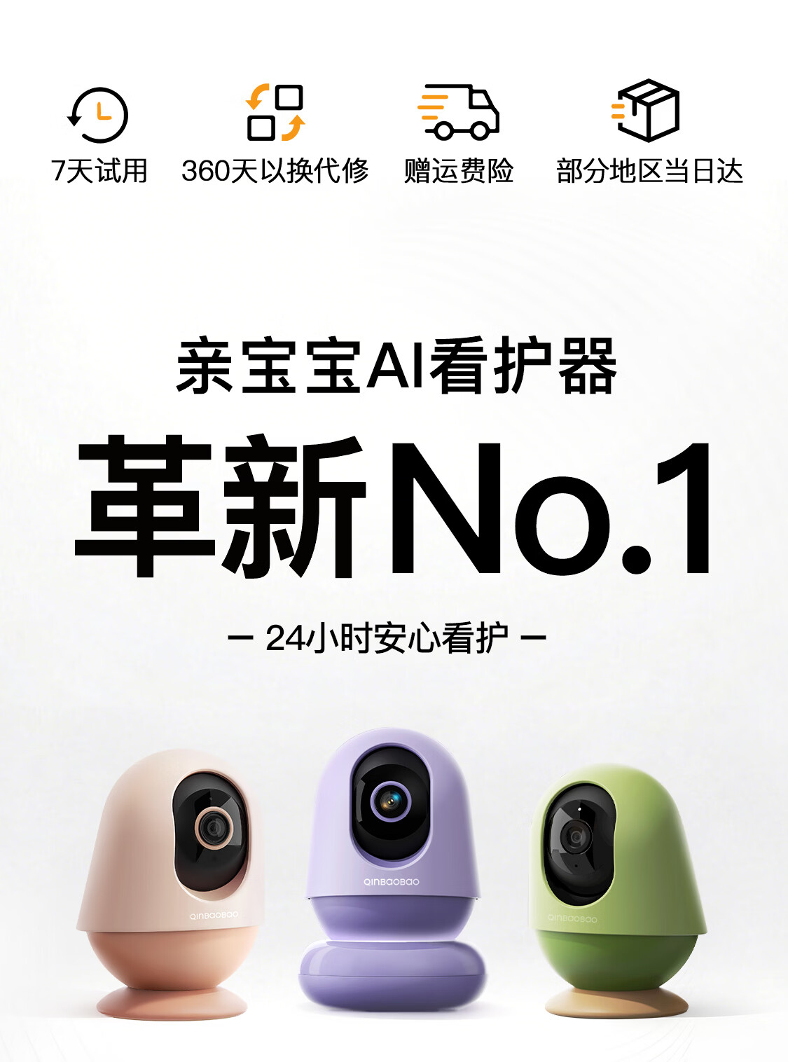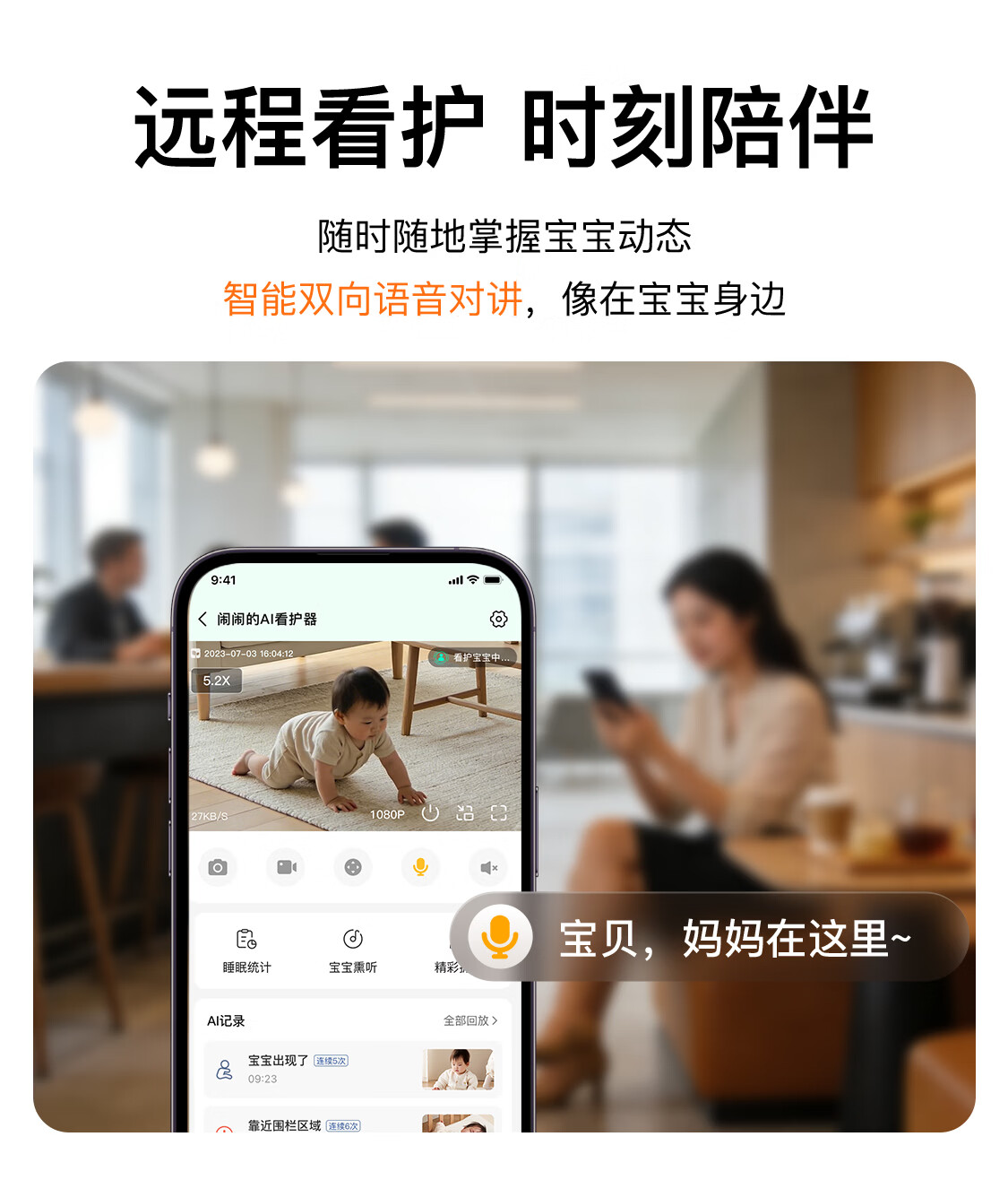 亲宝宝AI智能看护器婴儿监护器家用监控哭声宝宝床摄像头看娃神器32G