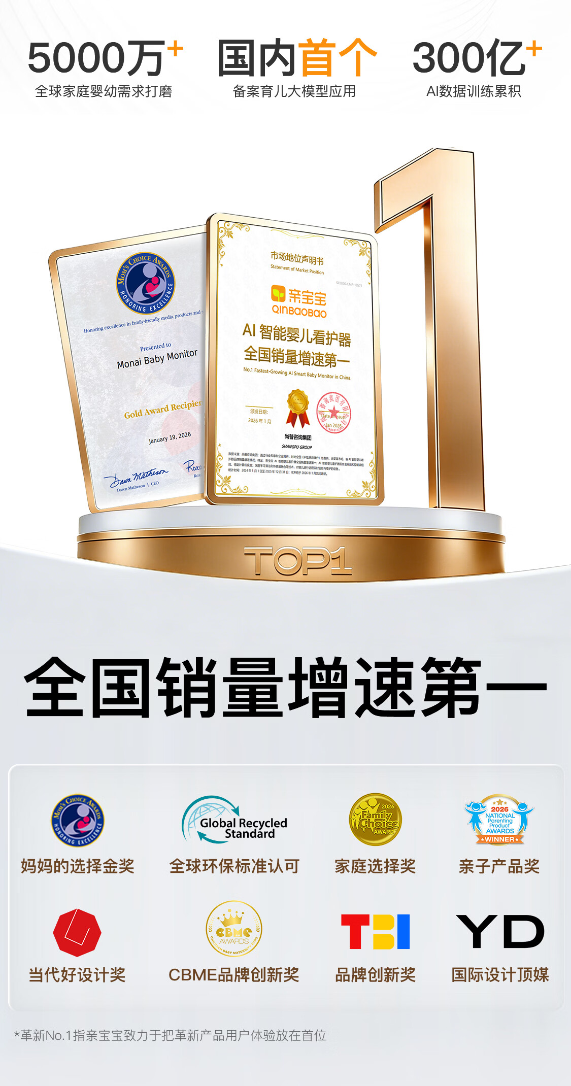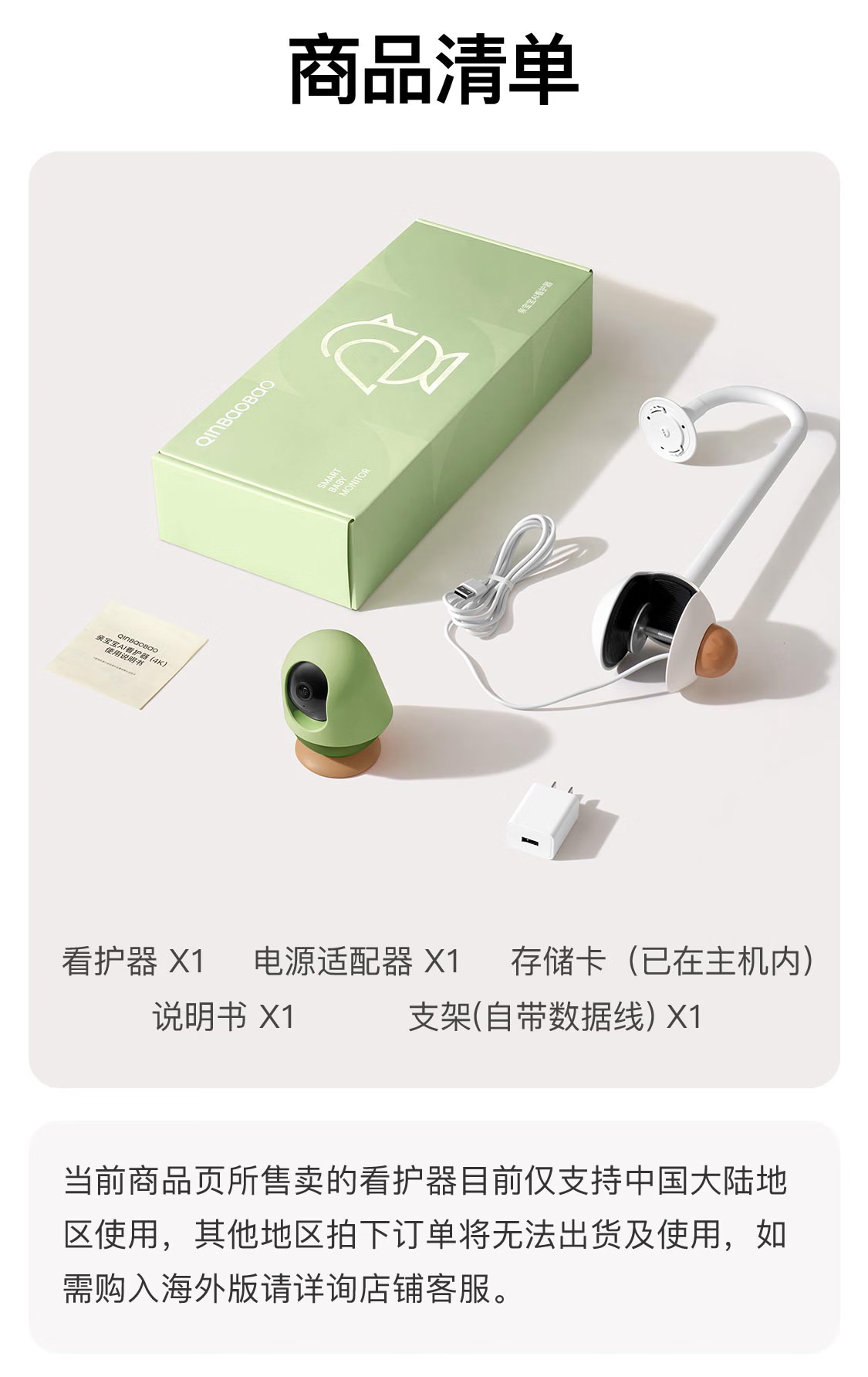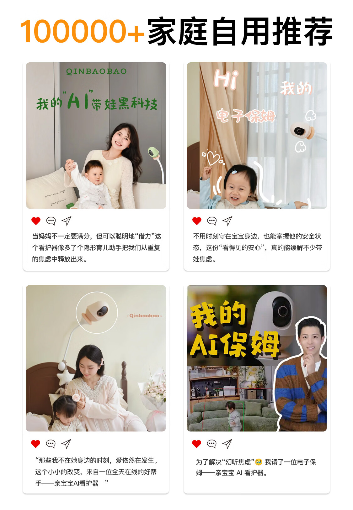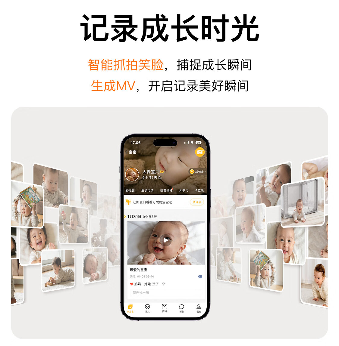 亲宝宝AI智能看护器婴儿监护器家用监控哭声宝宝床摄像头看娃神器32G
