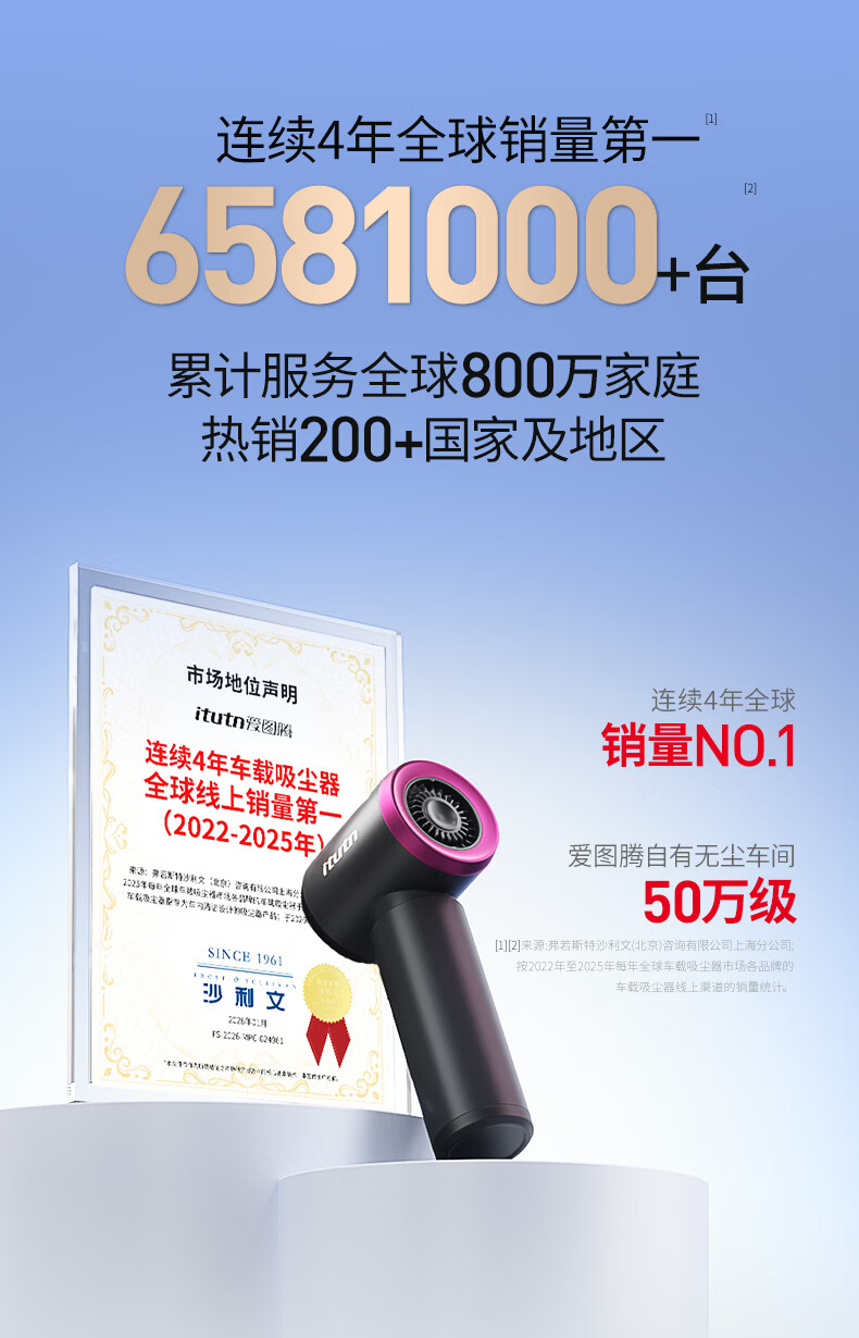 爱图腾itutn车载吸尘器无线大吸力吹吸两用车用手持吸尘器汽车内小型迷你随手吸家用清灰企业礼品优选