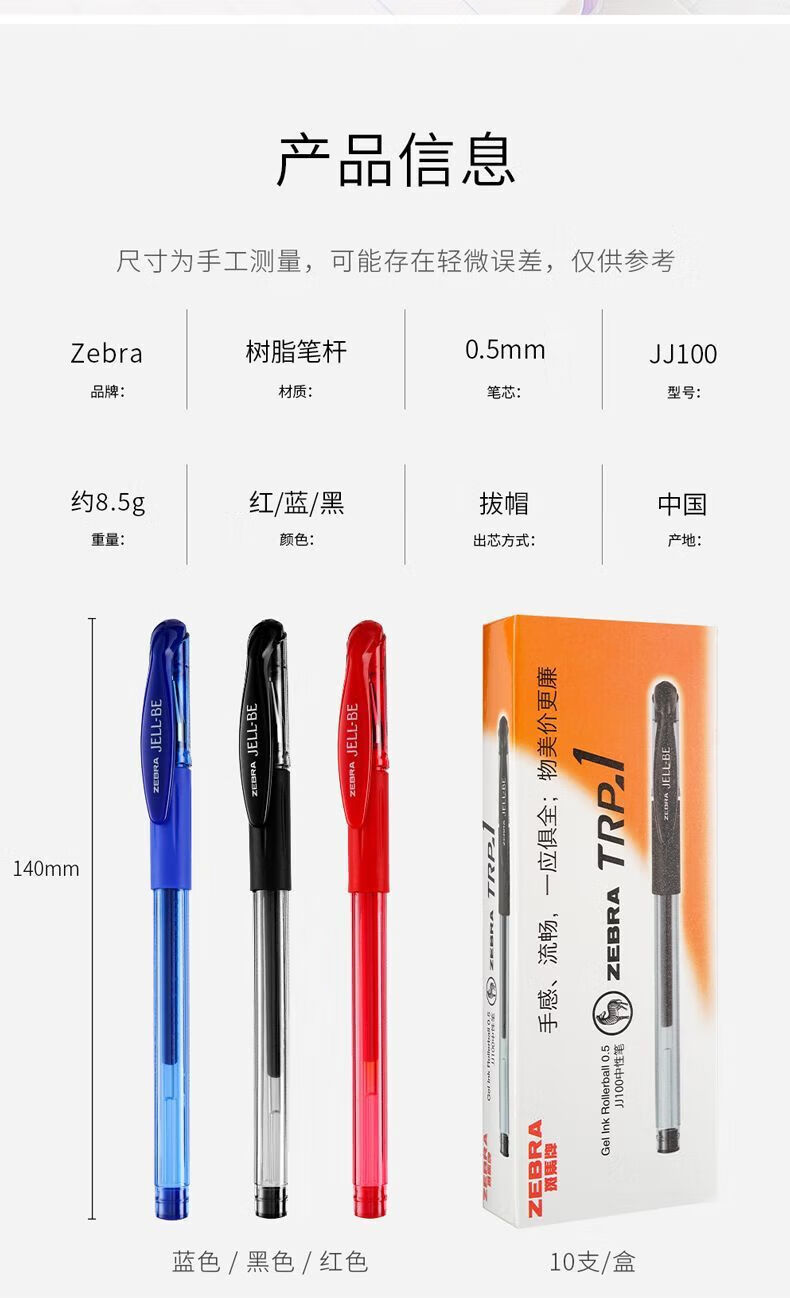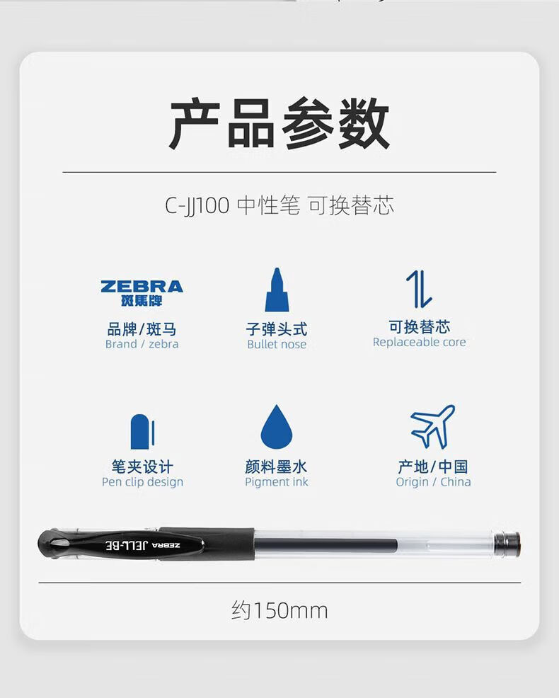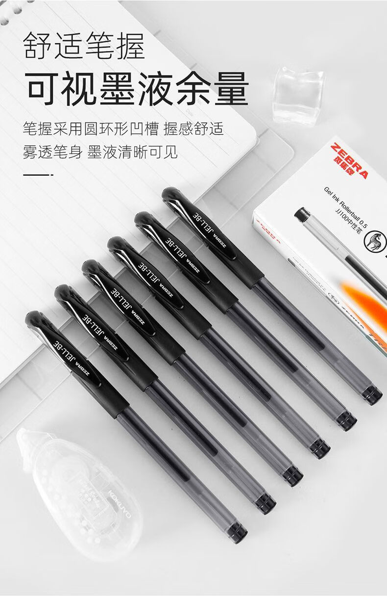 斑马牌(ZEBRA 0.5mm子弹头签字笔C-JJ100学生考试标记笔走珠水性笔办公财务水笔进口笔 黑色 5支装
