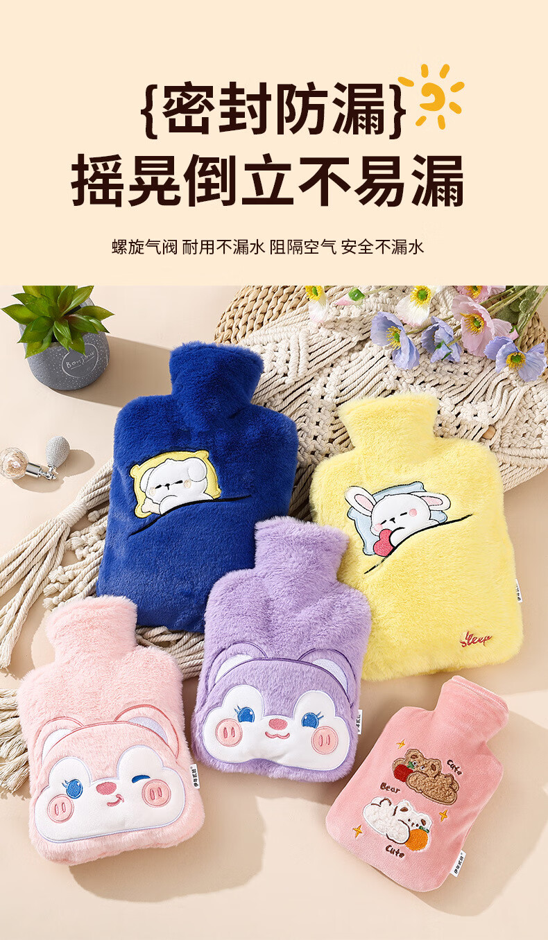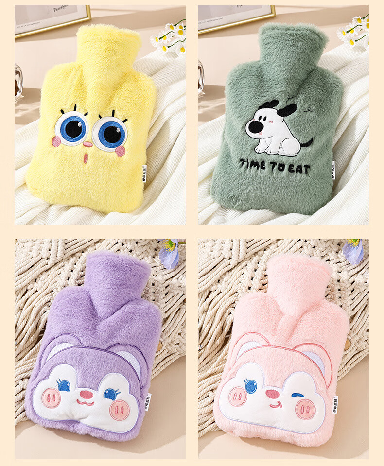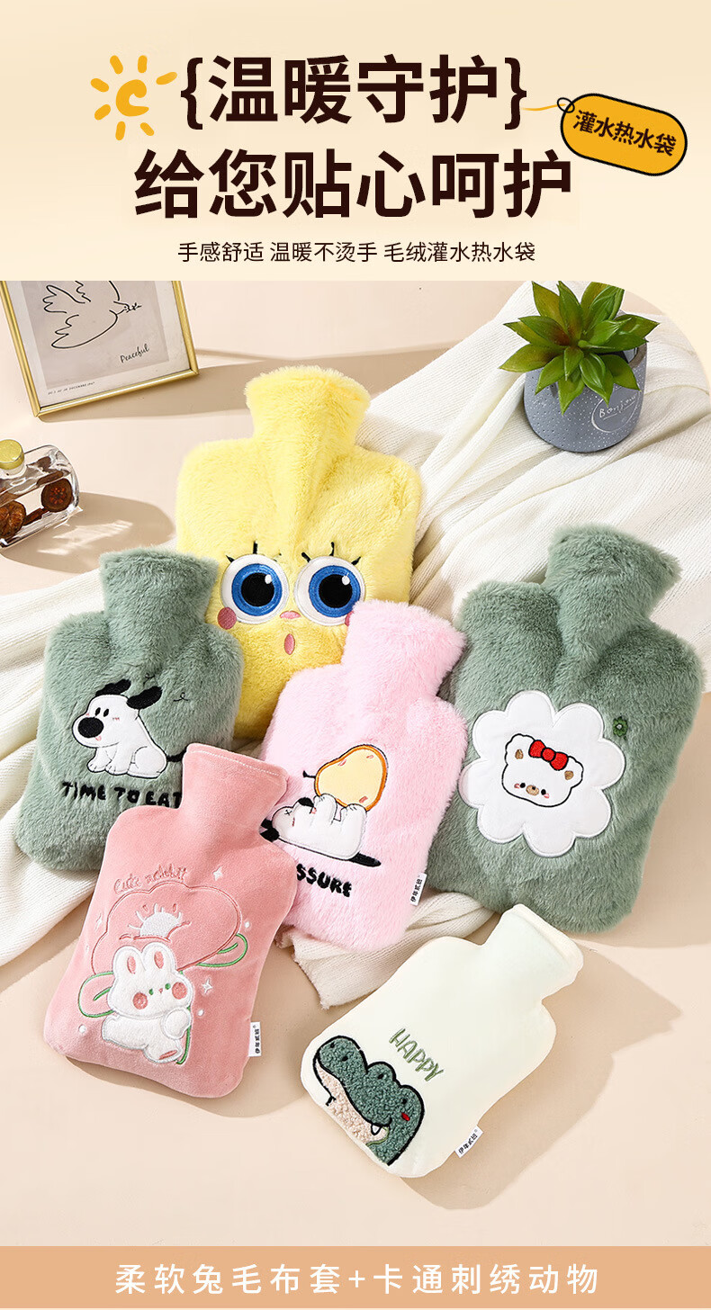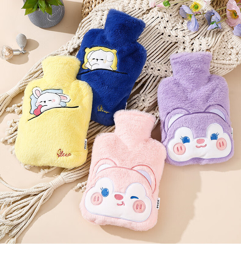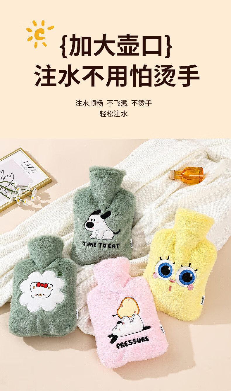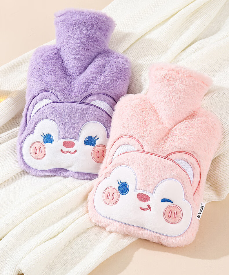 尤思纳【严选】新款热水袋注水可爱毛绒暖脚大号暖手宝腰热敷暖水袋敷肚 粉色萌宠 500ml