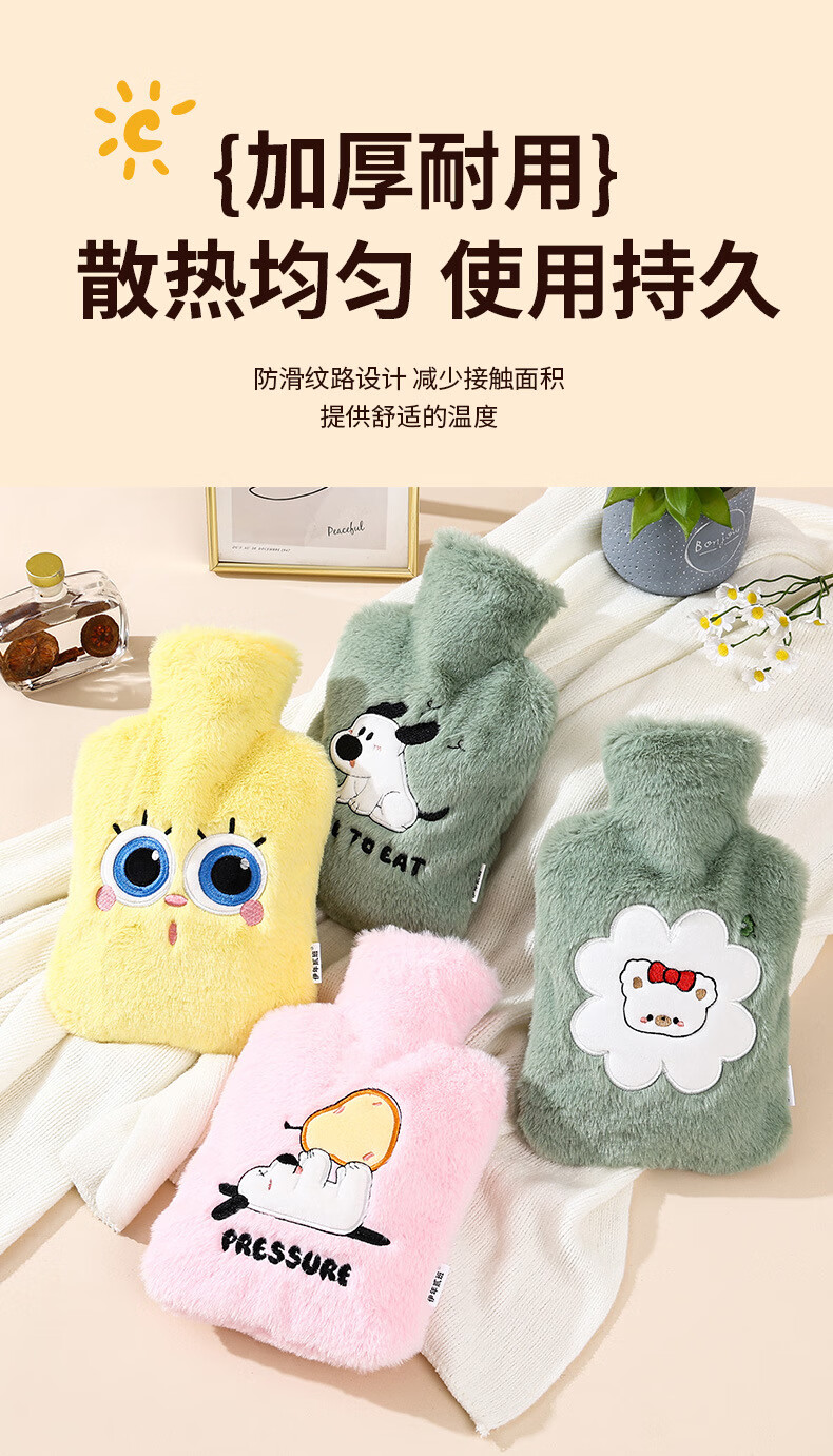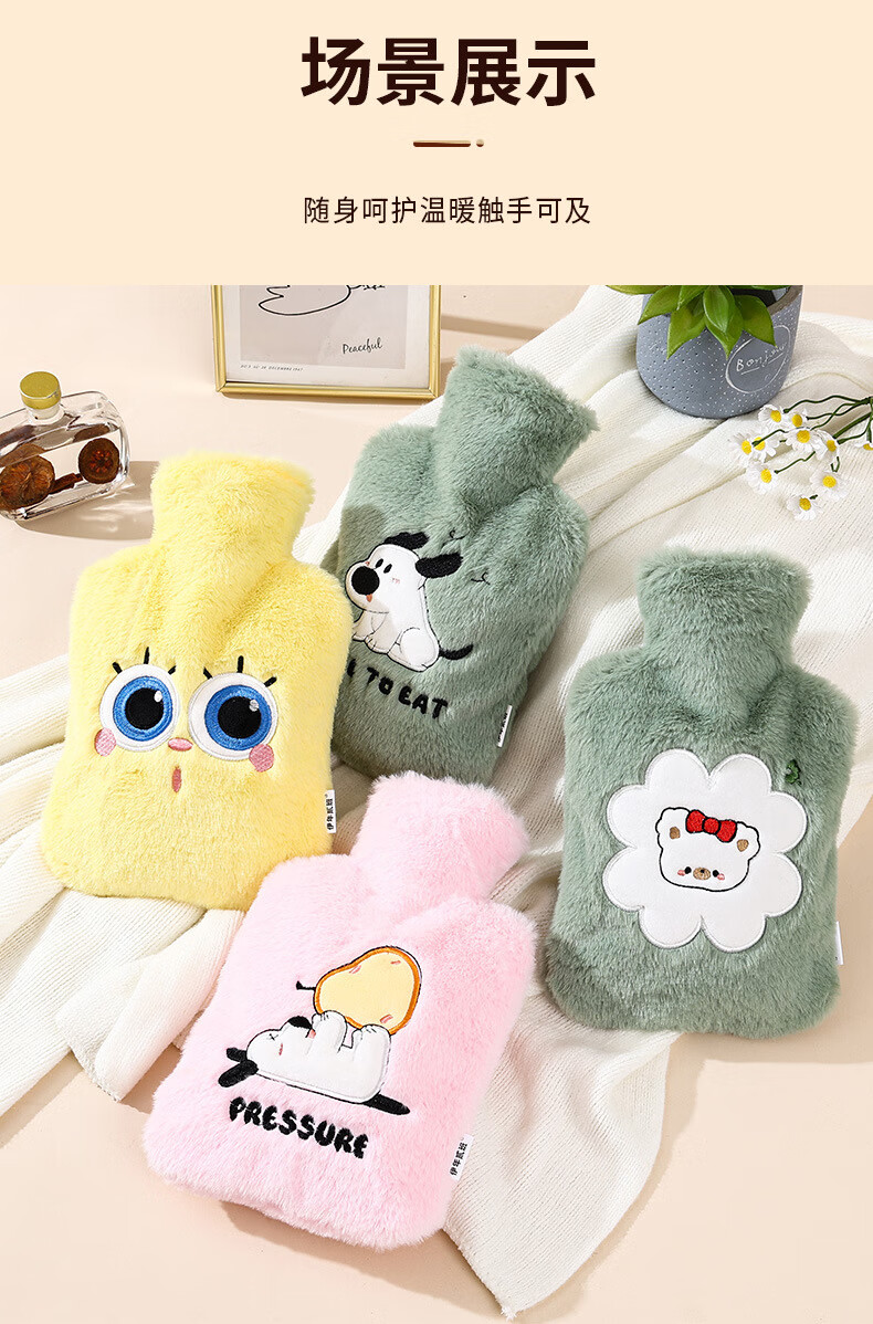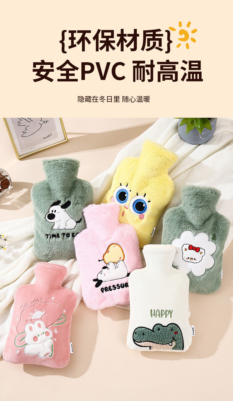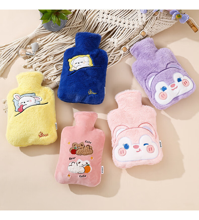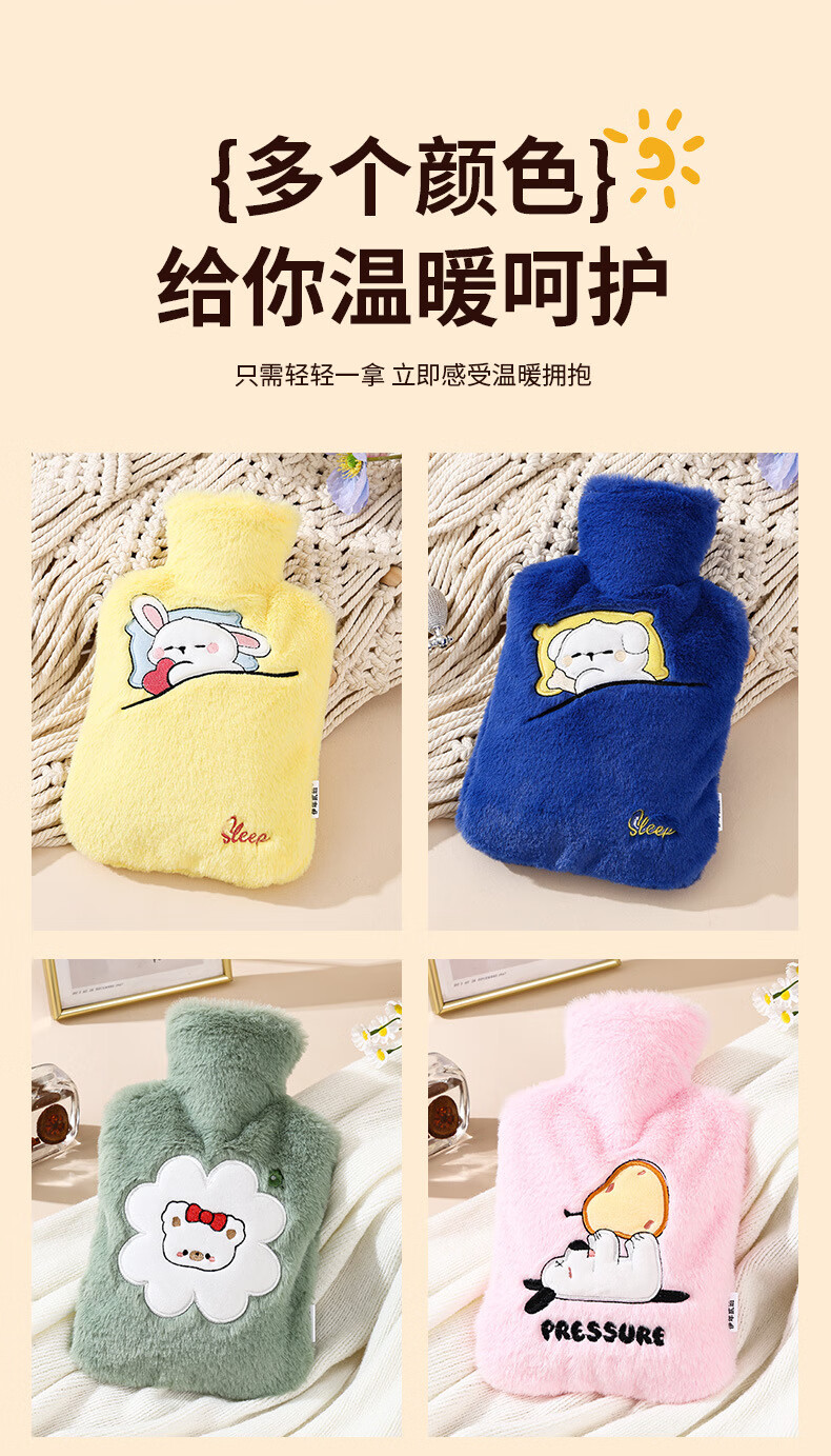尤思纳【严选】新款热水袋注水可爱毛绒暖脚大号暖手宝腰热敷暖水袋敷肚 粉色萌宠 500ml
