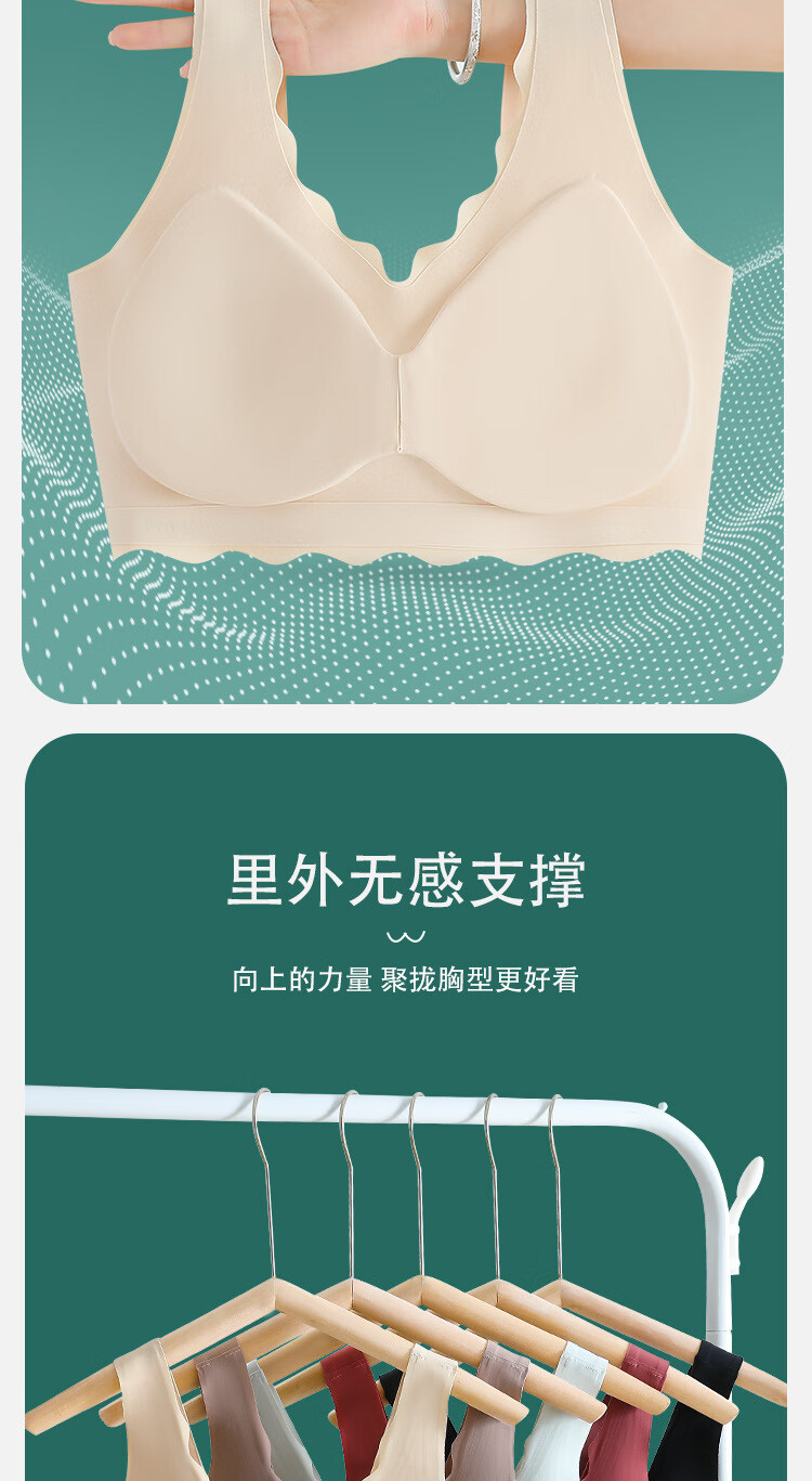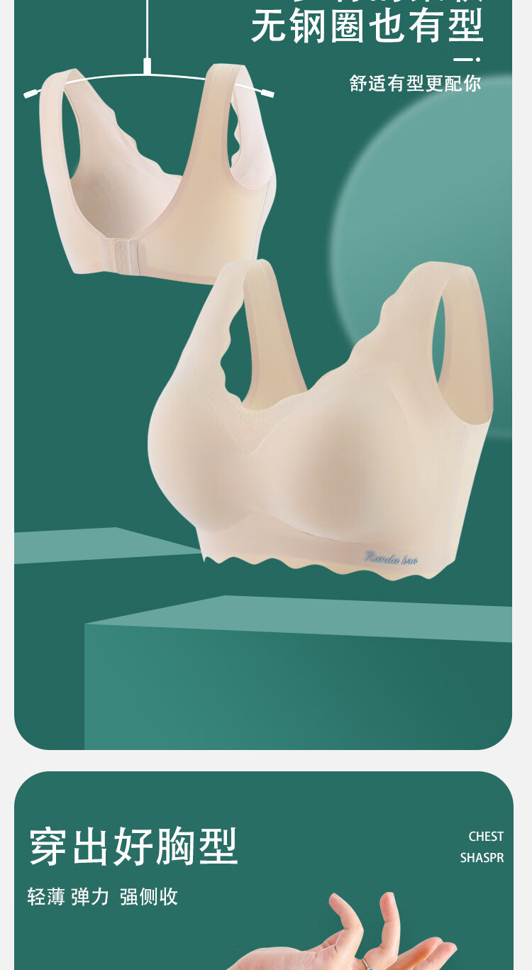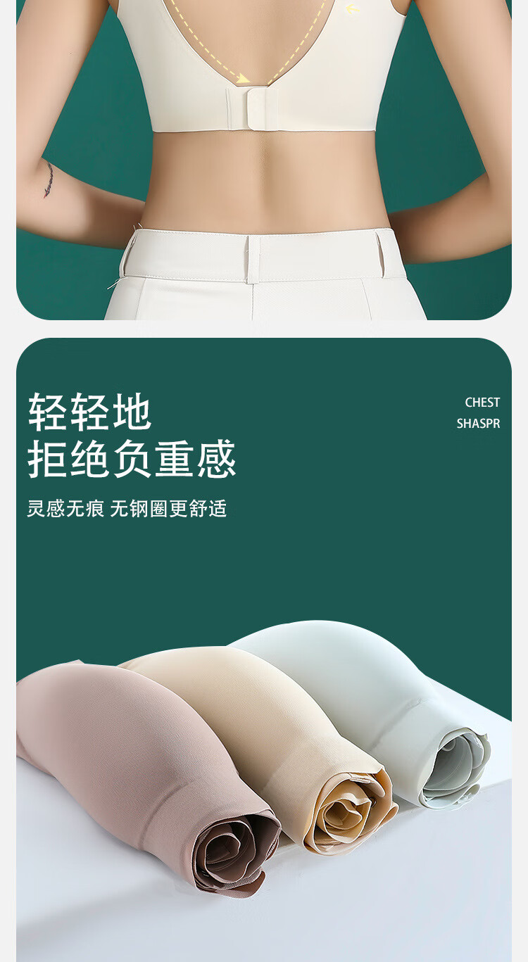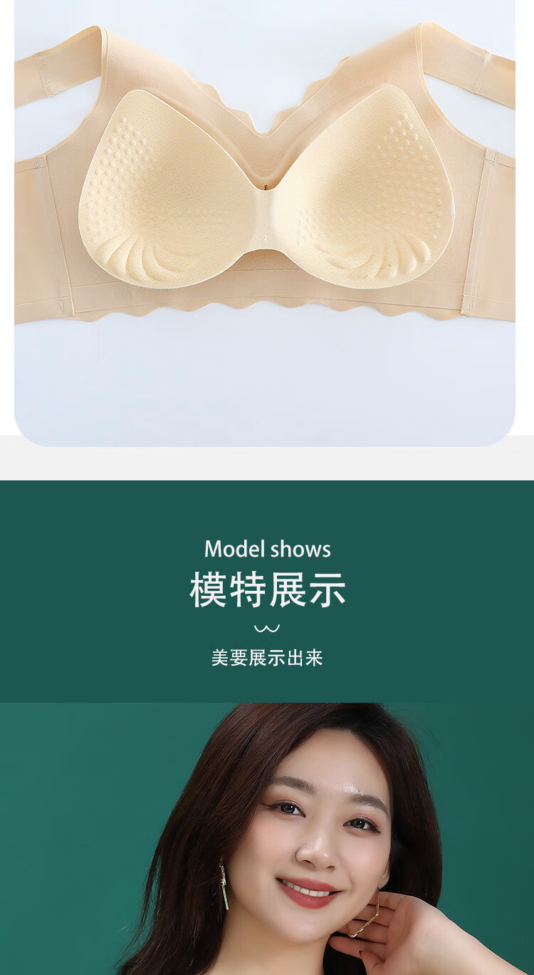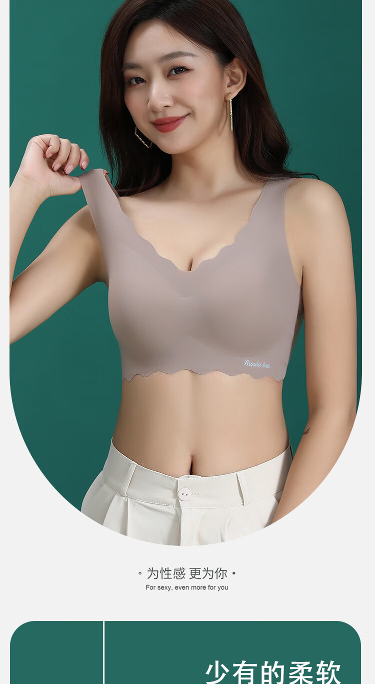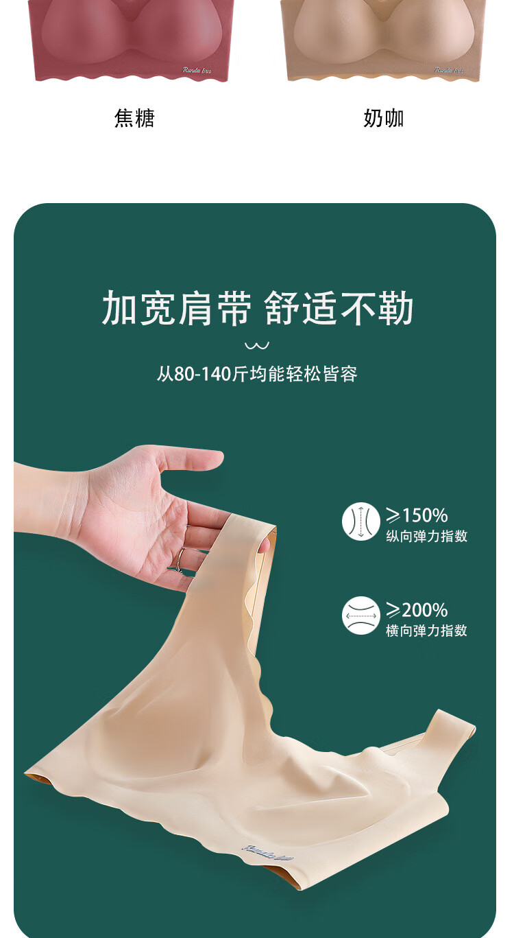 内衣女无痕冰丝透气一片式文胸大胸显小聚拢无排扣无钢圈文胸罩 奶咖 2XL 135-155斤