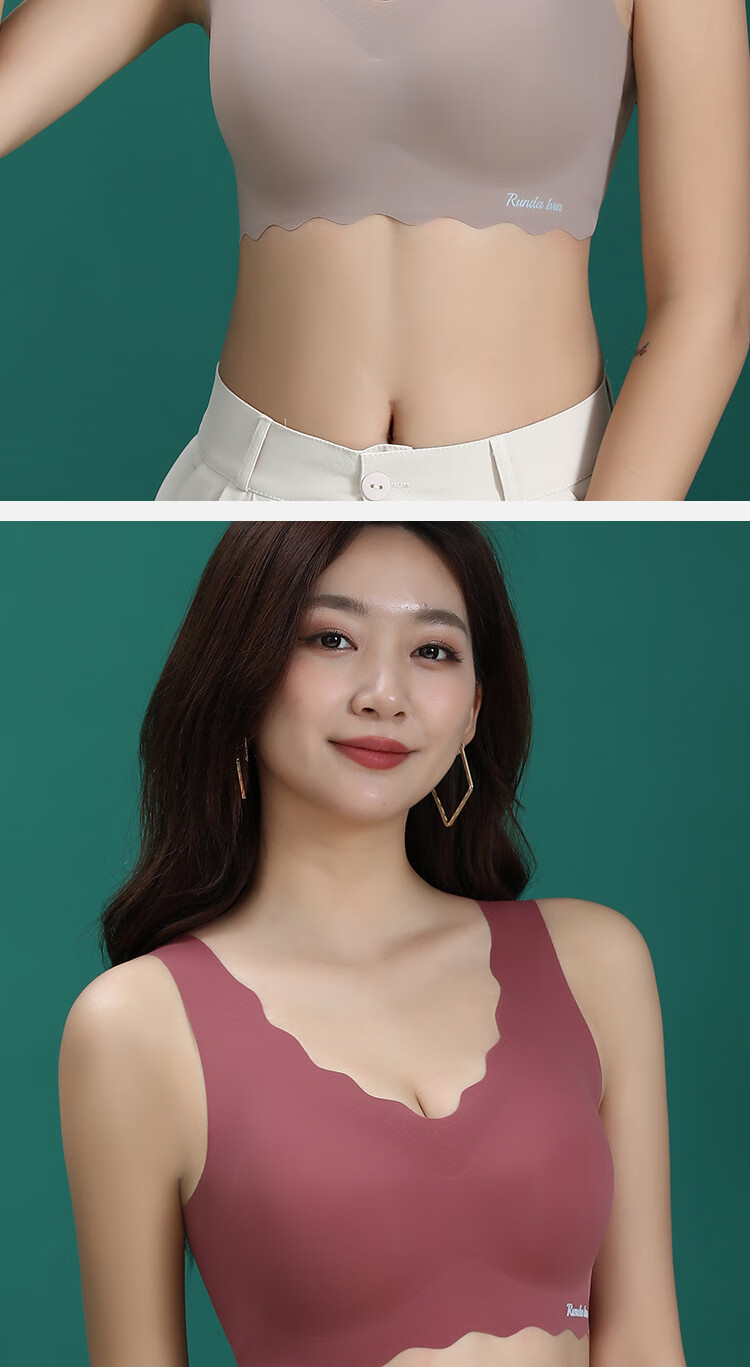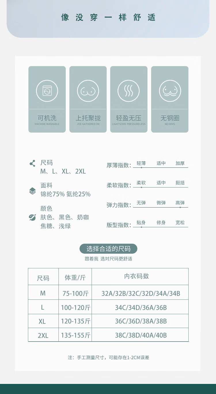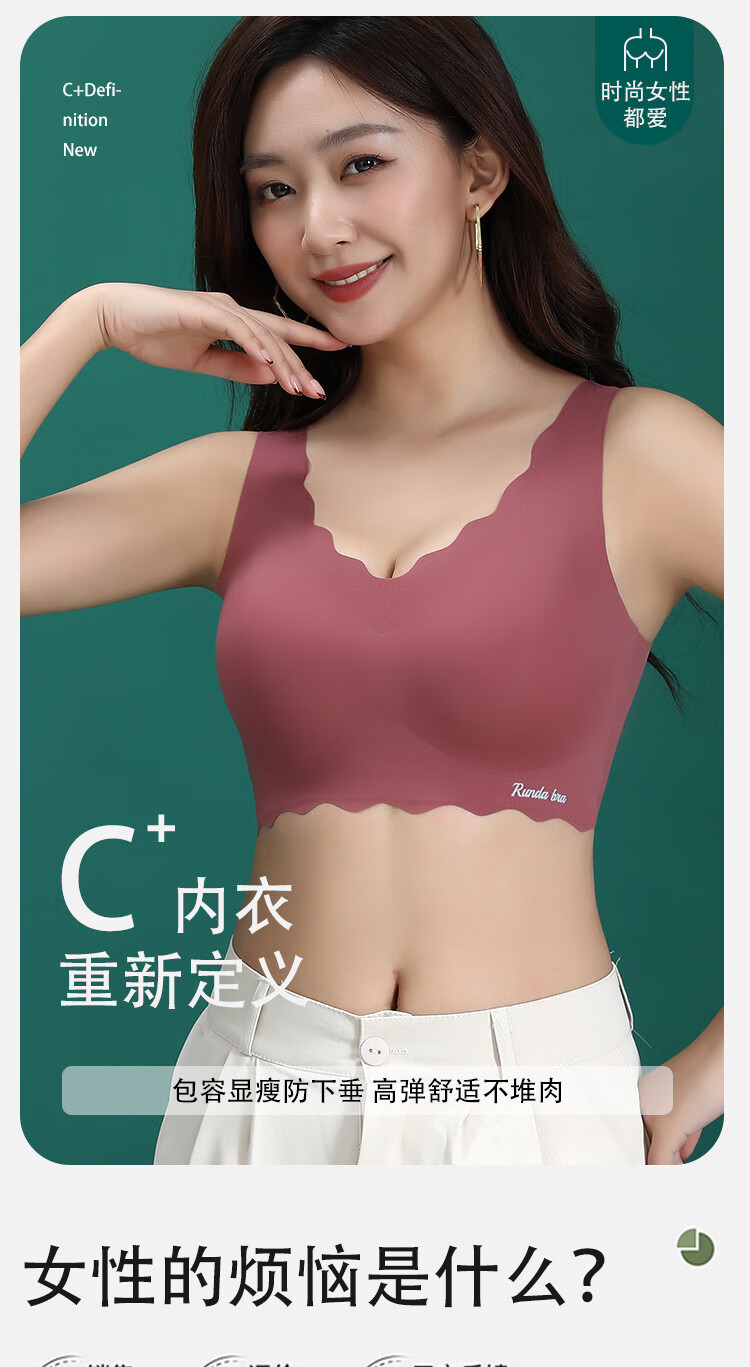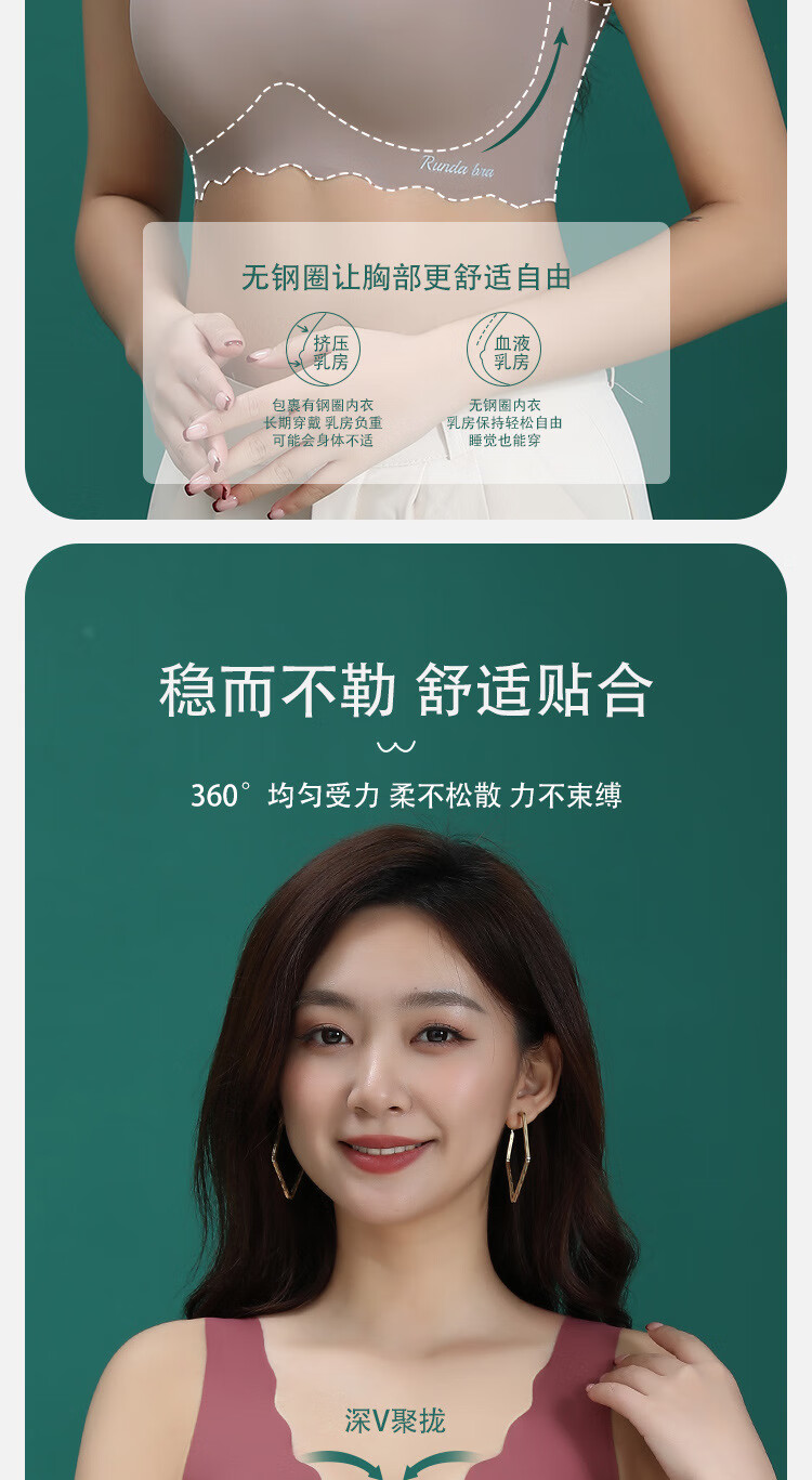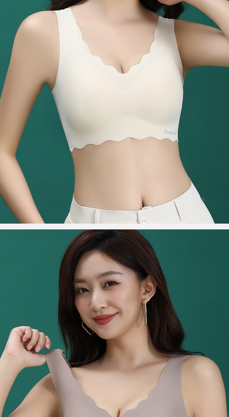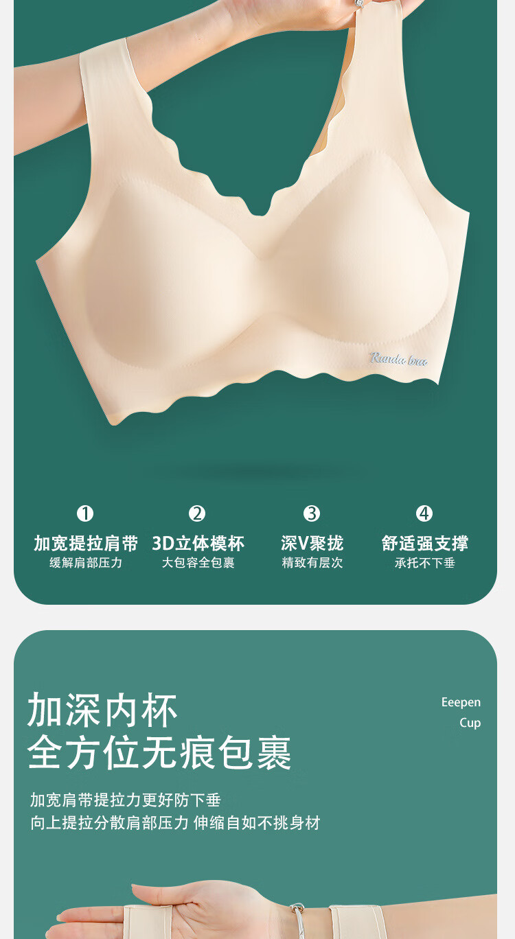 内衣女无痕冰丝透气一片式文胸大胸显小聚拢无排扣无钢圈文胸罩 奶咖 2XL 135-155斤