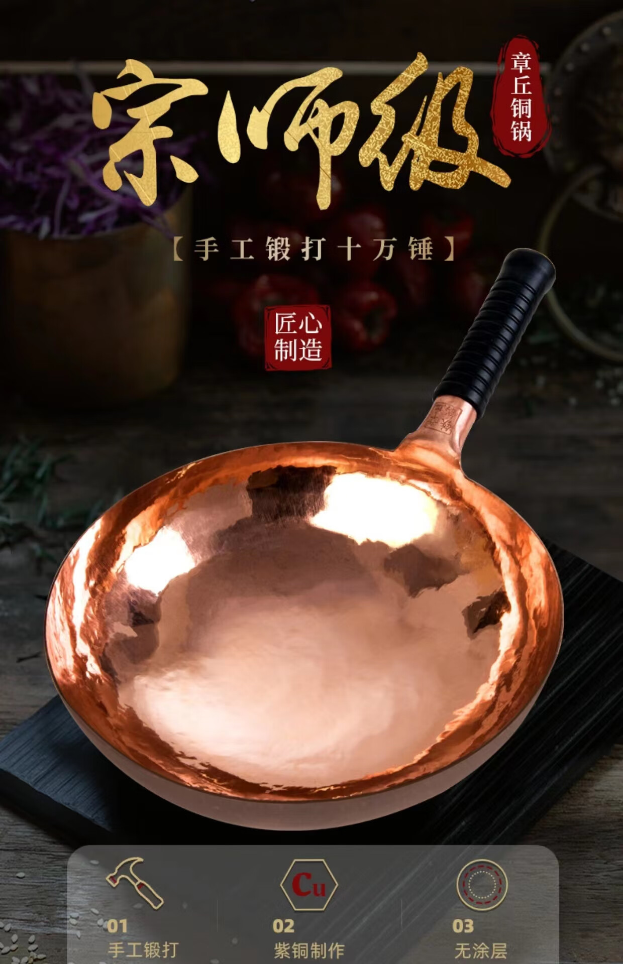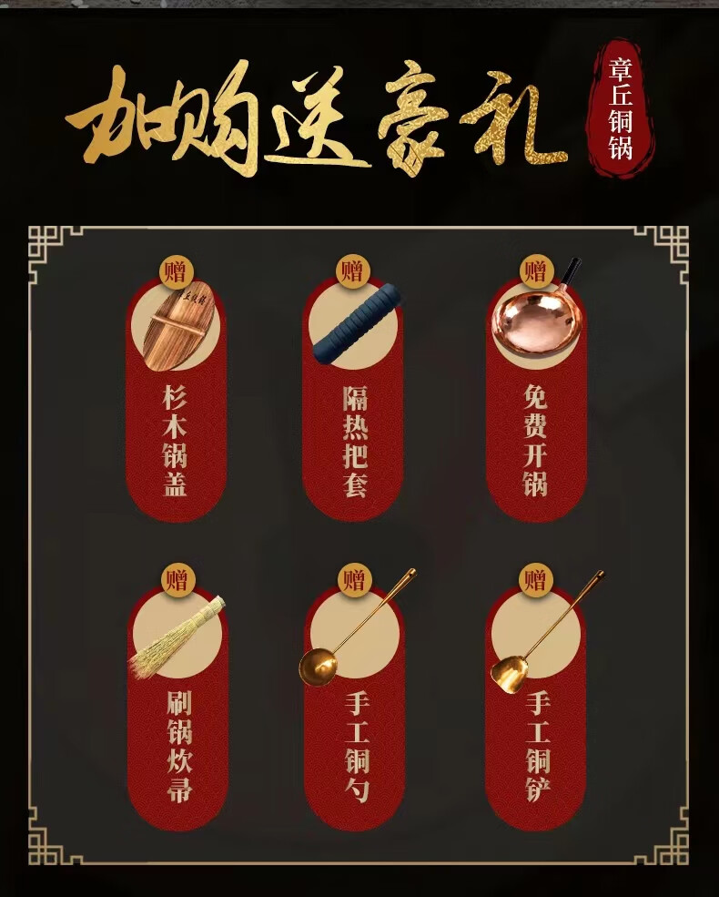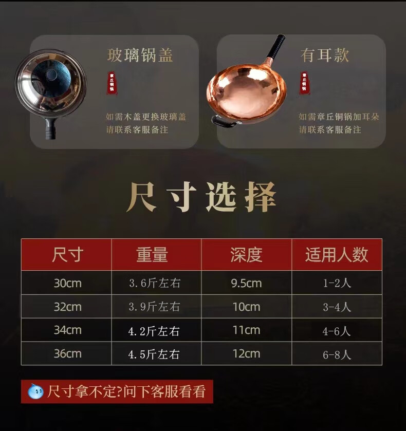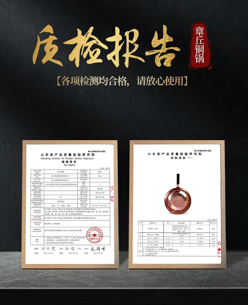 山东正宗章丘铜锅手工锻打紫铜锅炒锅炒菜锅无涂层不粘锅手工铁锅 紫铜锅36cm送铜铲铜勺木盖6-9人