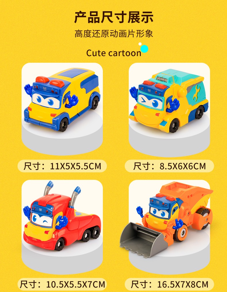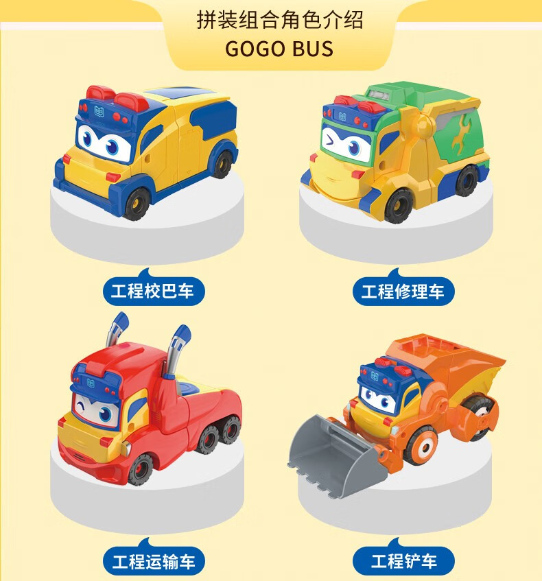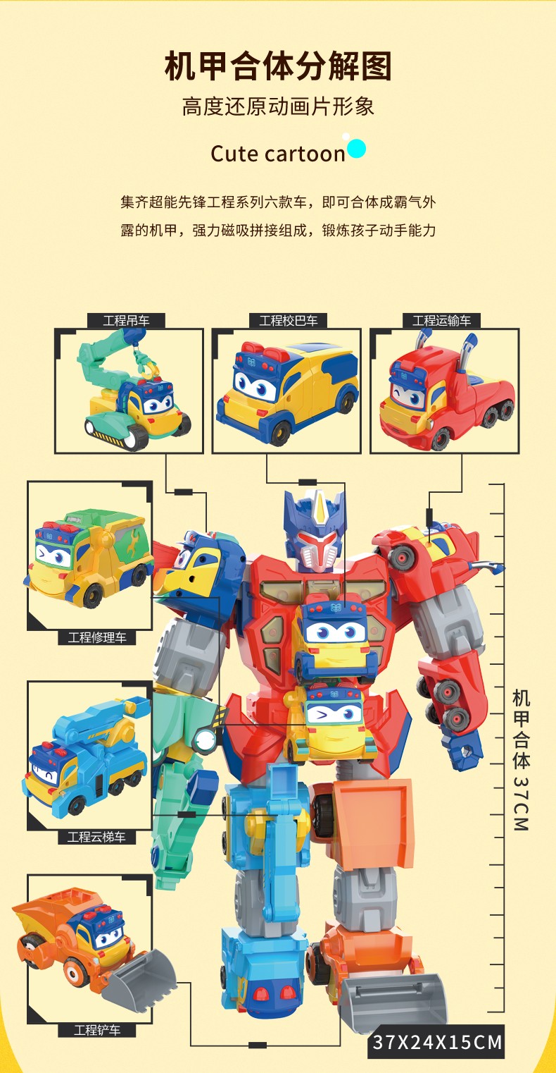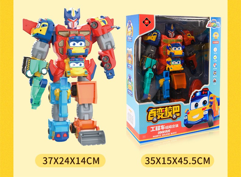 锦江百变校巴玩具工程款校巴歌德超学先锋变形汽车机器人儿童玩具男孩 7合体工程款百变校巴