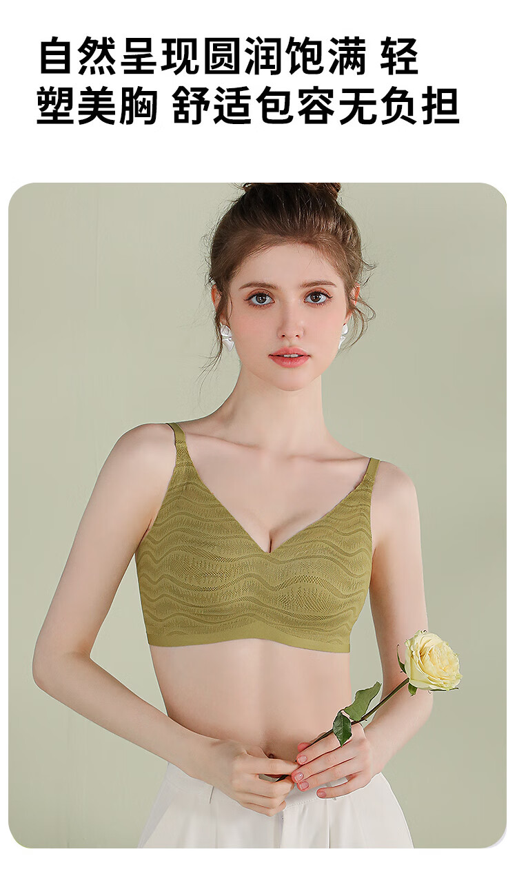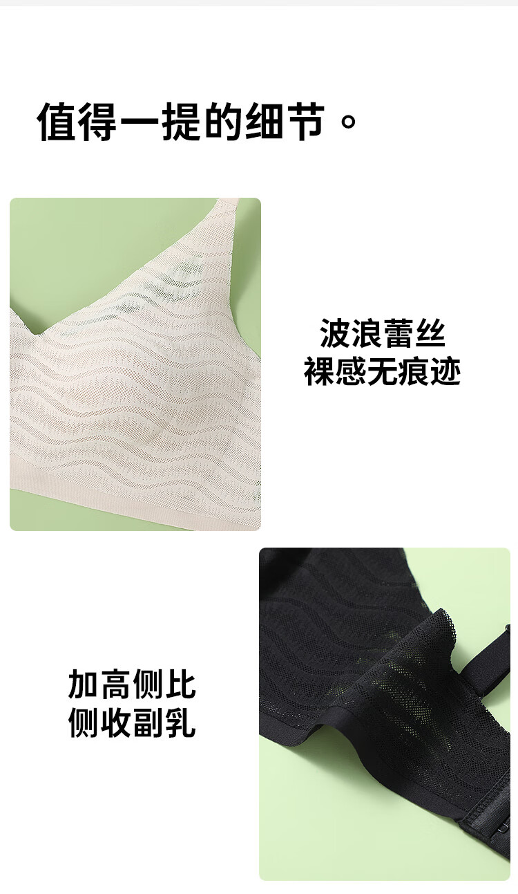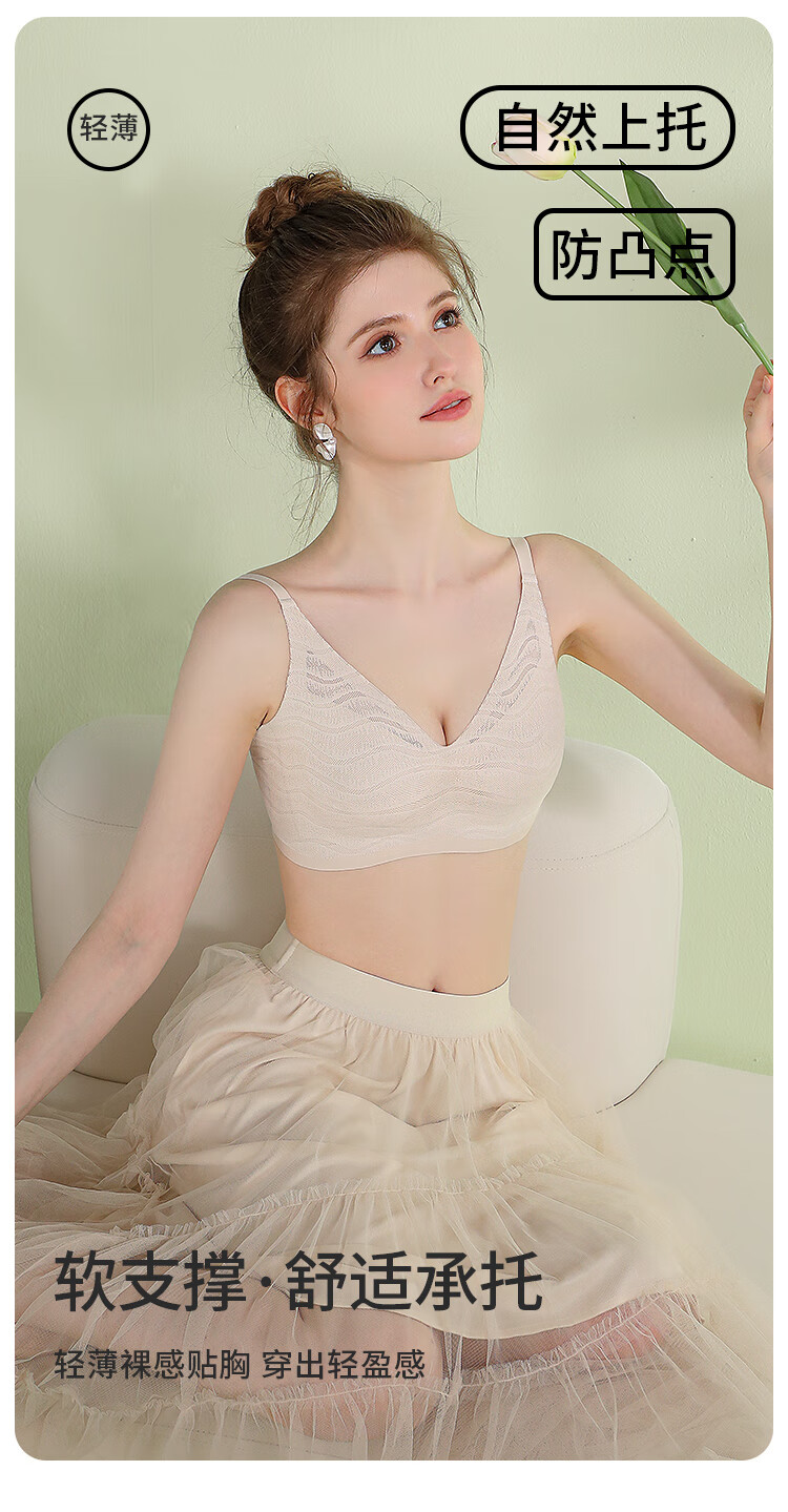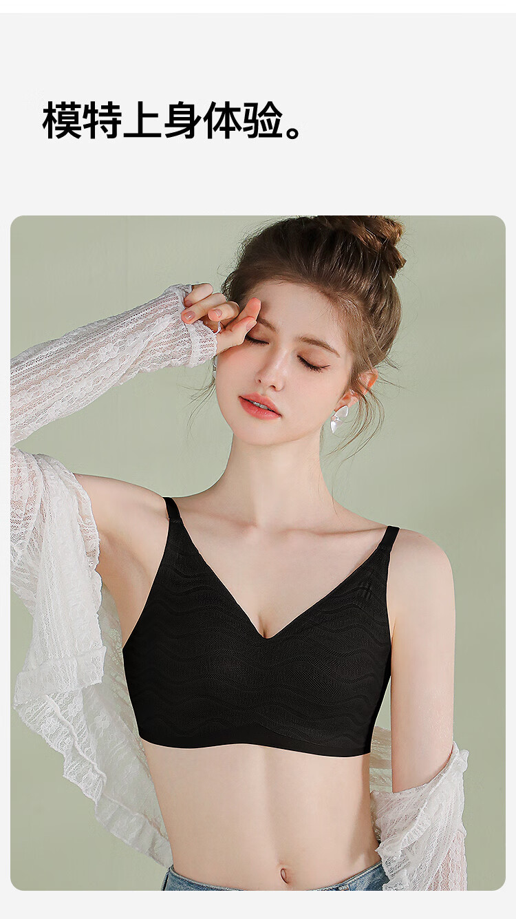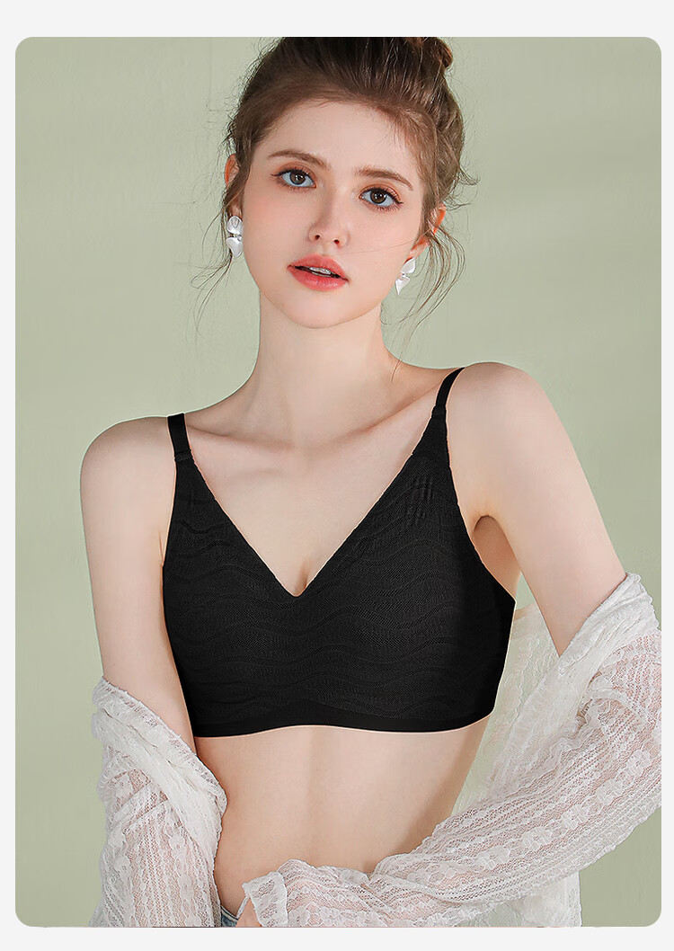 浪漫春天【波浪小圆杯】轻薄无痕内衣大胸显小防下垂收副乳无钢圈文胸罩女 黑色 80B