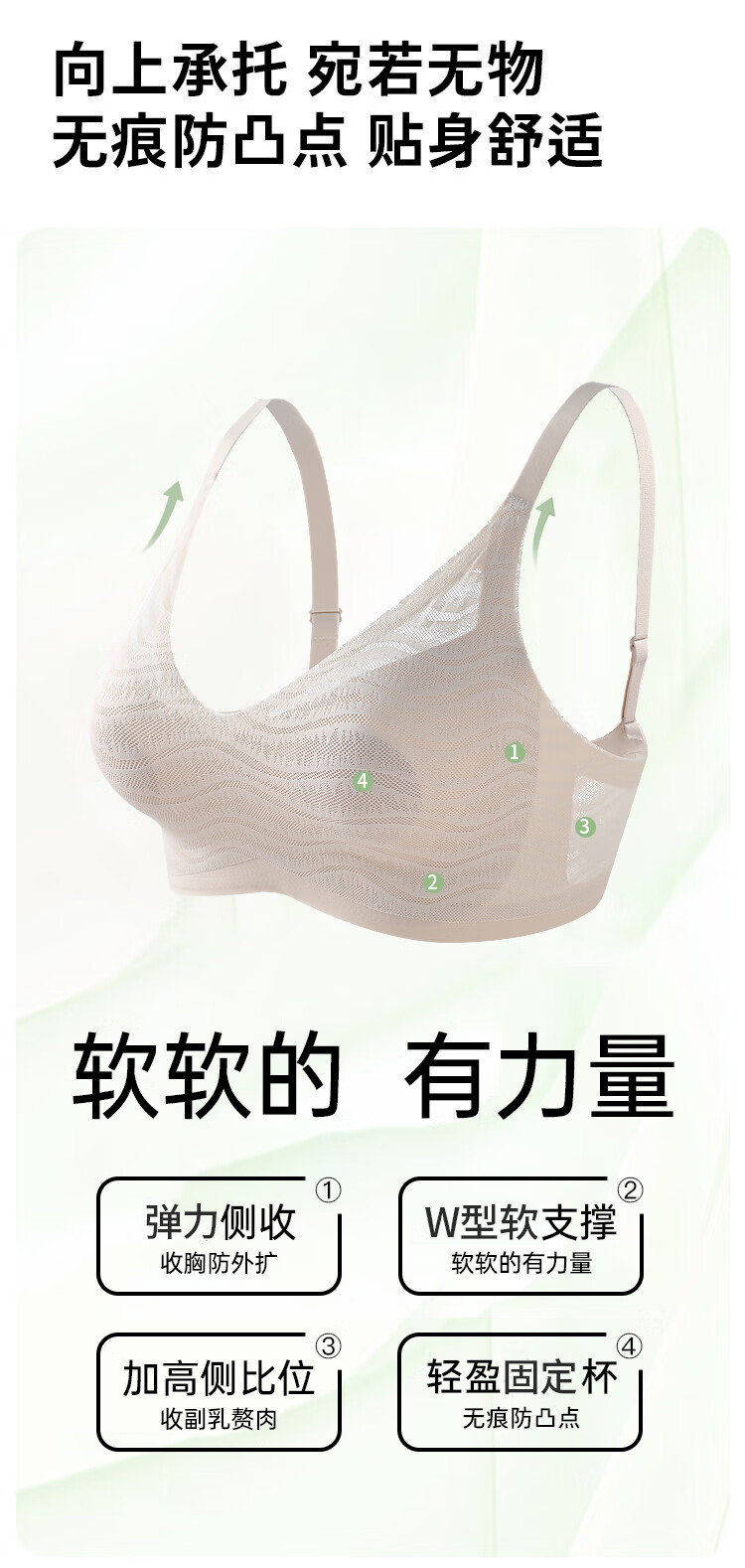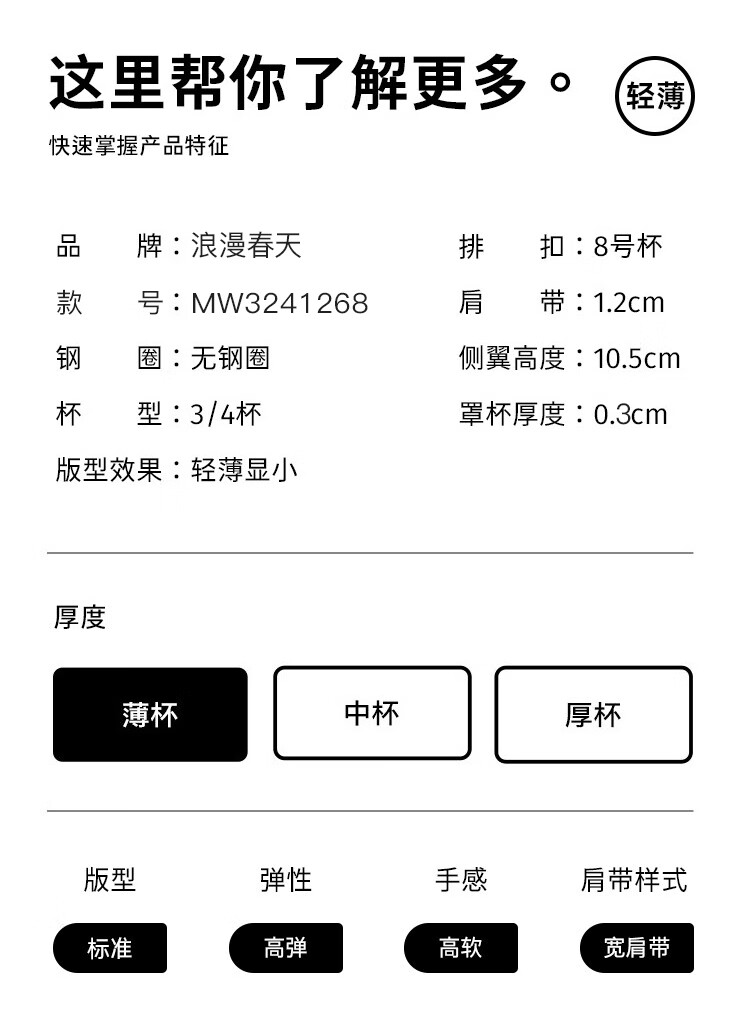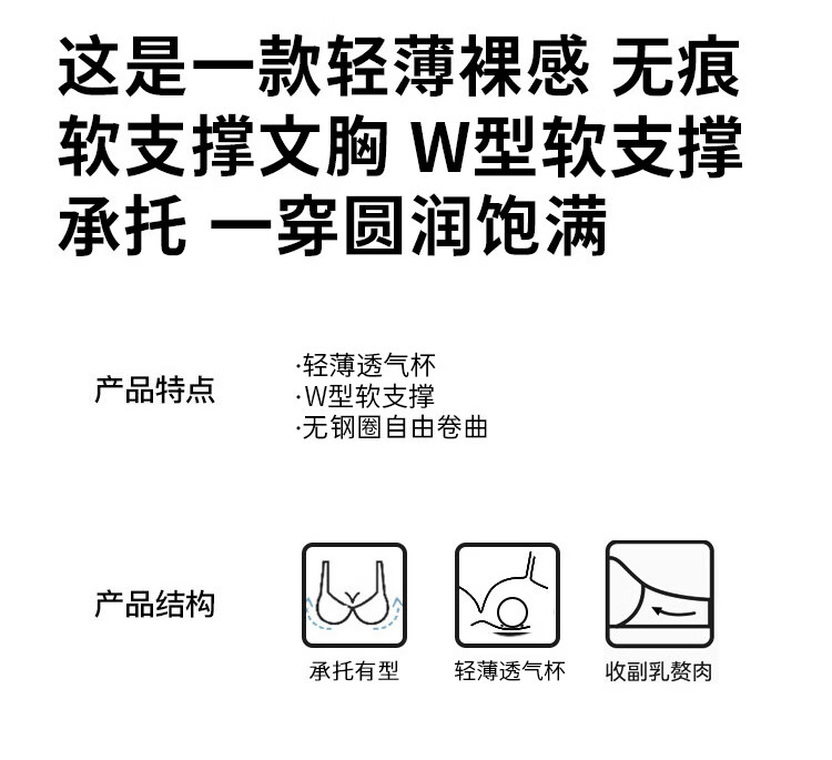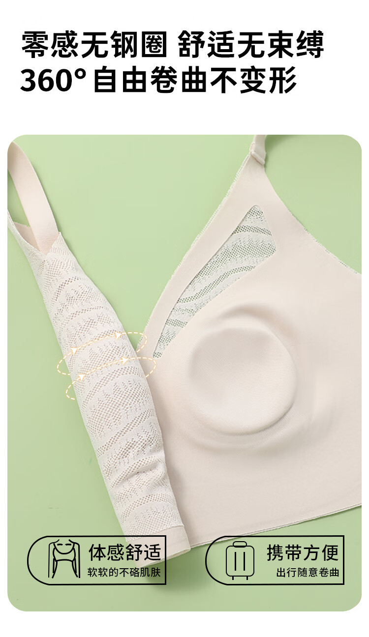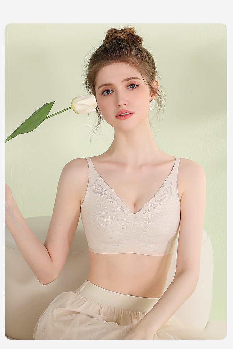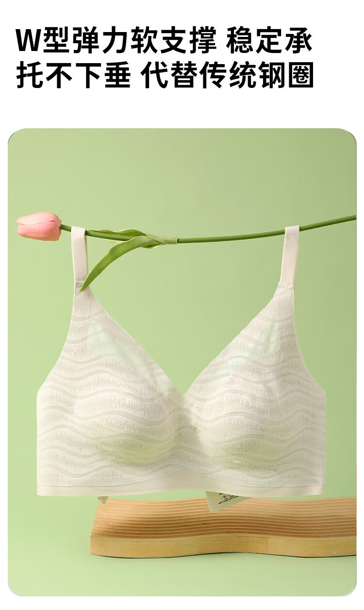 浪漫春天【波浪小圆杯】轻薄无痕内衣大胸显小防下垂收副乳无钢圈文胸罩女 黑色 80B