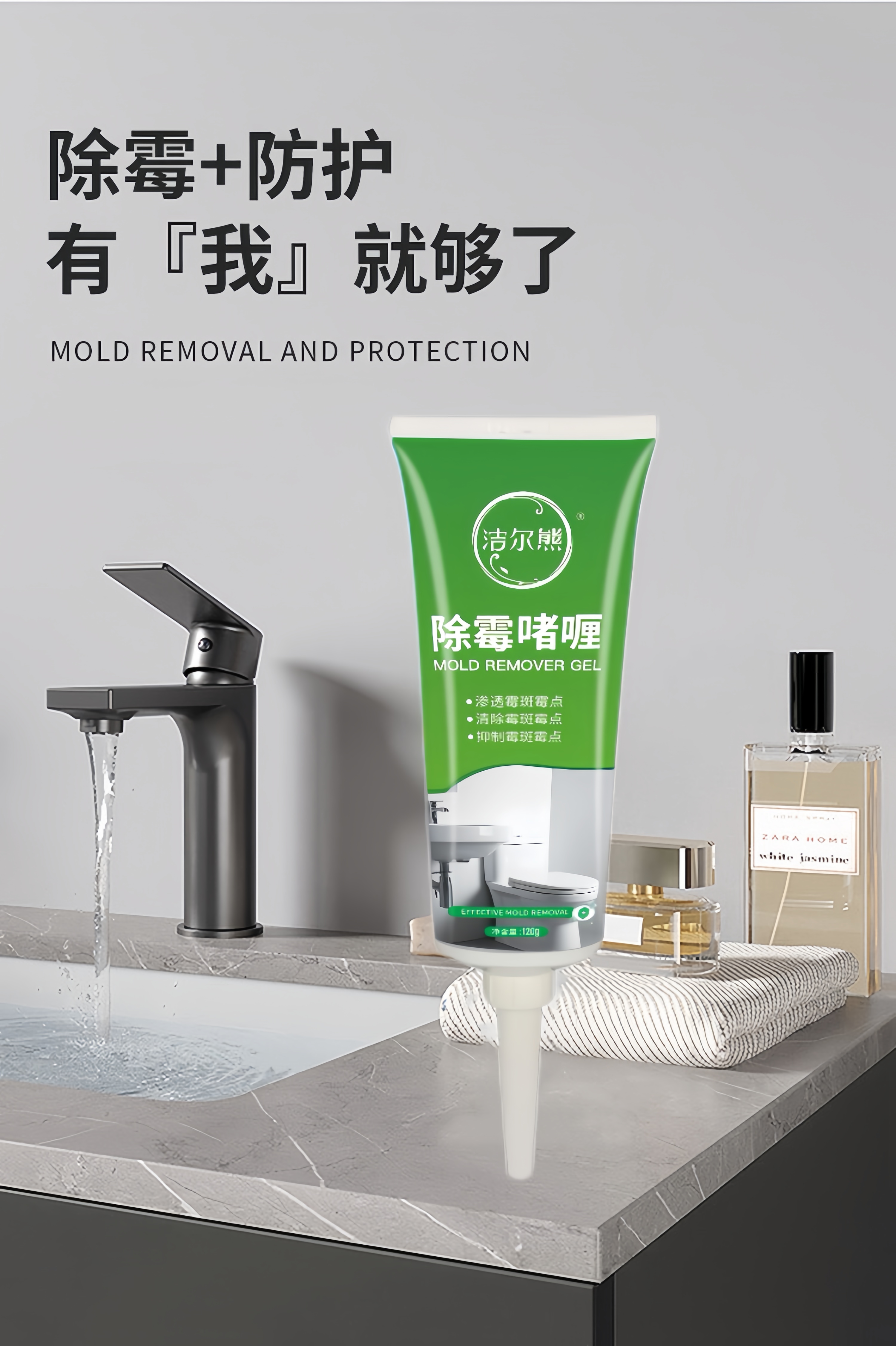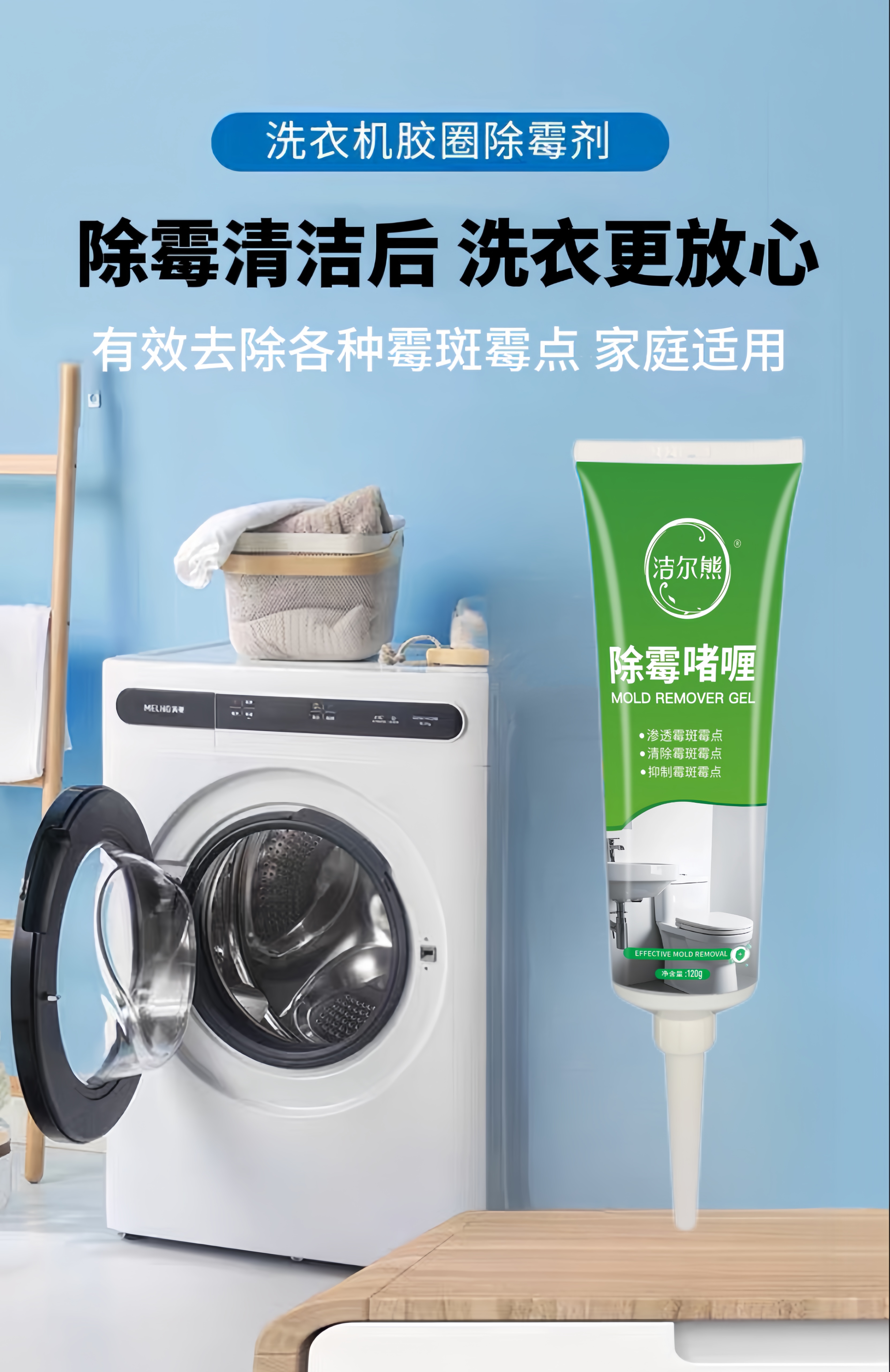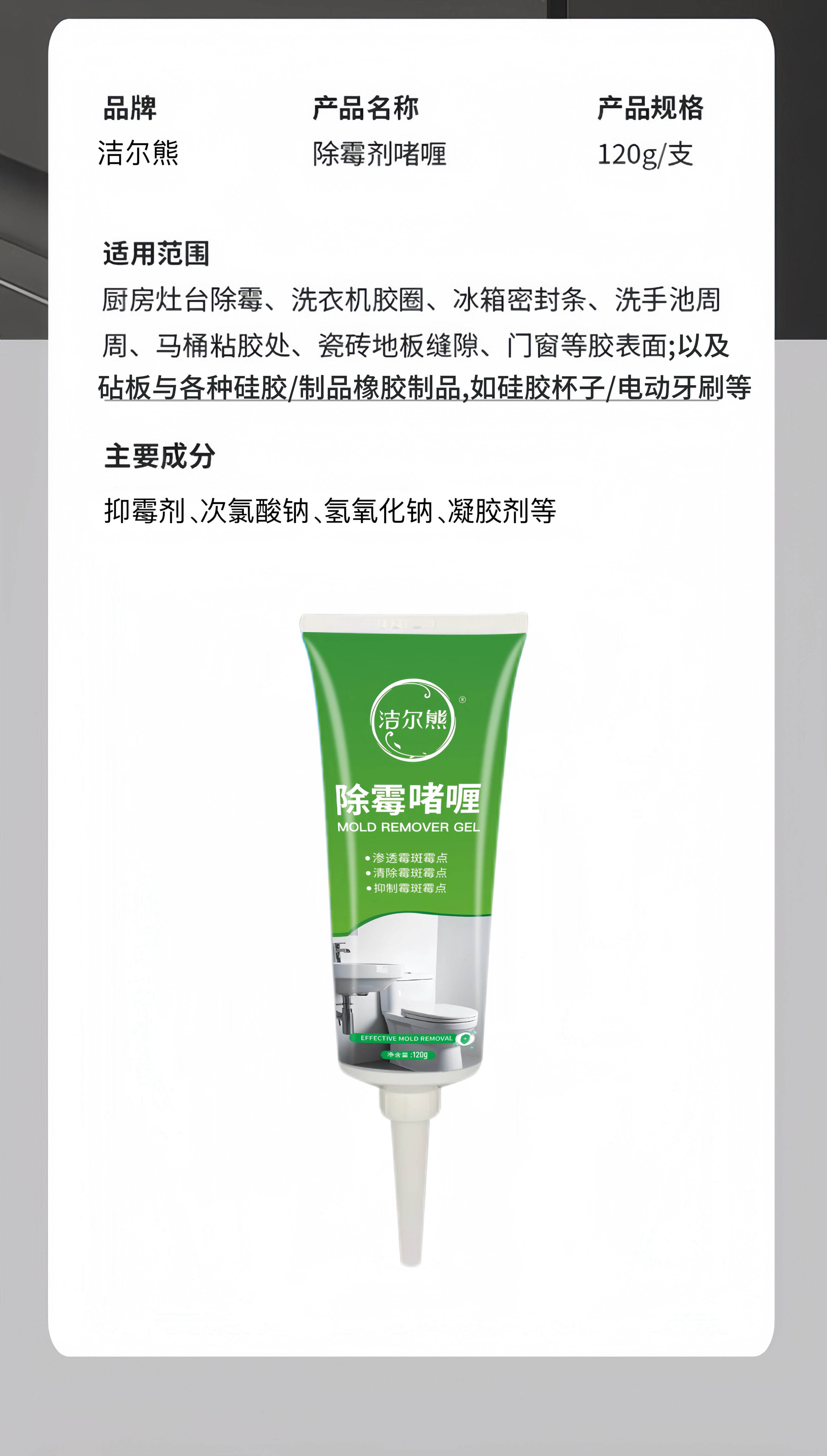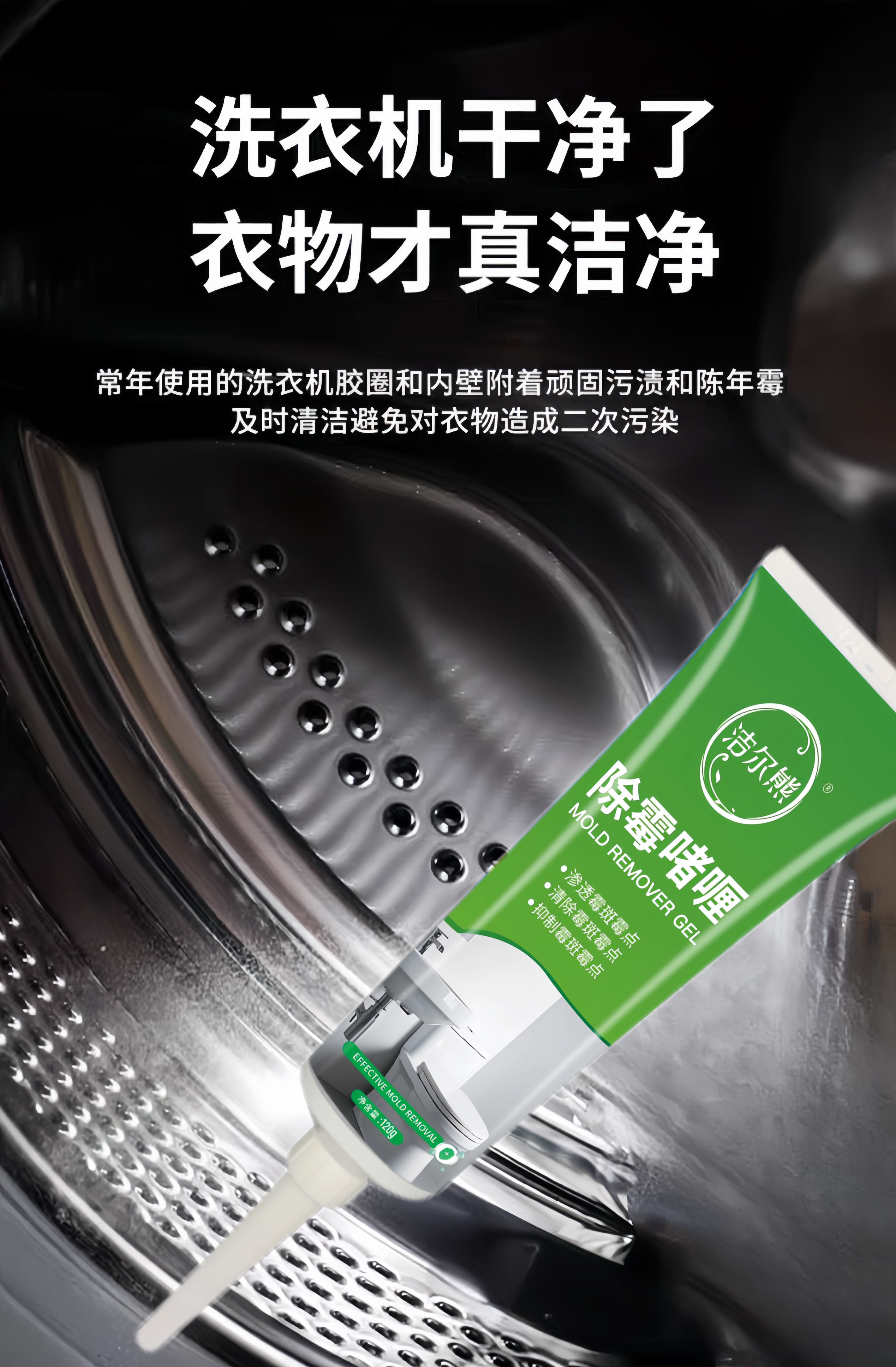 洁尔熊滚筒洗衣机胶圈除霉啫喱凹槽去霉点霉斑清洗剂冰箱密封胶条除霉剂 除霉啫喱120g*1瓶【除霉率99.9%】