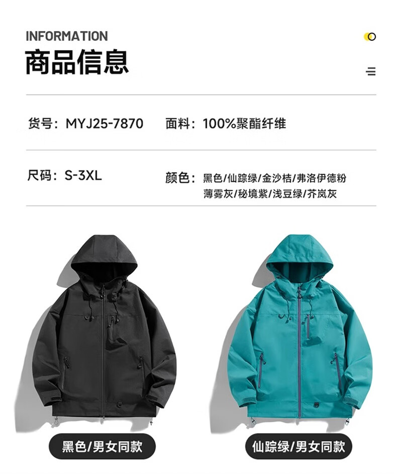JEEP SPIRIT吉普运动夹克男春秋季新款户外登山冲锋衣男女同款防风休闲外套 黑色【单衣】 L