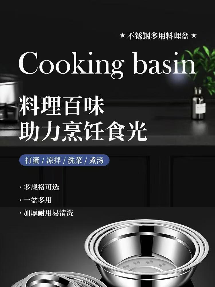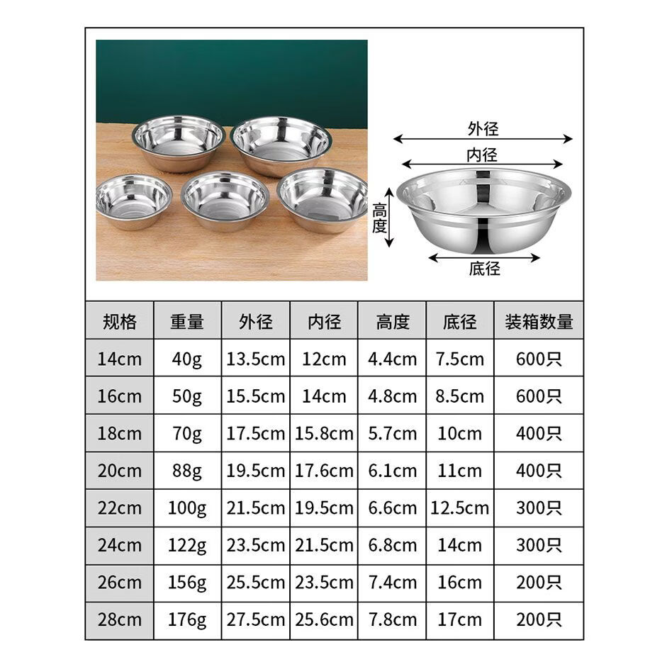 冬宴奥氏体不锈钢盆多用盆食堂汤碗家用碗饭盆碗汤盆饭盆沙拉盆调料缸 16+18+20三件套