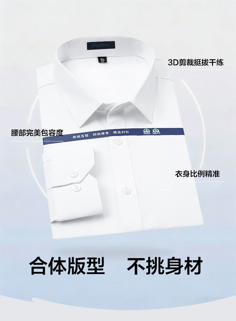 SHANSHAN杉杉长袖衬衫男棉商务休闲两用挺括有型日常衬衣高级感职业正装 蓝色 39 /170/88A