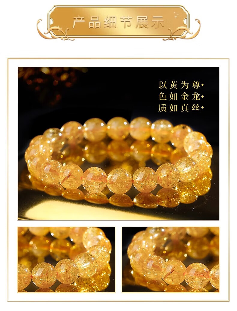 洛希曼收藏级天然巴西金发晶手链高端手串男女同款生日礼物送女友老婆 【珍藏级】8mm金发晶+证书