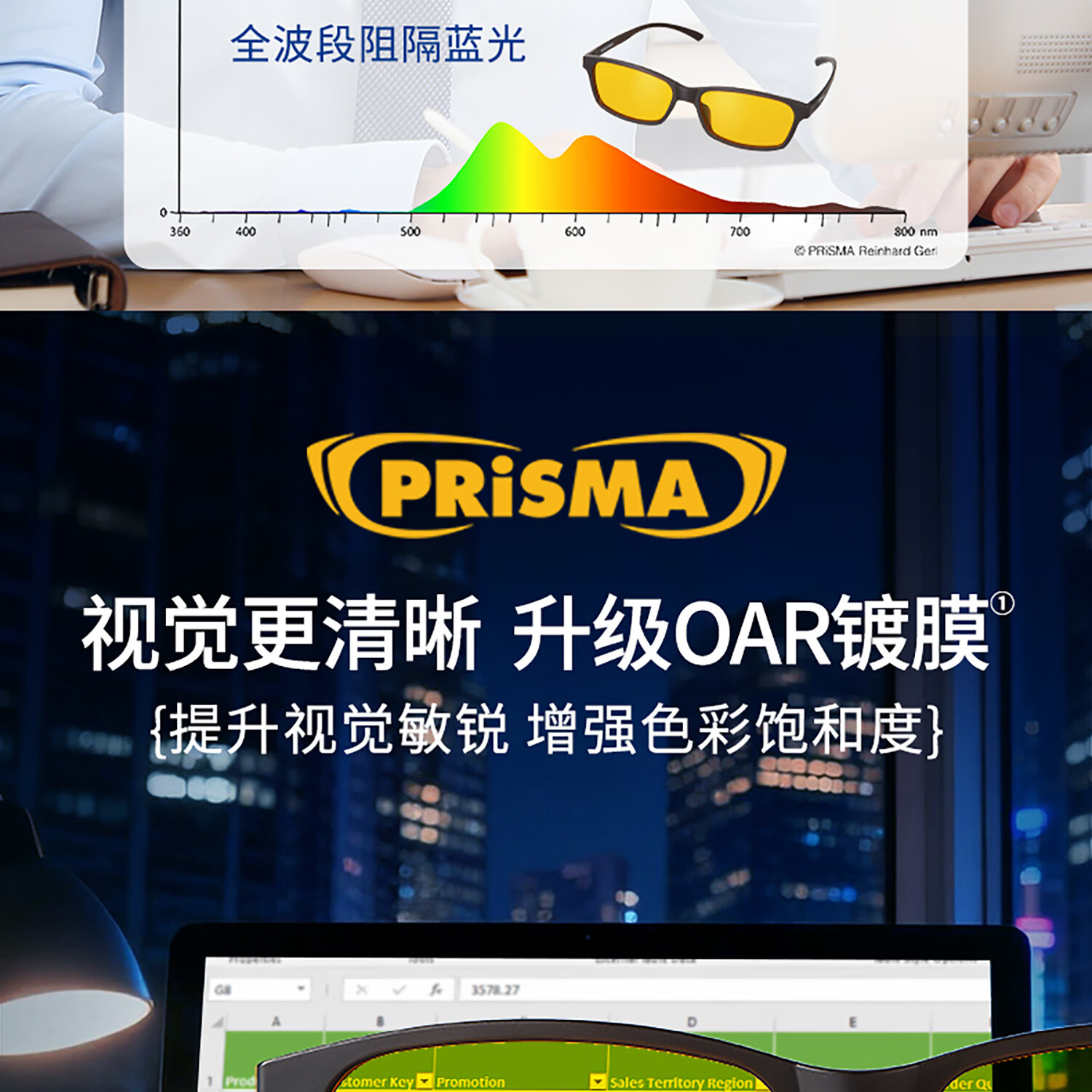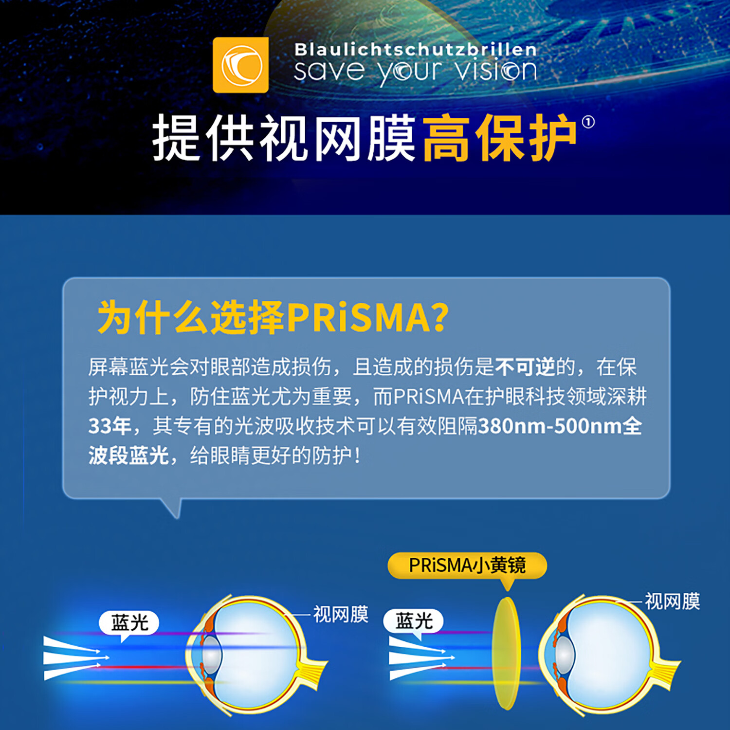prisma普利索德国品牌防蓝光防辐射眼镜抗疲劳平光镜蓝光阻隔99%护目镜 95%防蓝光【多数人的选择】FN704 全波段(380~500nm)阻隔蓝光