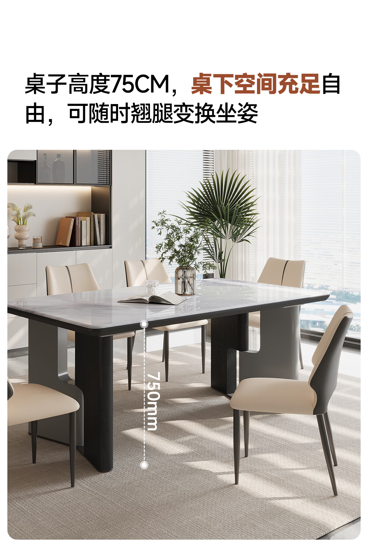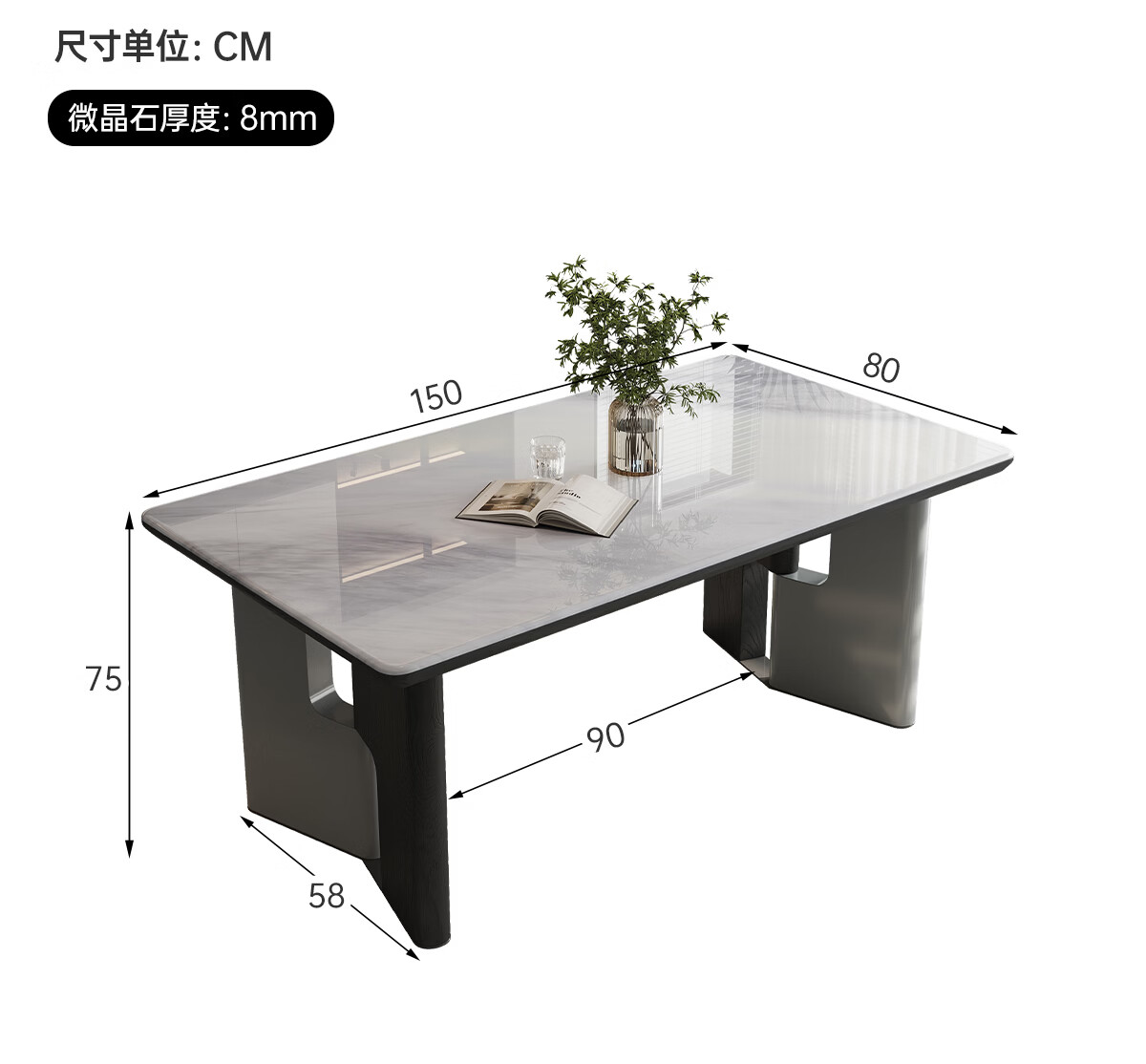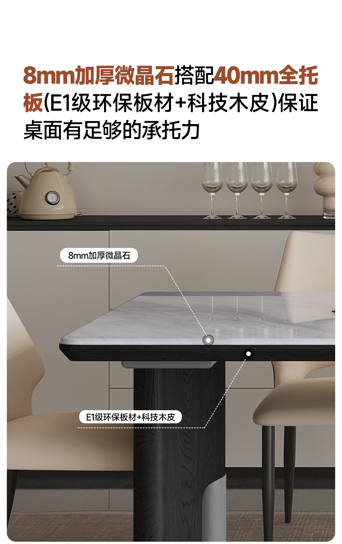 帕沙曼微晶石全托餐桌椅组合轻奢现代简约新款家用小户型长形饭桌 6119Y 【8mm微晶石+全托底板】单餐桌 150cm *80cm*75cm