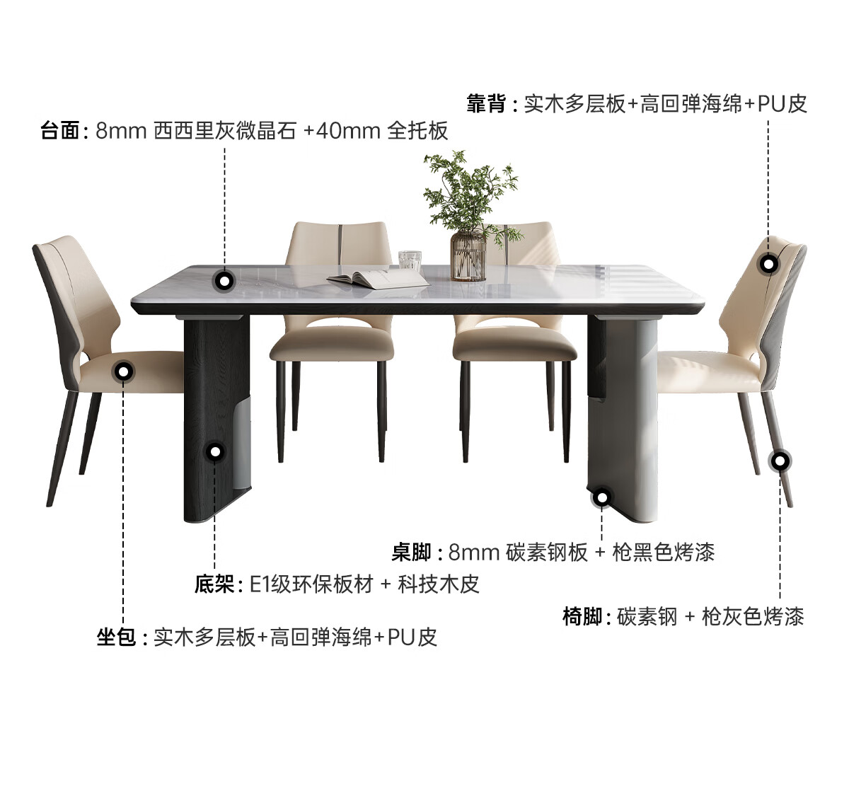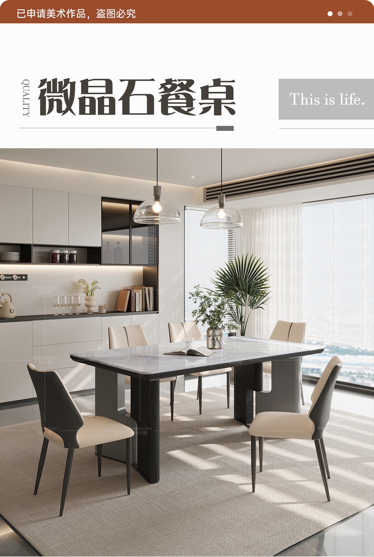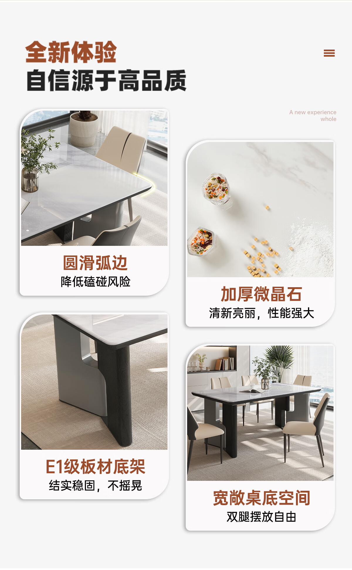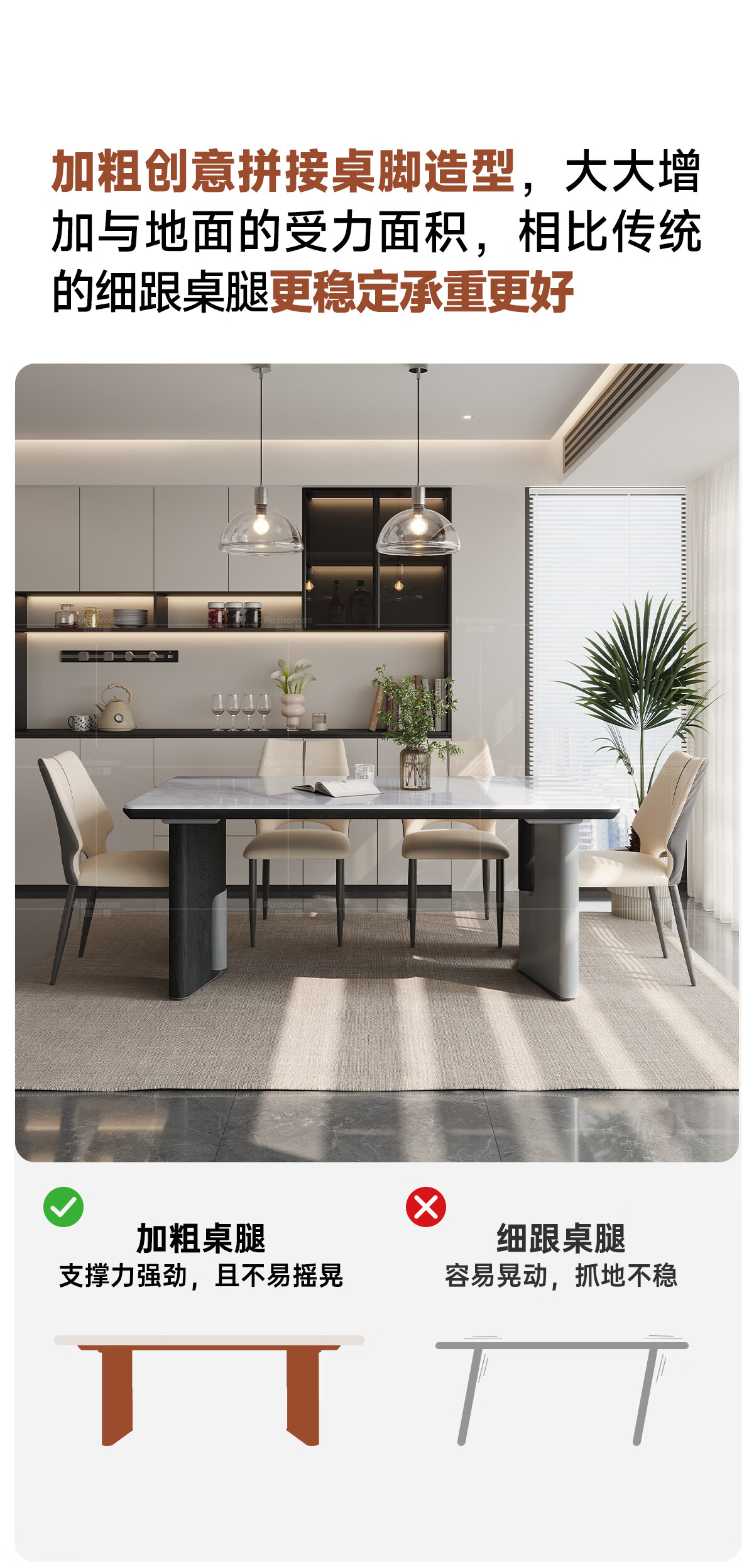 帕沙曼微晶石全托餐桌椅组合轻奢现代简约新款家用小户型长形饭桌 6119Y 【8mm微晶石+全托底板】单餐桌 150cm *80cm*75cm