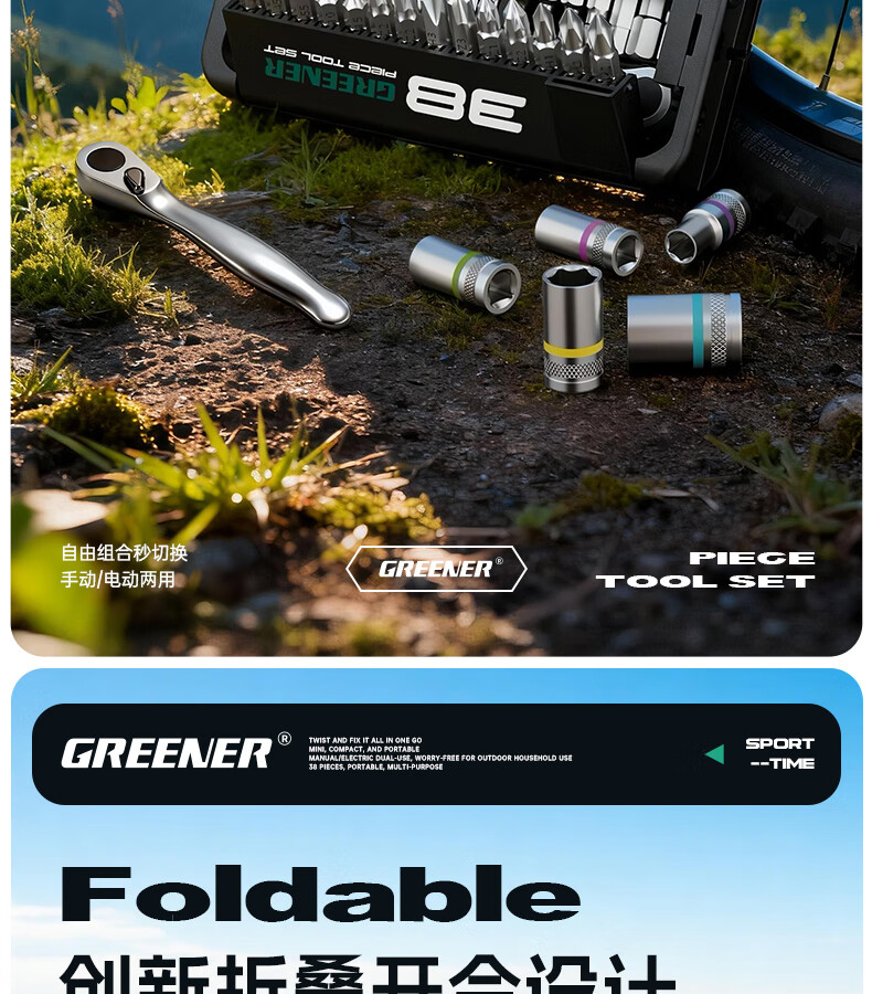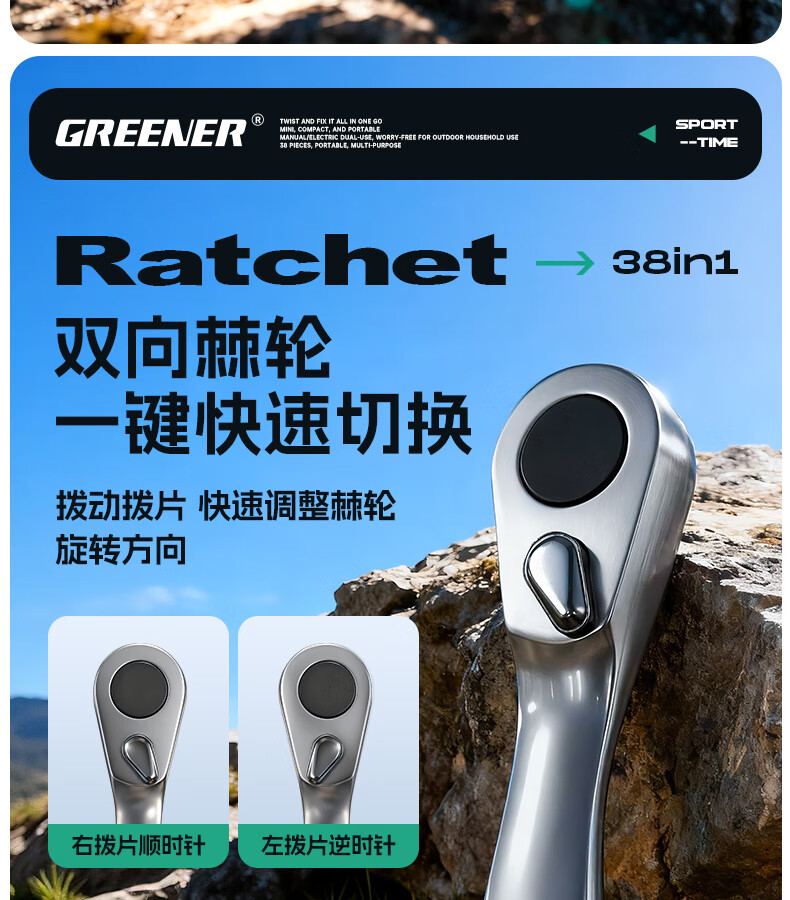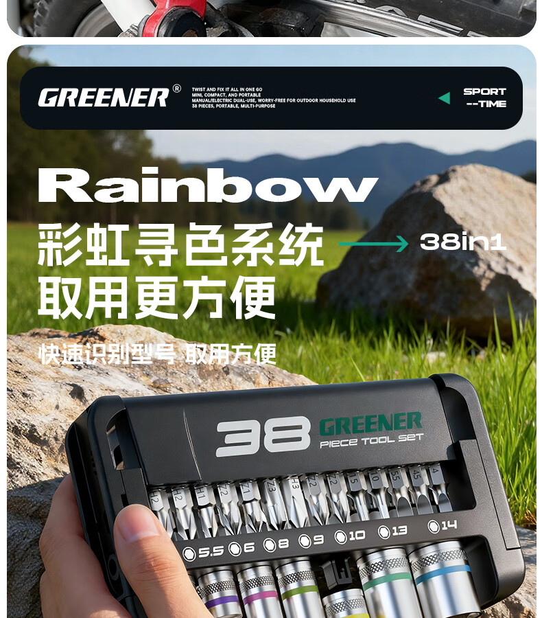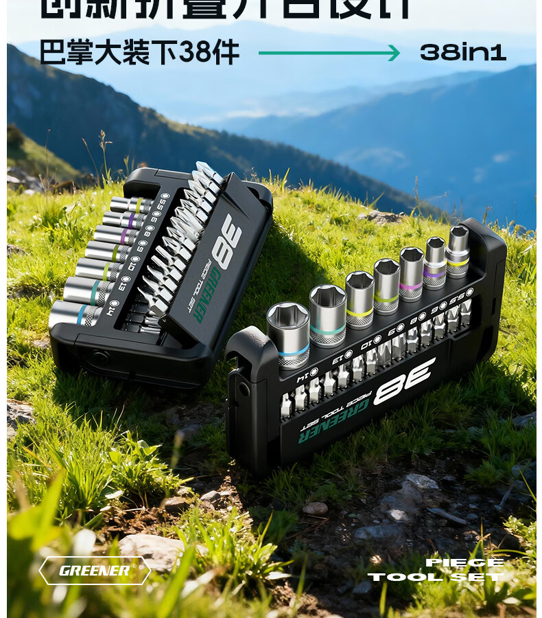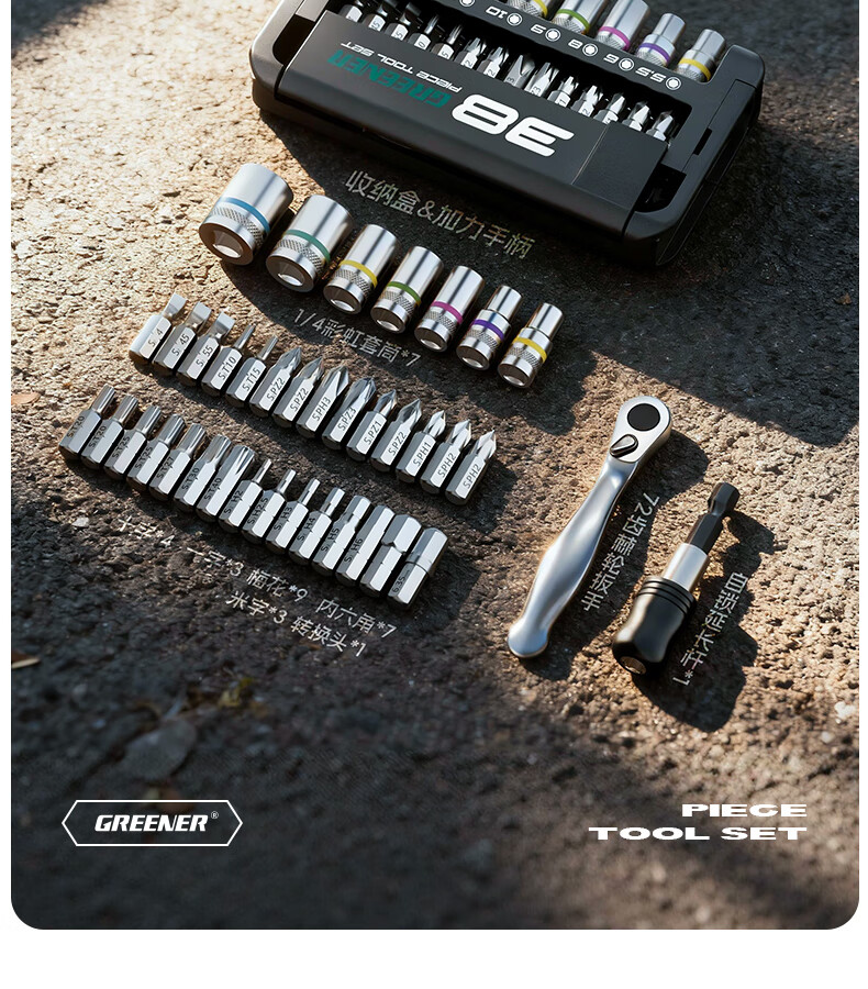 绿林(GREENER)棘轮扳手工业级小飞快速套筒扳手六角梅花弯头螺丝刀工具套装 【双仓折叠王】38合一棘轮螺丝刀(批头+彩虹套筒)