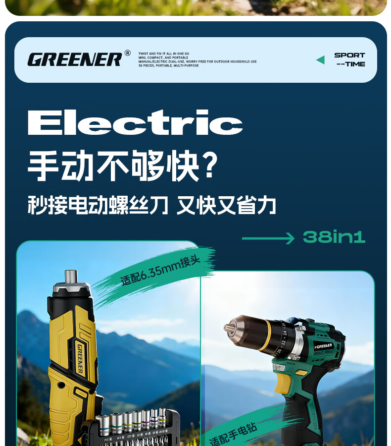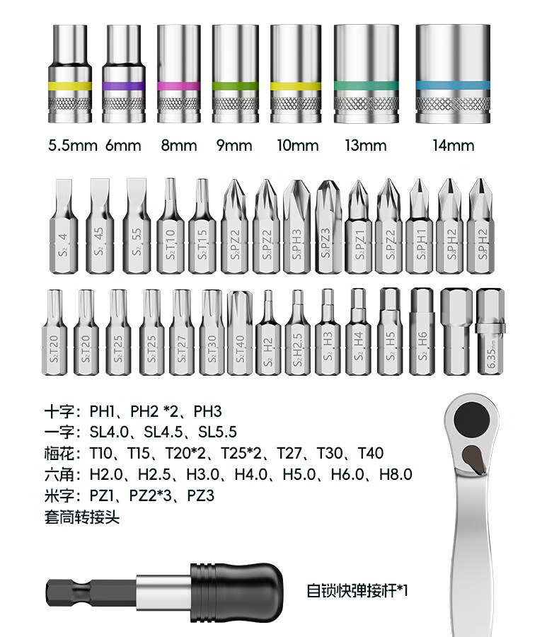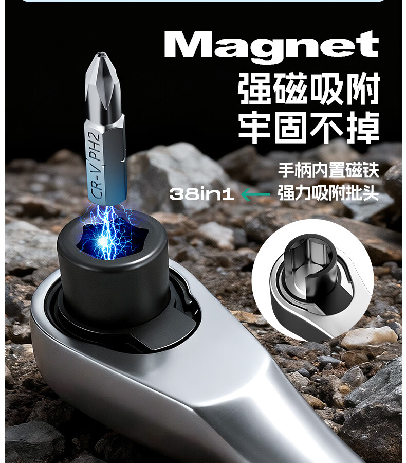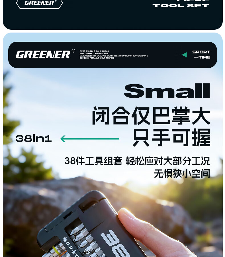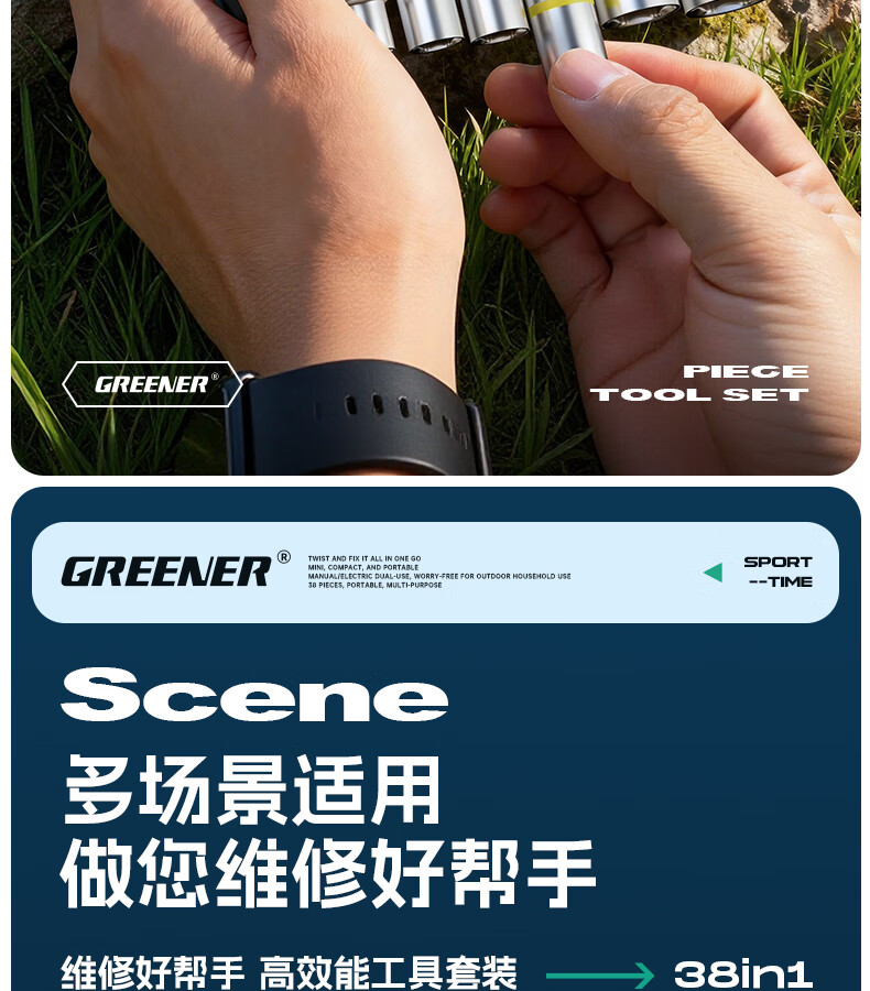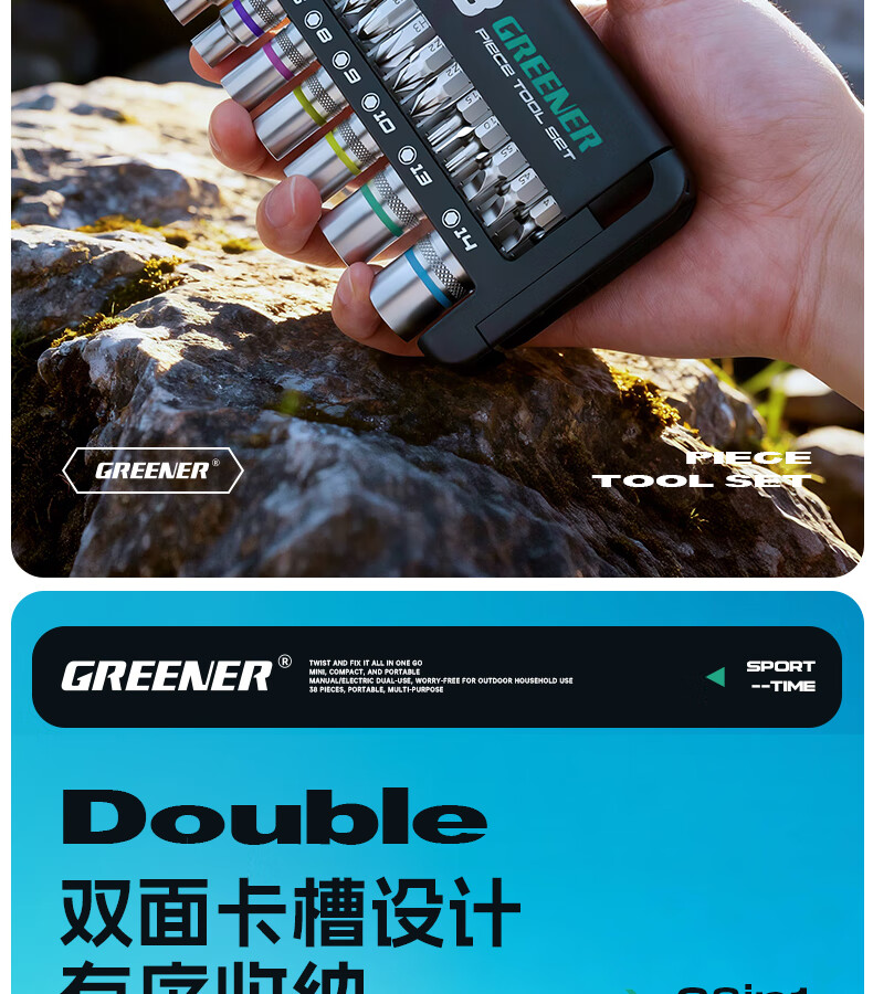 绿林(GREENER)棘轮扳手工业级小飞快速套筒扳手六角梅花弯头螺丝刀工具套装 【双仓折叠王】38合一棘轮螺丝刀(批头+彩虹套筒)
