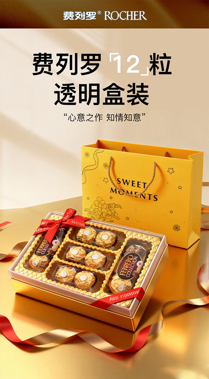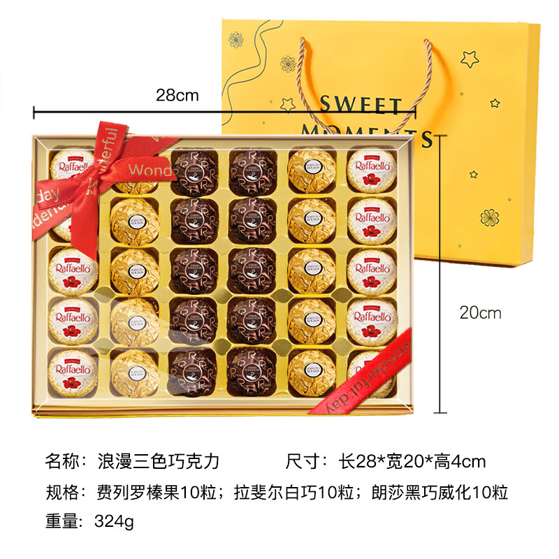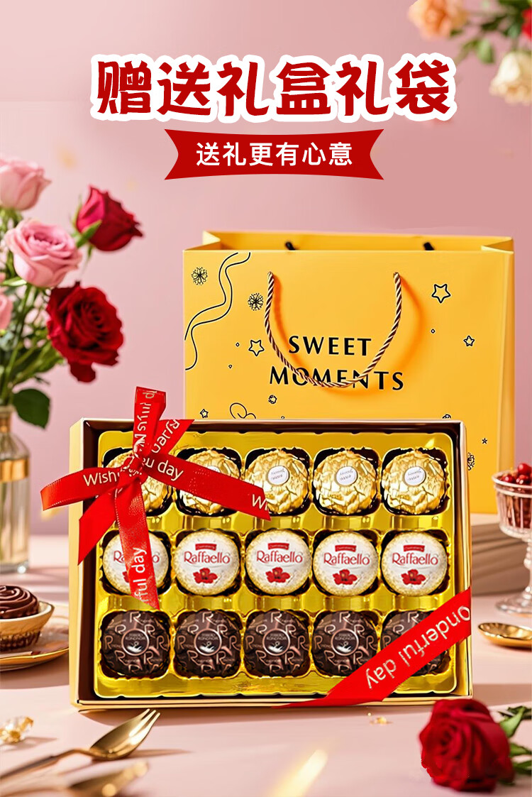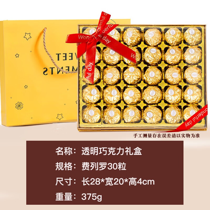 费列罗巧克力礼盒 三八女神女王节礼物礼盒 生日礼物送女朋友老婆生日 费列罗28粒礼盒装329.6g送礼袋