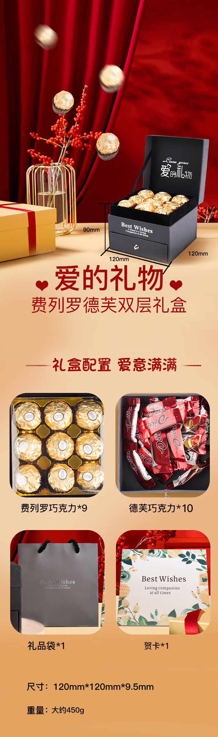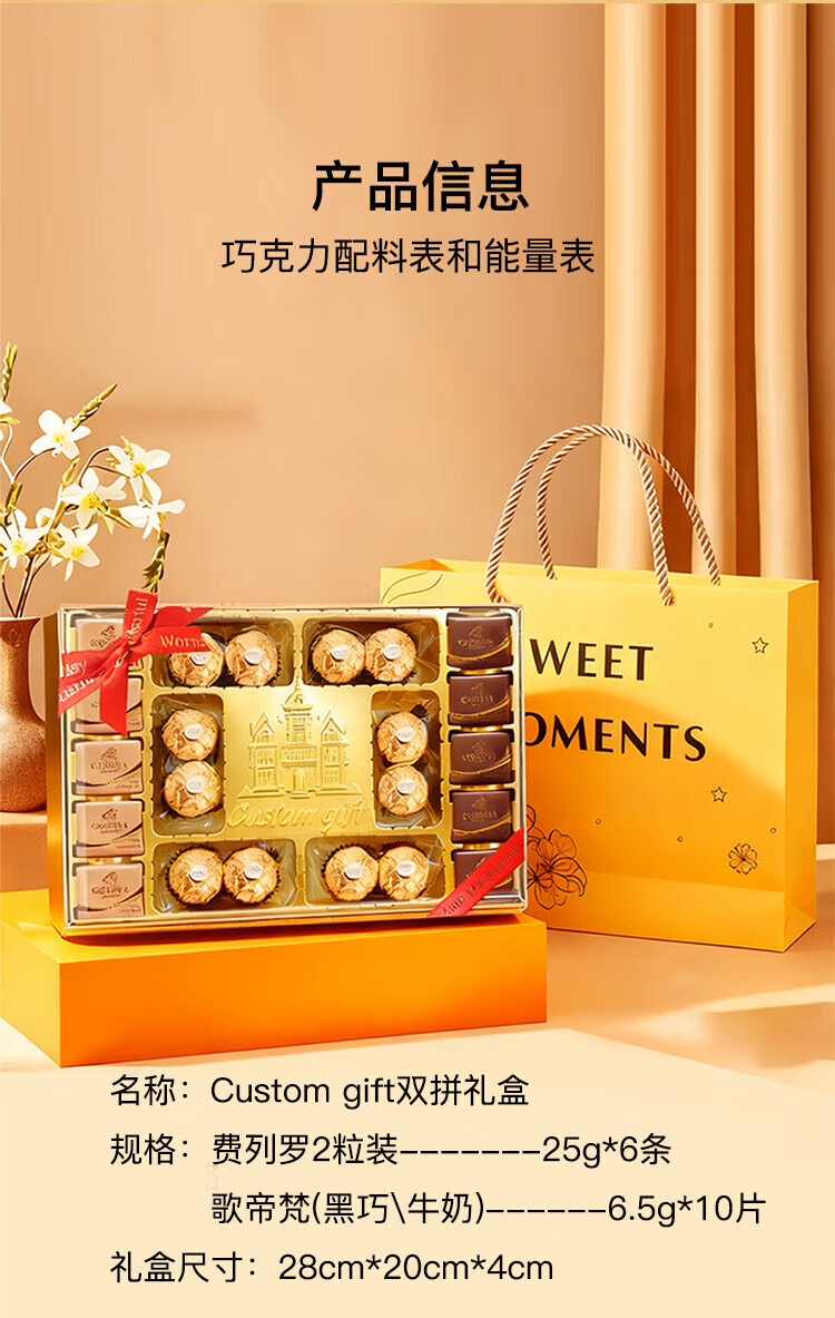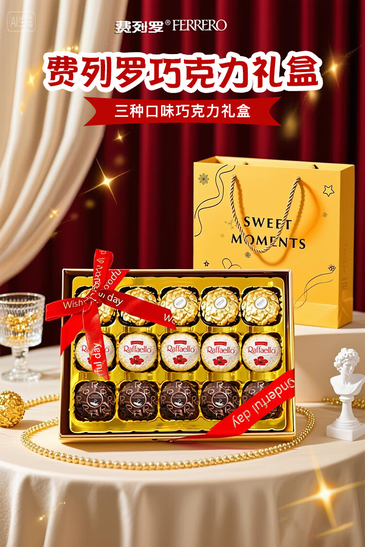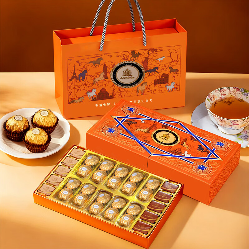 费列罗巧克力礼盒 三八女神女王节礼物礼盒 生日礼物送女朋友老婆生日 费列罗28粒礼盒装329.6g送礼袋