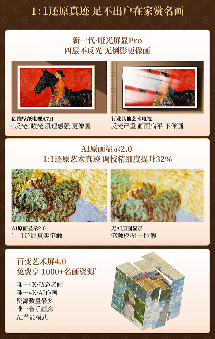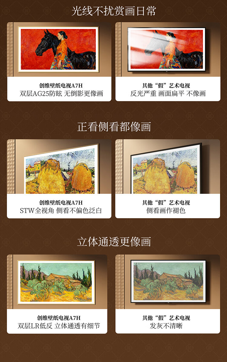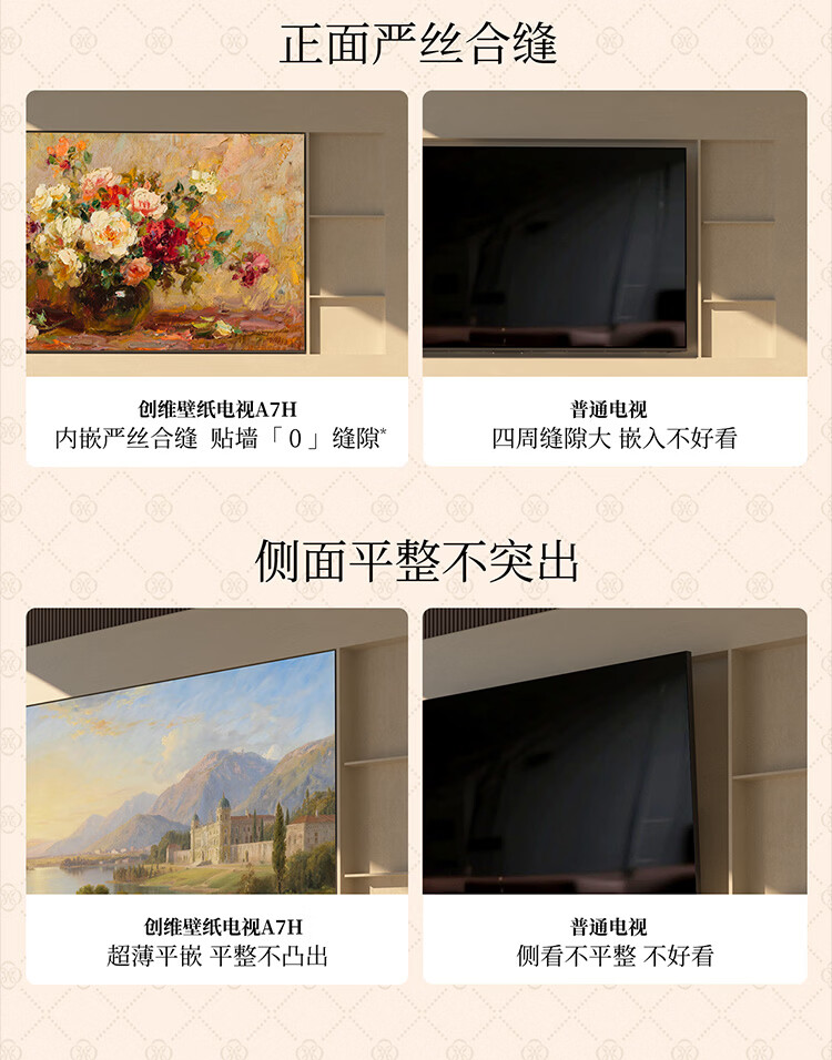 创维电视75A7H 75英寸艺术壁纸电视Mini LED 3.9cm超薄无缝贴墙 四重不反光屏 平板电视 家电国家补贴 75英寸 咨询客服享好礼