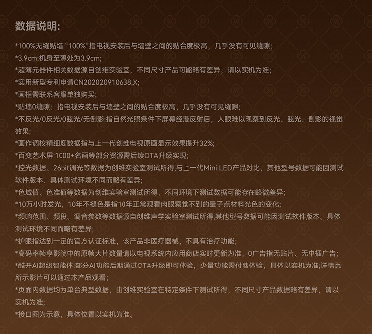 创维电视85A7H 85英寸【送装一体-伸缩挂架】艺术壁纸电视Mini LED3.9cm超薄平板电视机 家电国家补贴