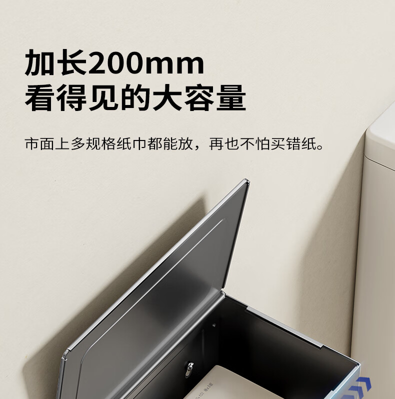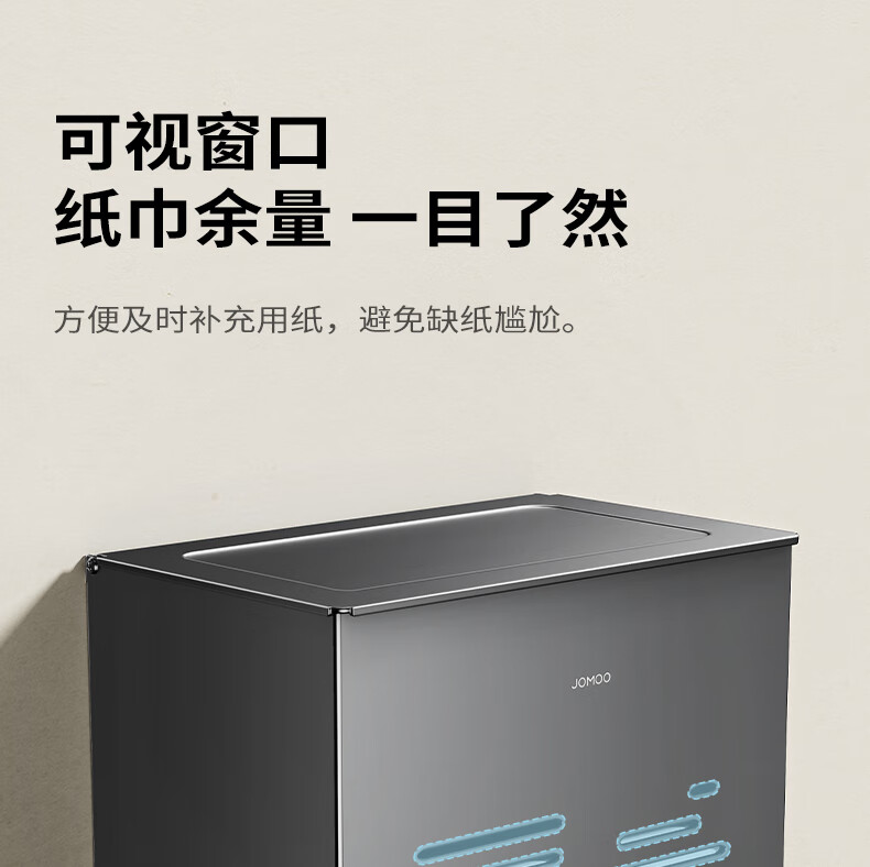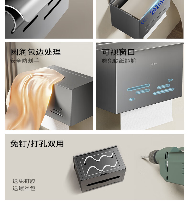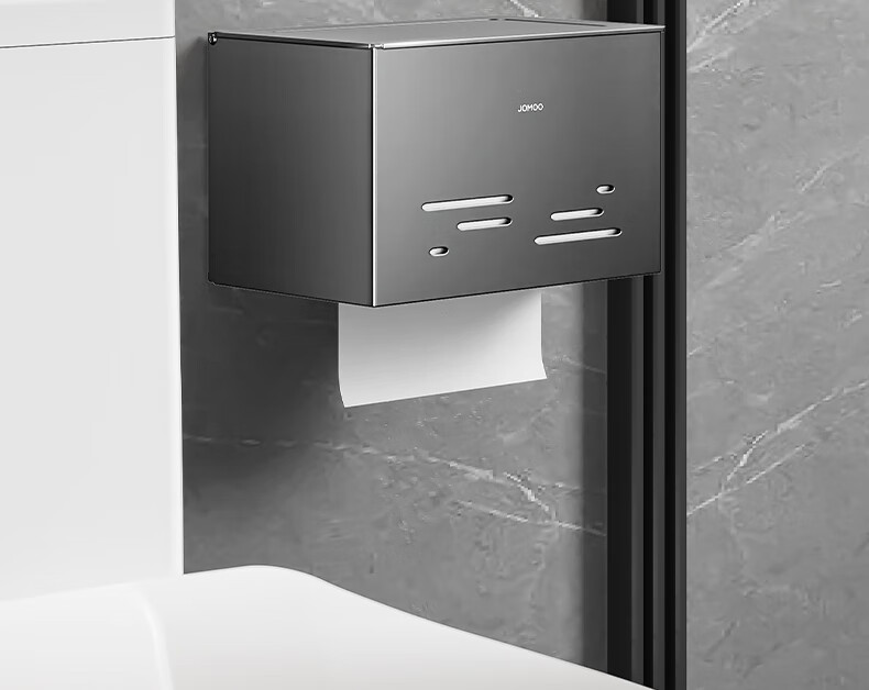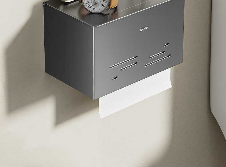 九牧(JOMOO)卫生间枪灰色可视化大容量防水防锈壁挂加长可置物纸巾盒免钉安装 上翻盖置物纸巾盒9301207
