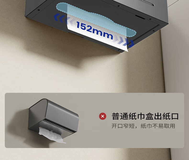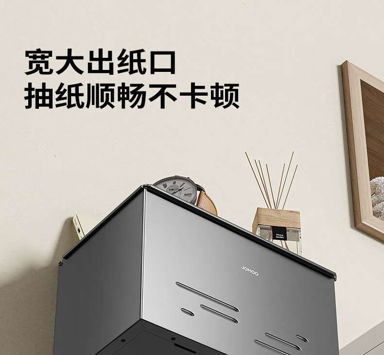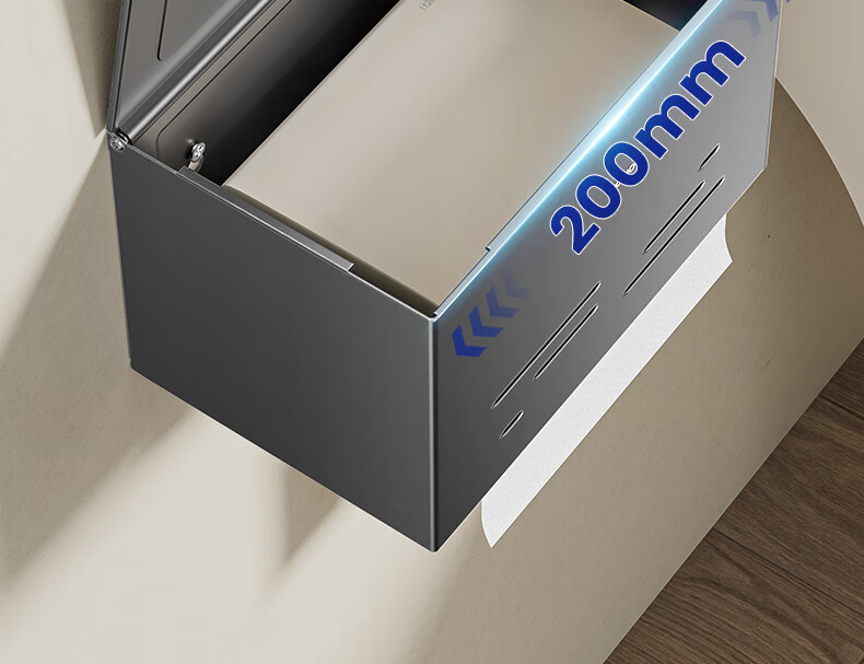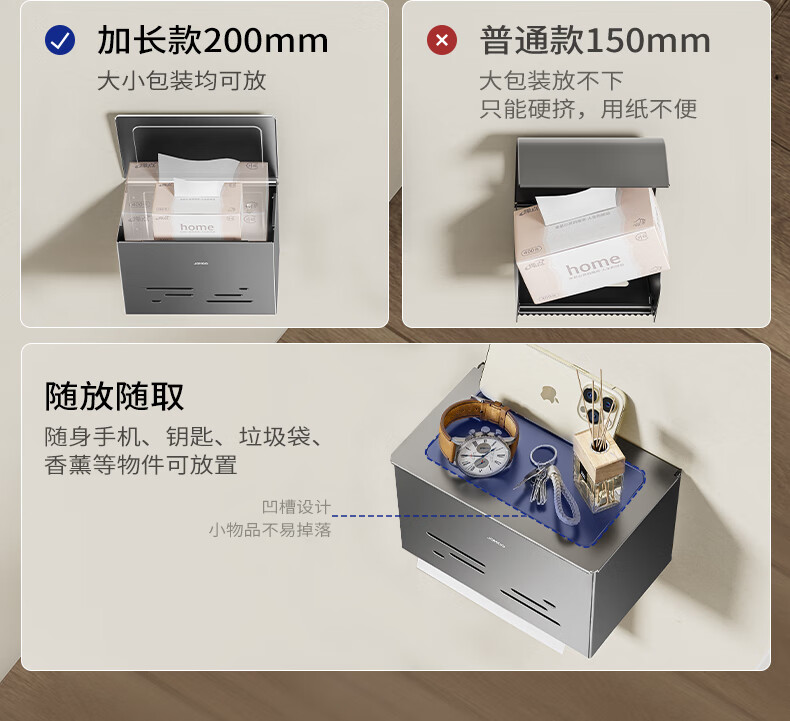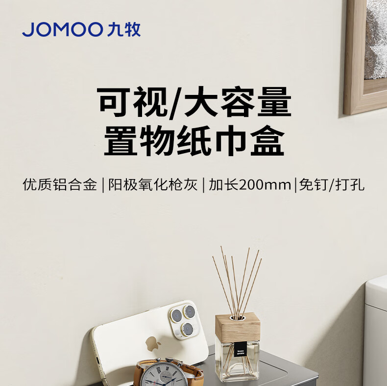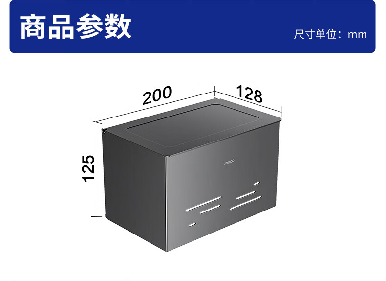 九牧(JOMOO)卫生间枪灰色可视化大容量防水防锈壁挂加长可置物纸巾盒免钉安装 上翻盖置物纸巾盒9301207