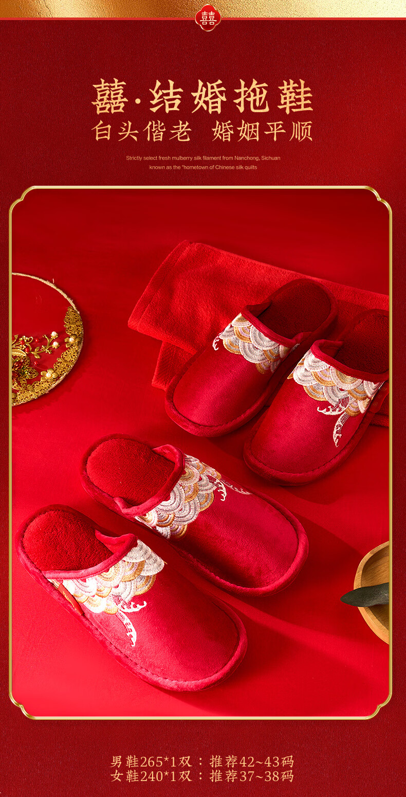 水星家纺结婚抱枕办公室午睡沙发床头卡通靠垫 大红婚庆刺绣靠垫【专享】 婚庆抱枕-刺绣新娘单只45×45cm