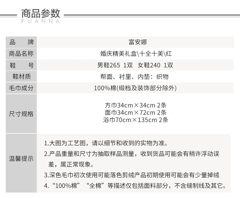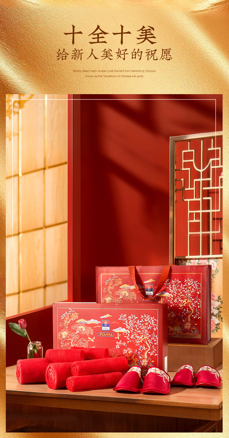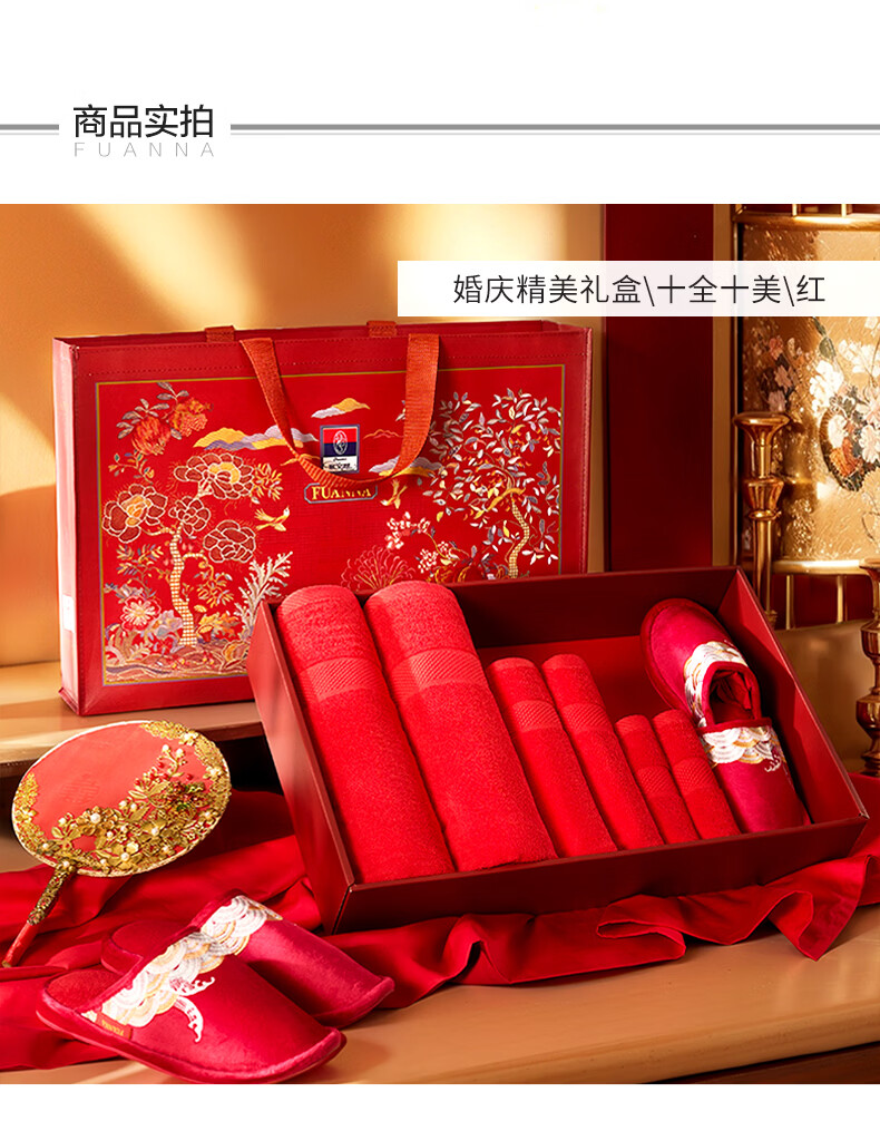富安娜家纺 婚庆礼盒新娘陪嫁套装 高档结婚伴手礼十全十美 【礼盒装】十全十美