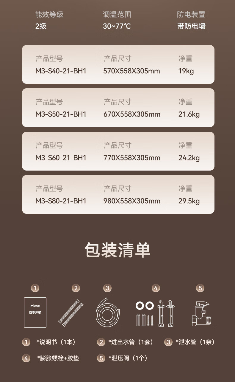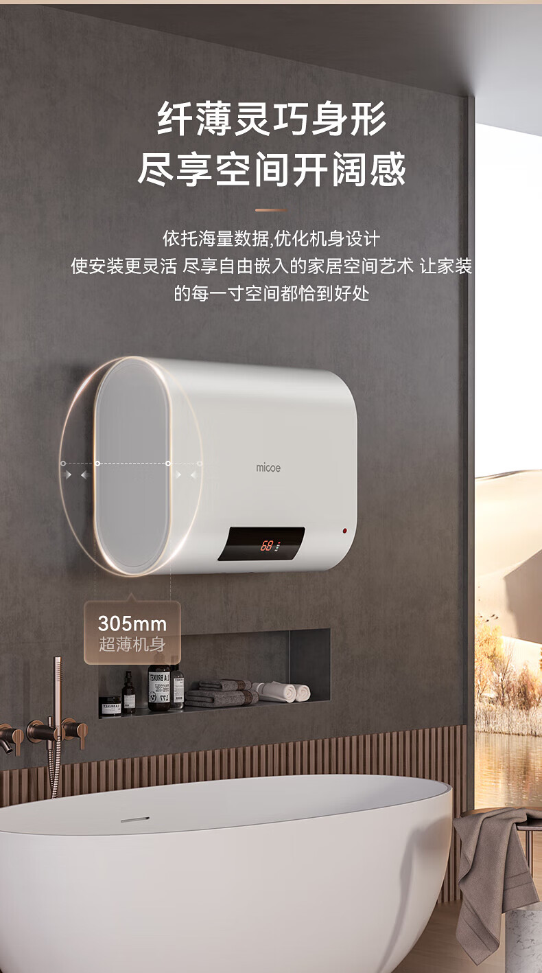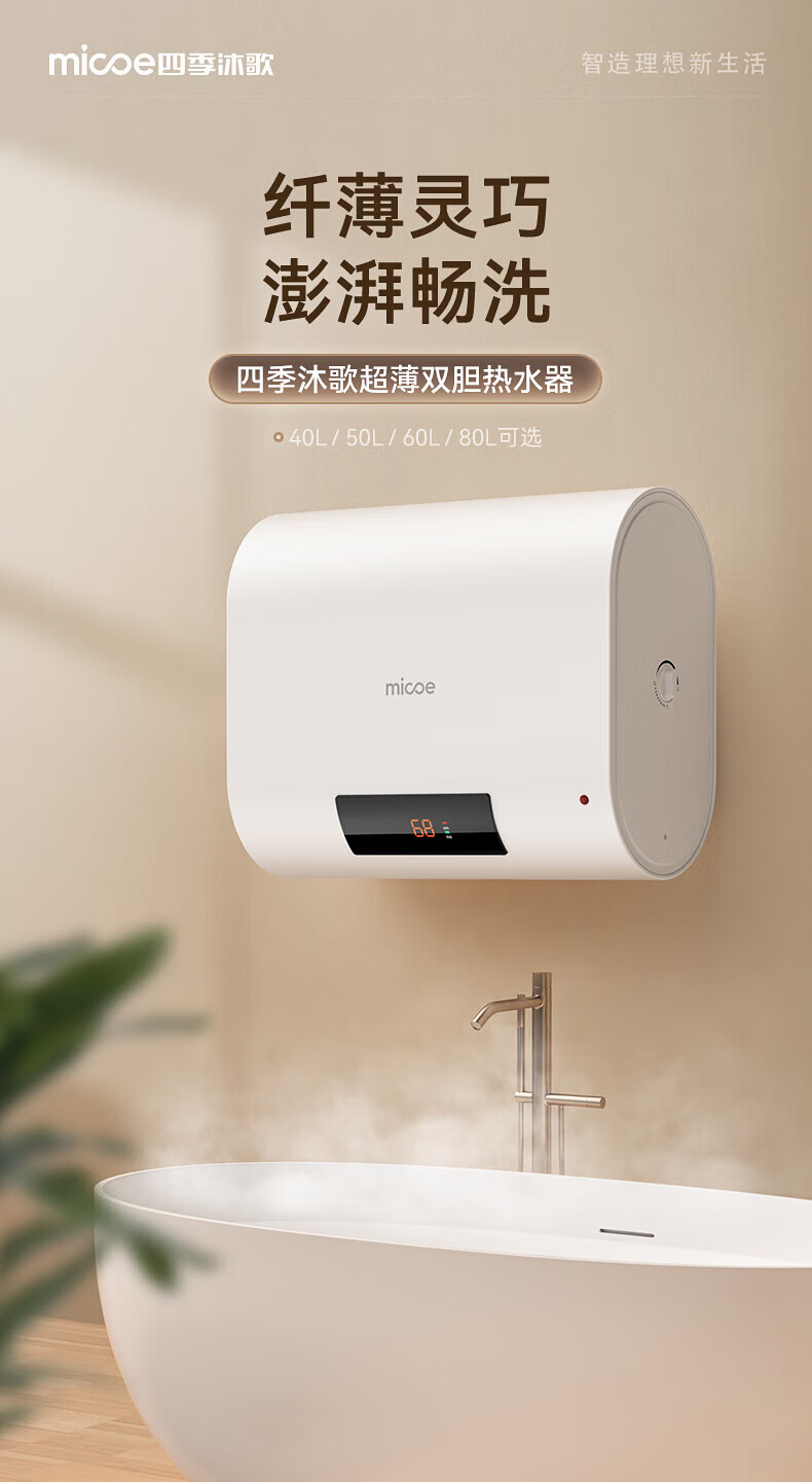 四季沐歌(MICOE)电热水器家用40升扁桶储水式2100W速热LED数显适用1-2人上门安装 M3-S40-21-BH1 以旧换新