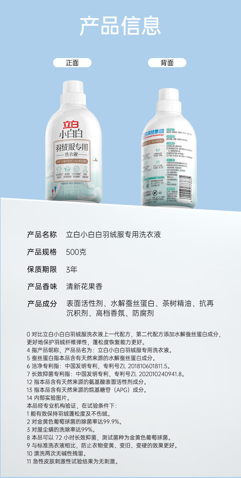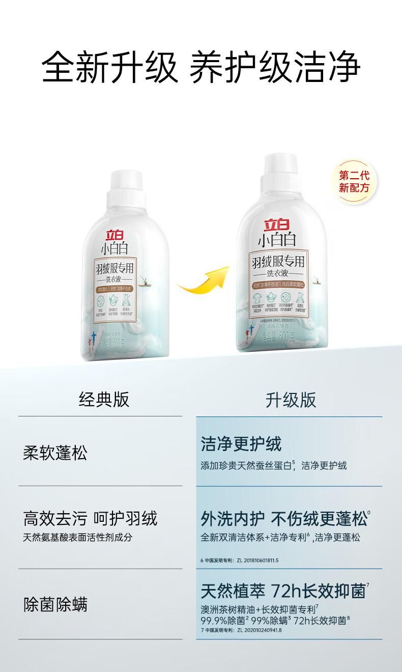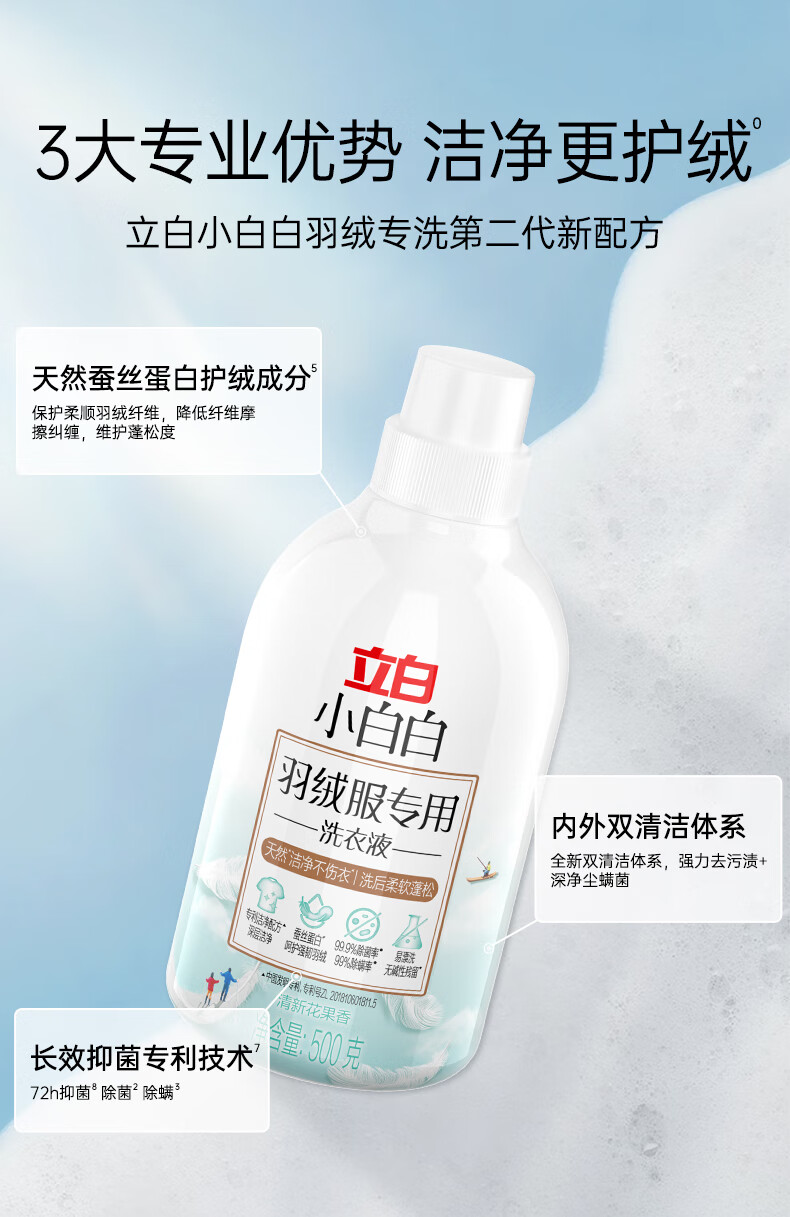 立白小白白羽绒服专用洗衣液去污去顽渍羽绒服清洗剂柔软蓬松除菌除螨 【羽绒服专用】到手2件