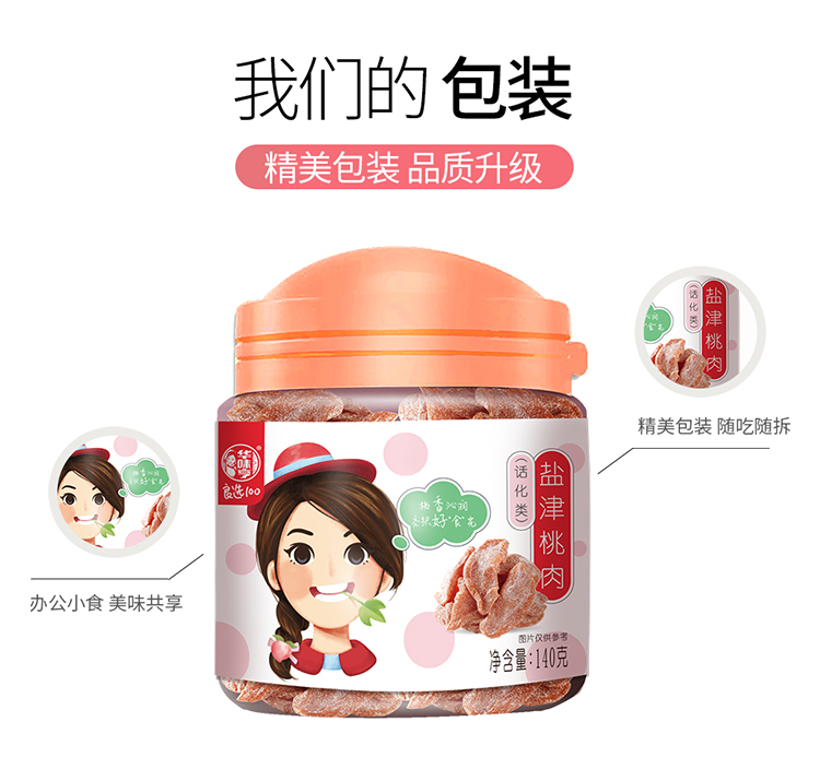 华味亨 盐津桃肉140g/罐 休闲零食蜜饯果干桃制品酸甜咸小吃 办公零食