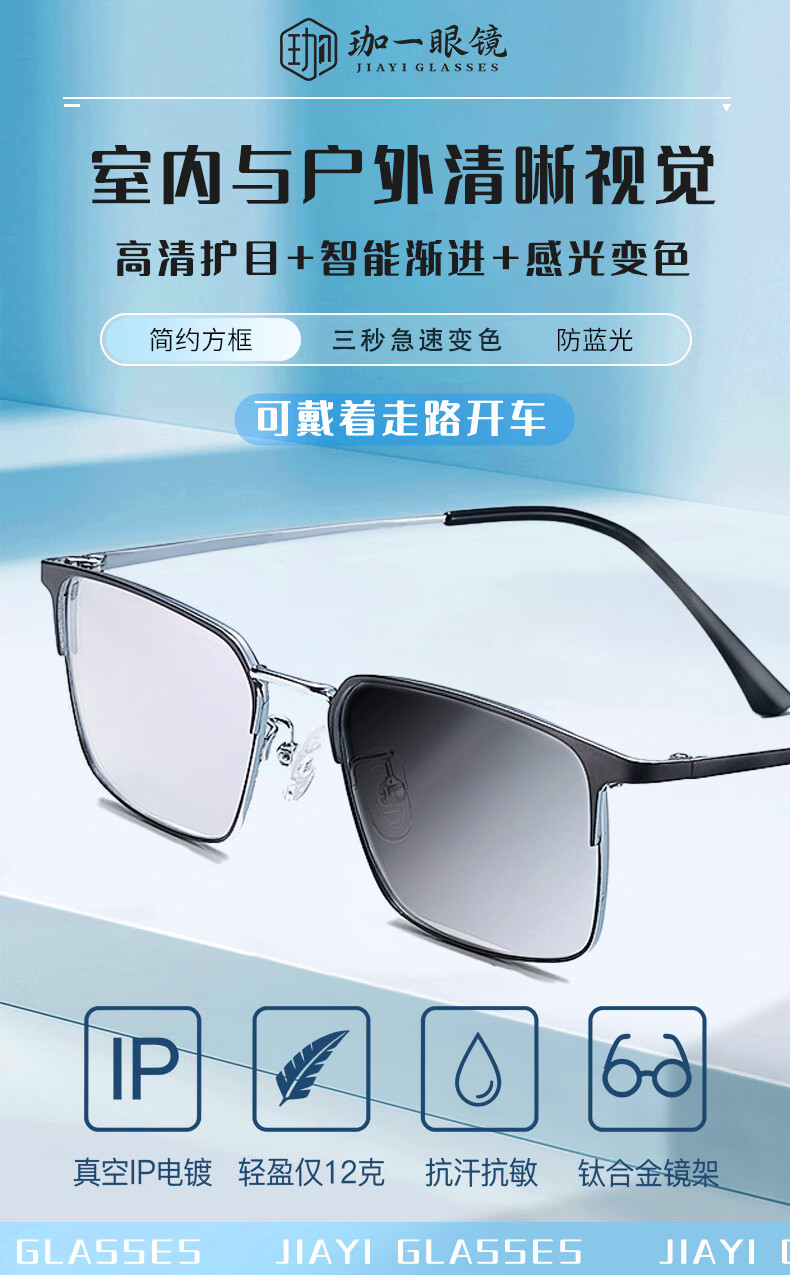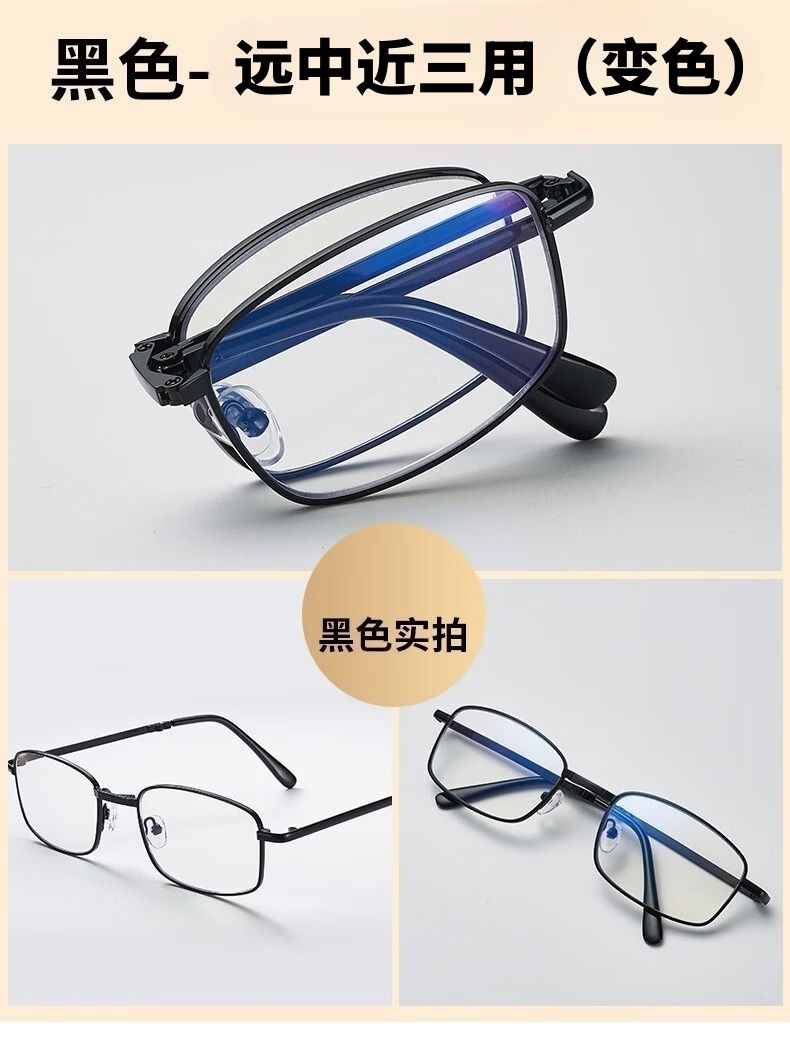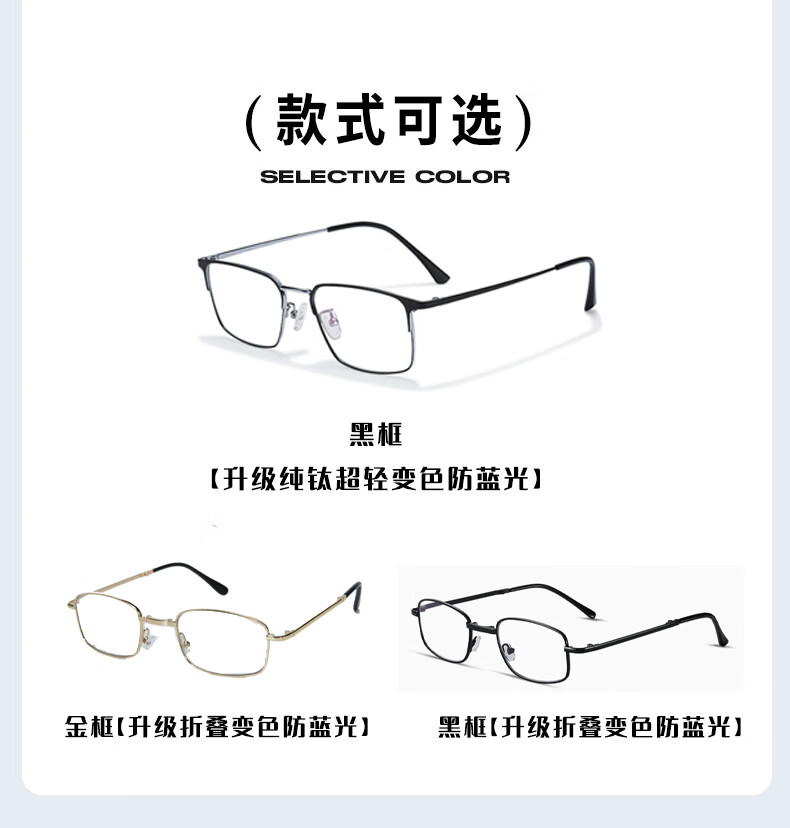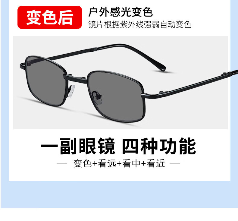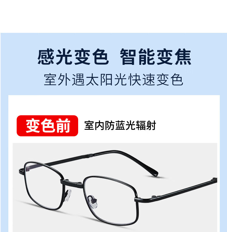 智能变色100-700度自动变焦中年老花镜防蓝光远近通用超轻老人镜 黑框【升级纯钛超轻变色防蓝光】 100-700自动变焦【通用款】