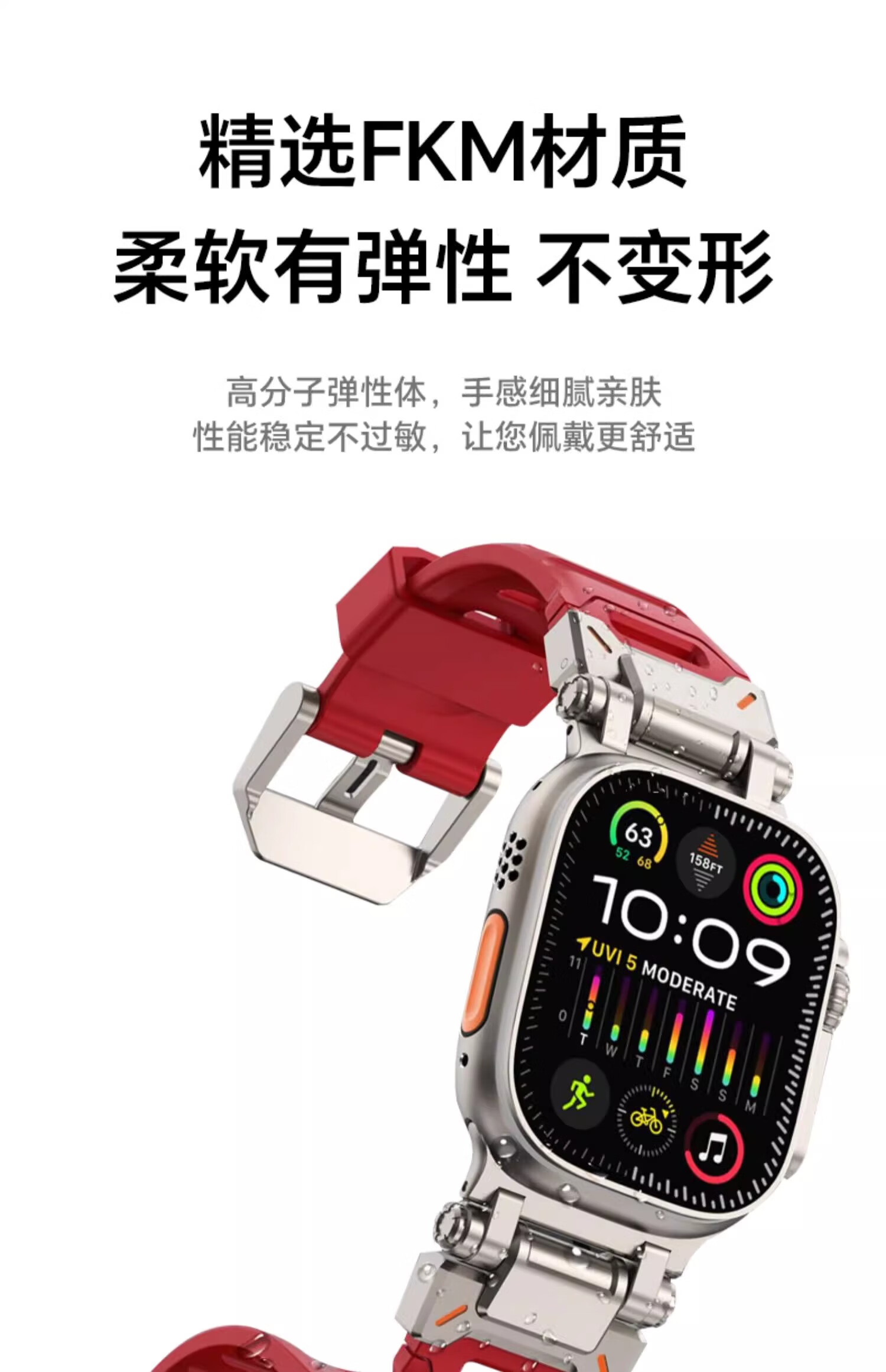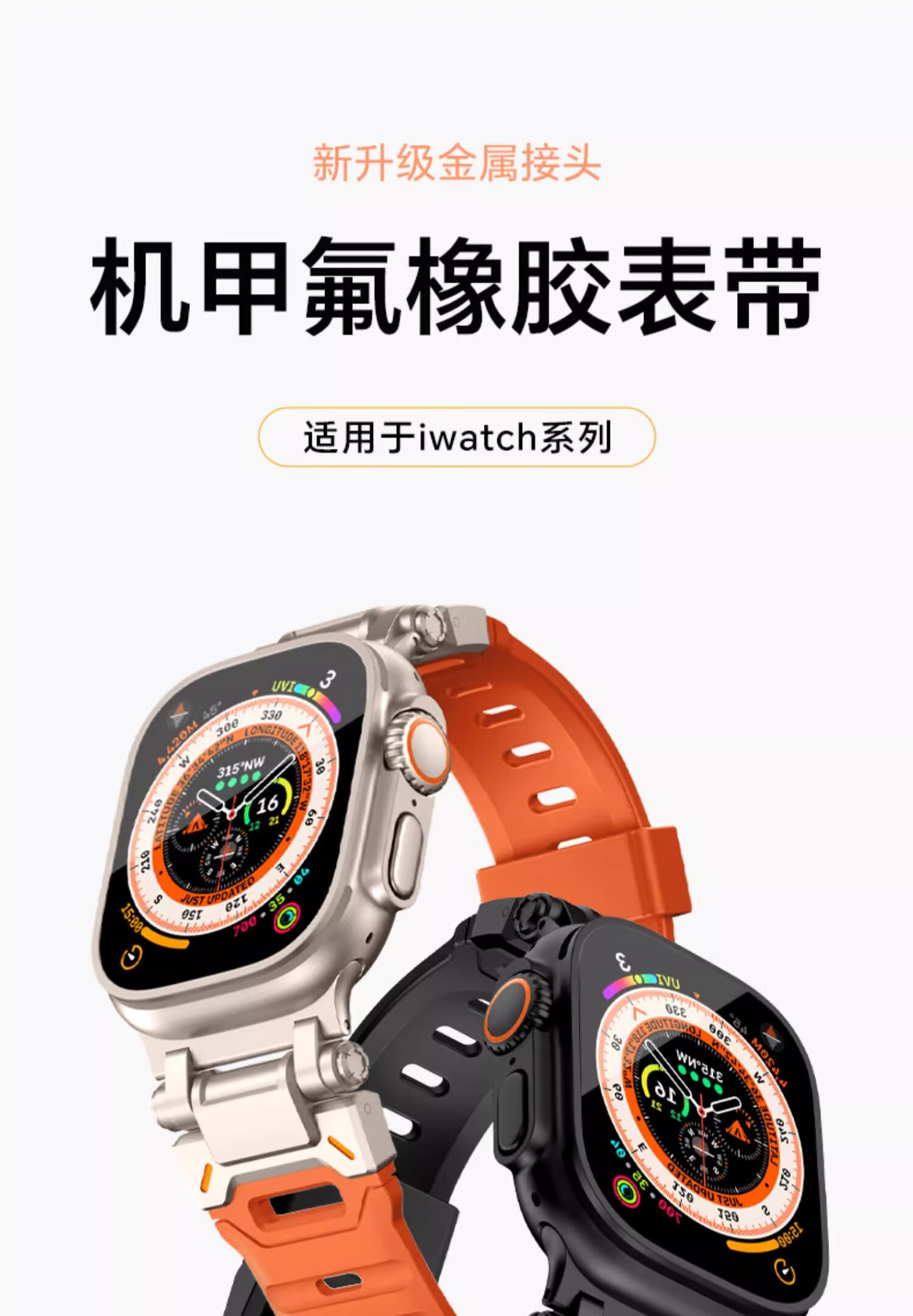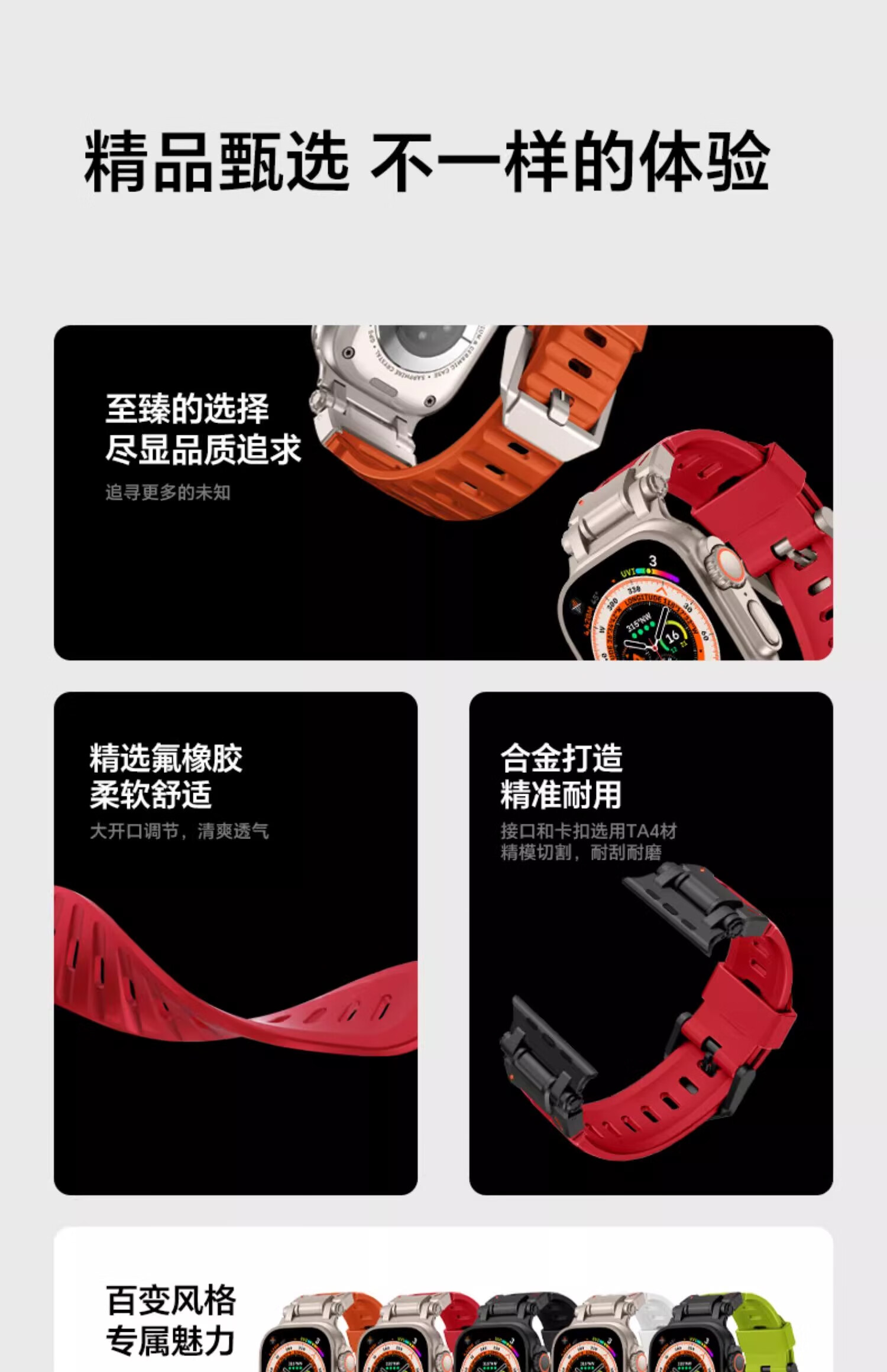 君自名适用AppleWatchUltra3表带AppleWatch11苹果iWatchS手表带iWatch10氟橡胶S11Ultra金属Watchultra2 氟橡胶【钛黑色】探索者表带 iWatch Ultra 3/2/1【49mm】