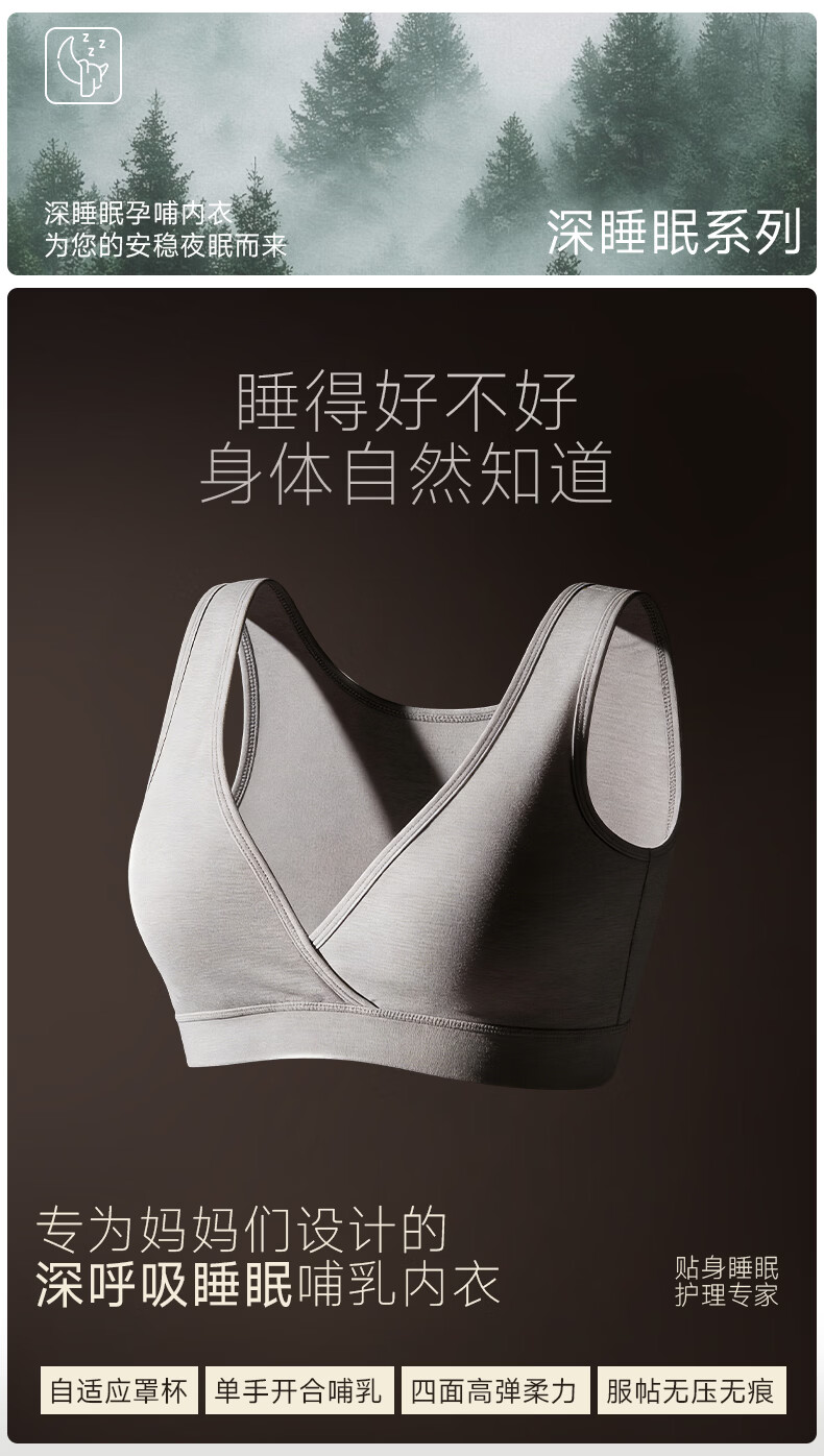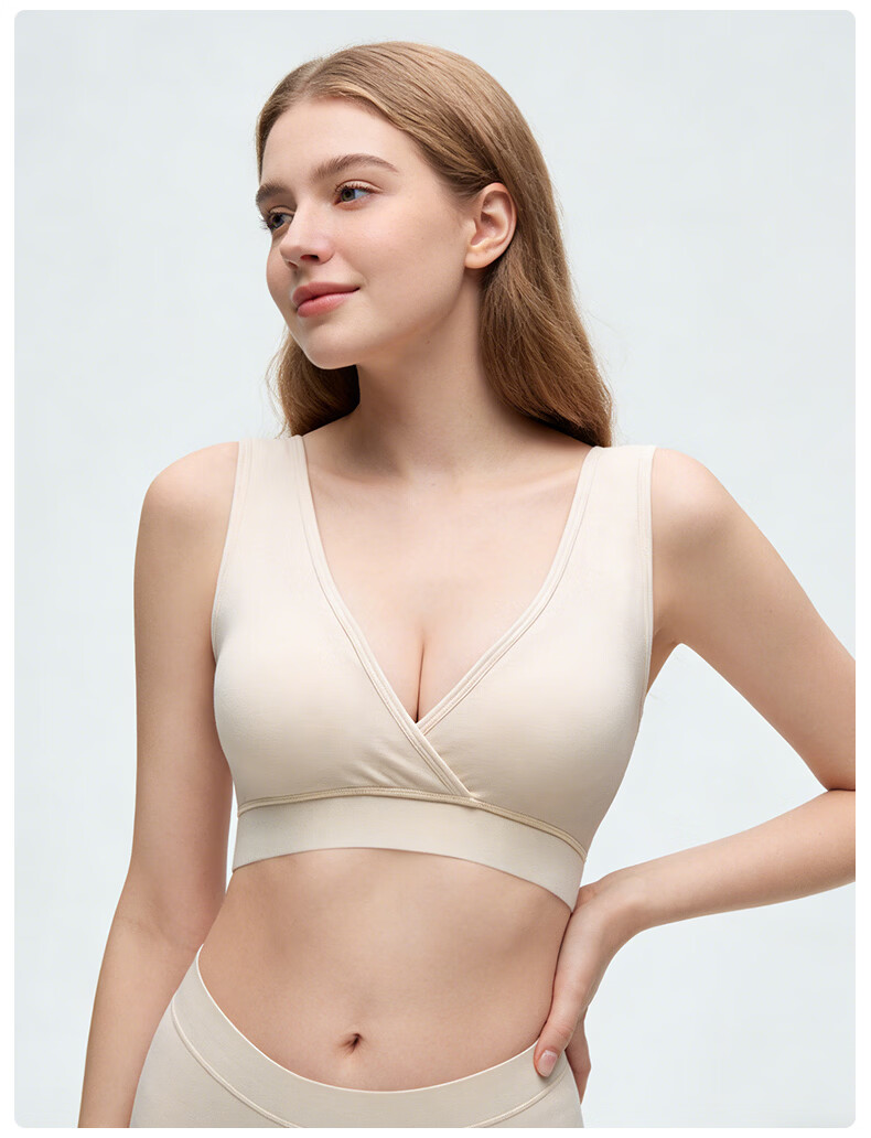 ROVO纯棉哺乳内衣睡眠孕妇孕期专用背心式睡觉可穿大胸喂奶文胸罩 肤色+灰咖【健康养护 10A抗菌】 L