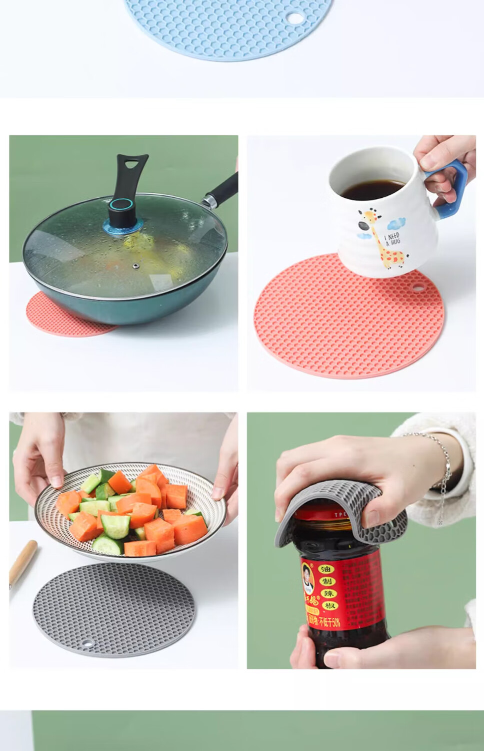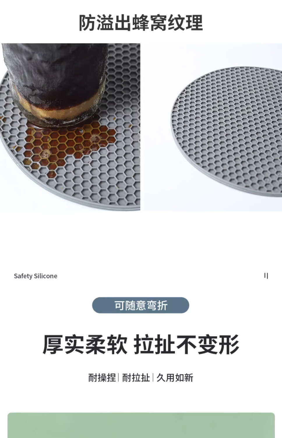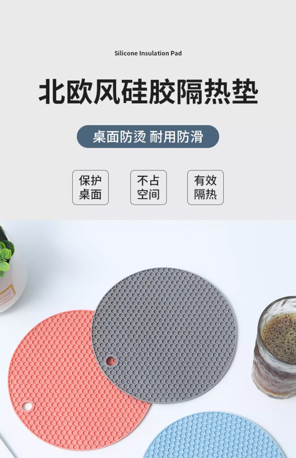 【甄选直发】隔热垫硅胶防烫餐桌垫北欧耐热锅垫砂锅垫子碗家用耐 大号灰色【4片装】