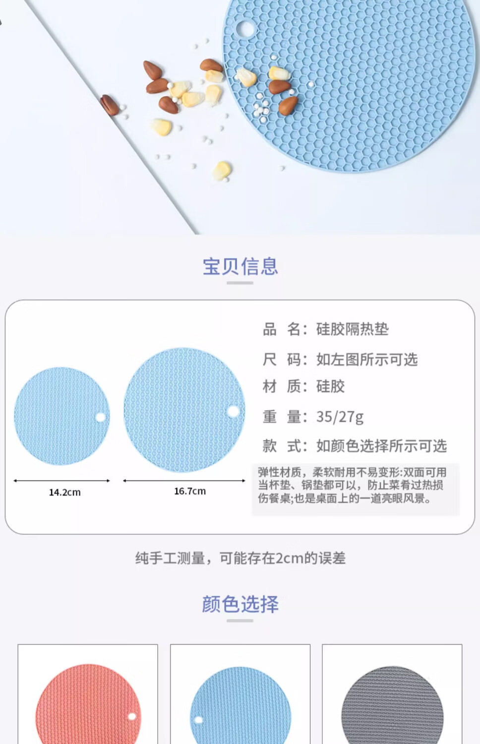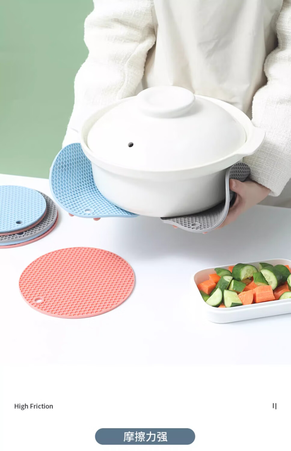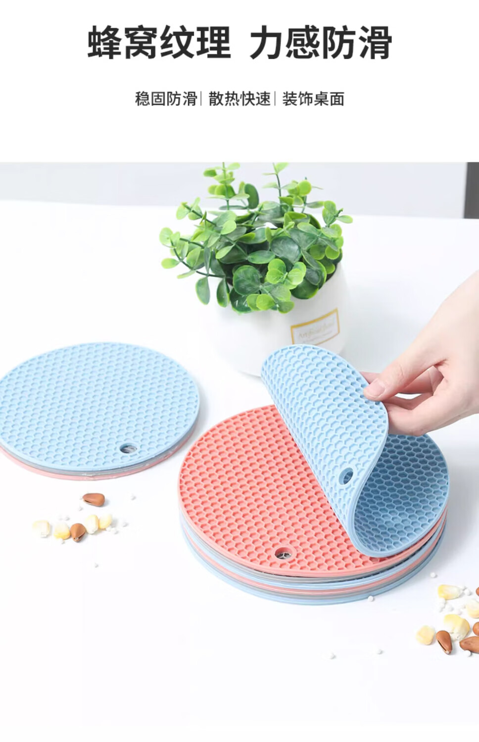 【甄选直发】隔热垫硅胶防烫餐桌垫北欧耐热锅垫砂锅垫子碗家用耐 大号灰色【4片装】