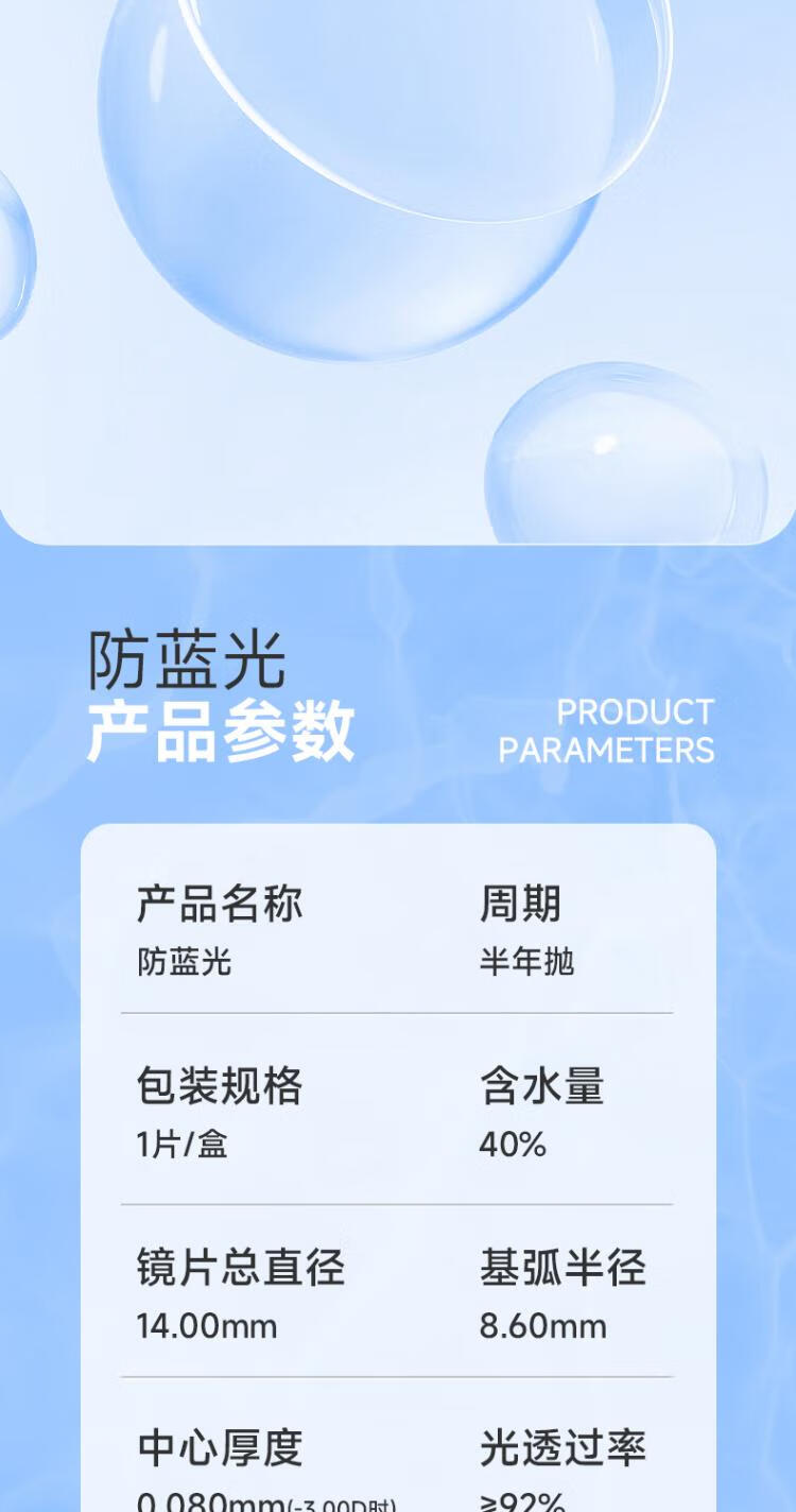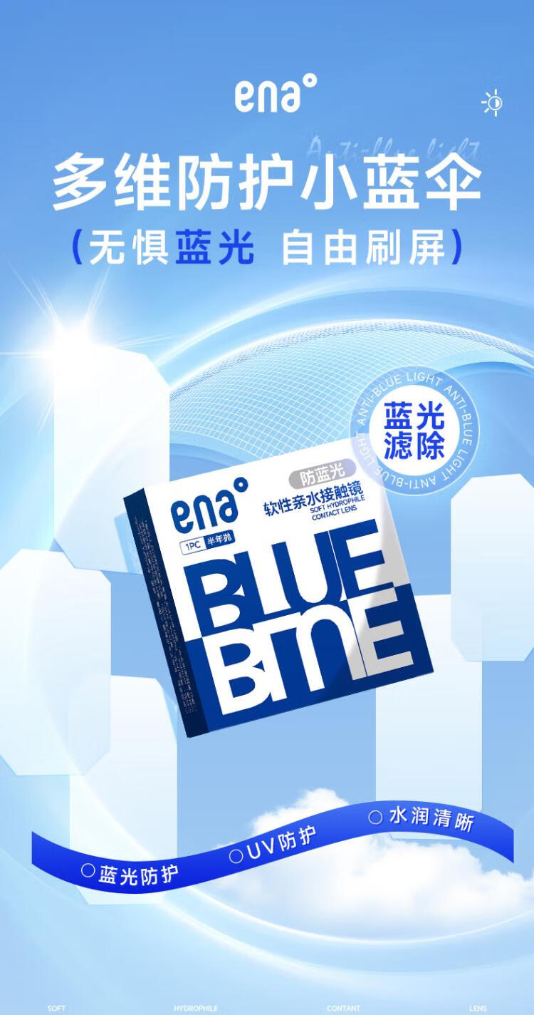 Ena防蓝光半年抛 1片装近视隐形眼镜透明片6月抛 学生正品旗舰店 防蓝光半年抛1片 1000度
