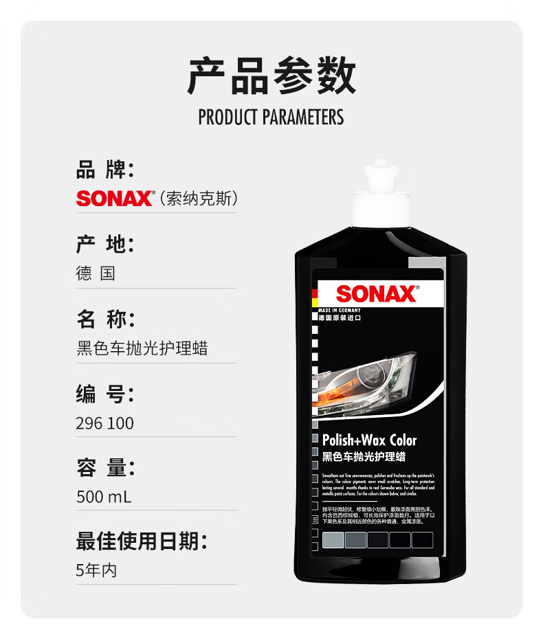 索纳克斯(SONAX)德国进口黑色汽车专用车蜡养护上光漆面抛光蜡镜面光泽500ml 【德国进口】黑色车蜡500ml